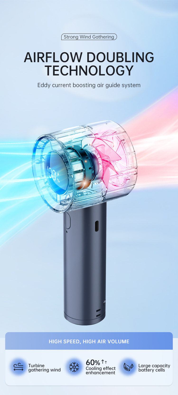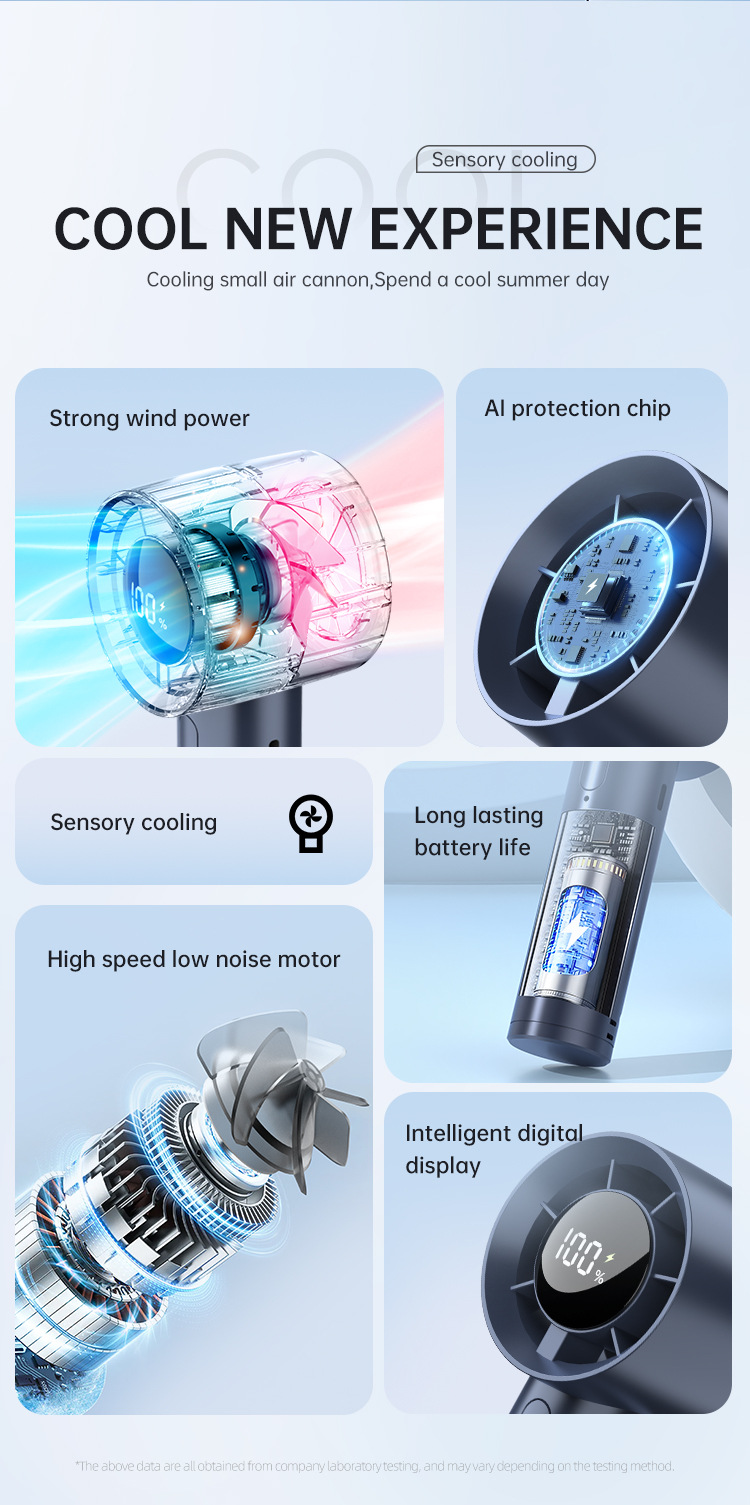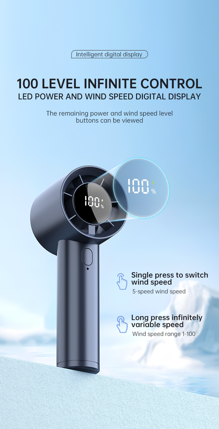 跨境手持小风炮涡轮高速风扇USB充电家用学生数显便携式小风扇