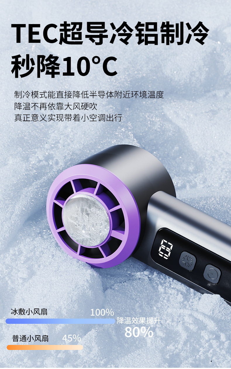 100档超导体冰敷制冷风扇无极调速涡轮小风扇高速暴力手持小风扇