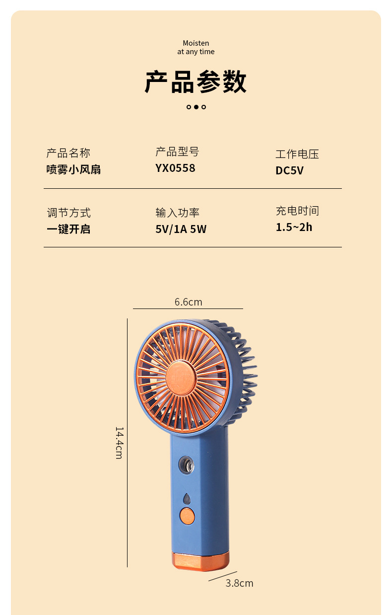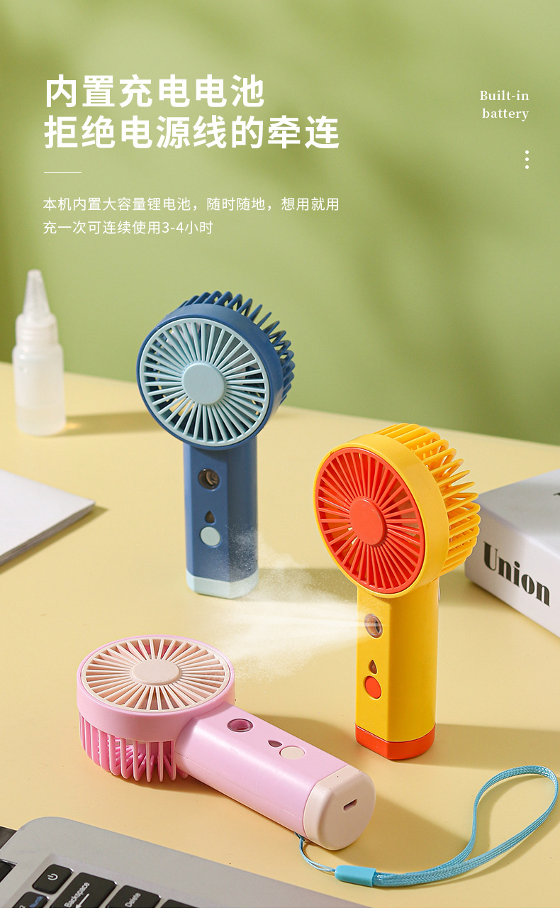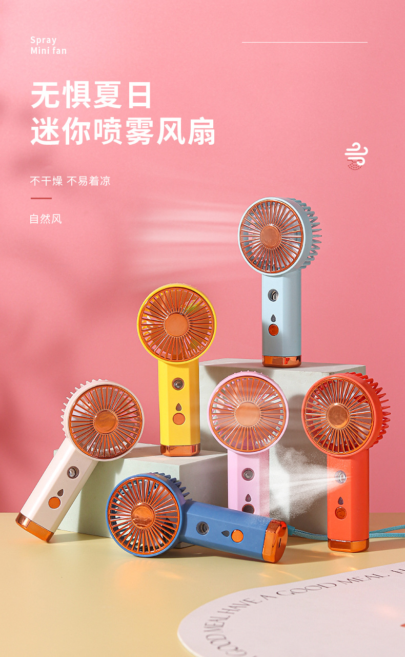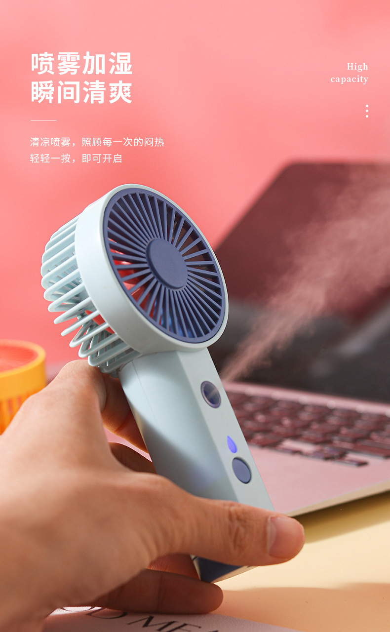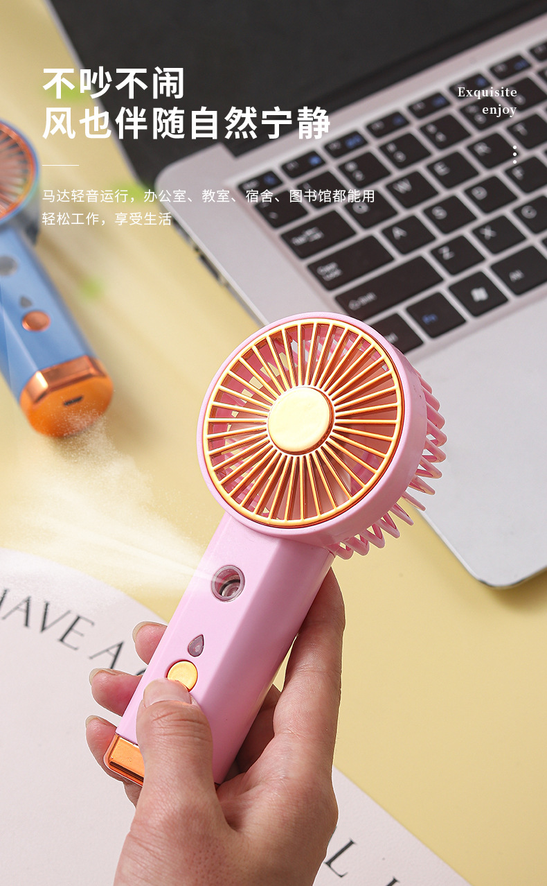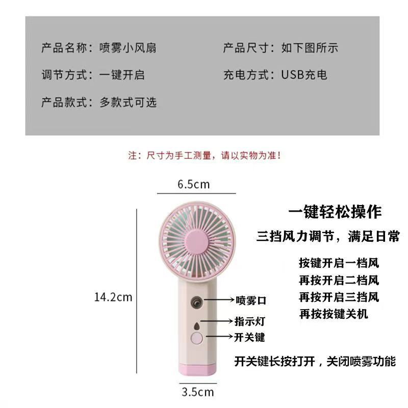 USB充电小风扇喷雾补水大风力学生便携手持式桌面解暑随身清凉