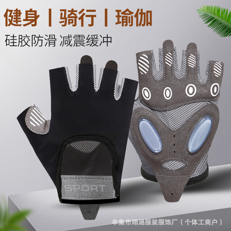 男女健身手套骑行半指撸铁防滑硅胶气垫夏季防运动男瑜伽透气触屏