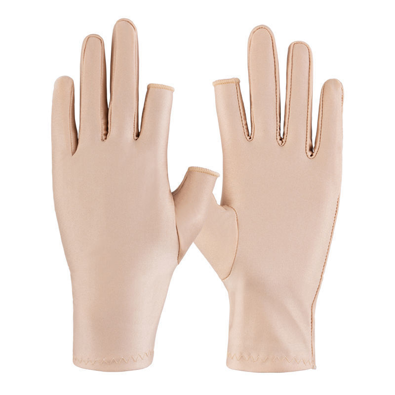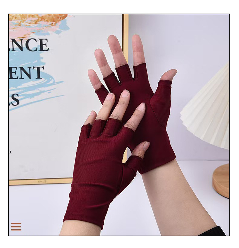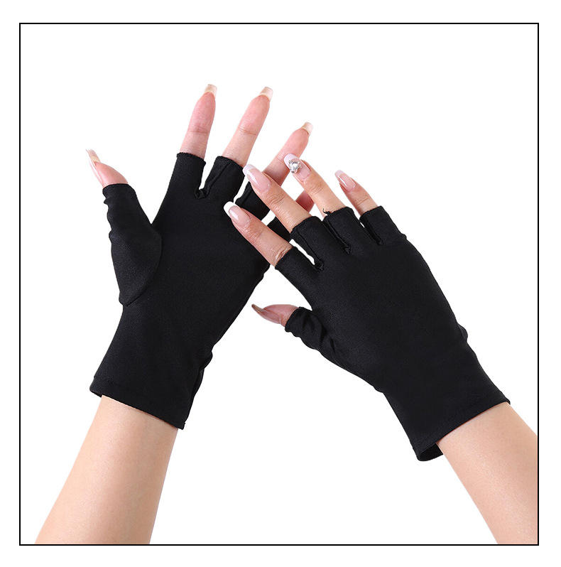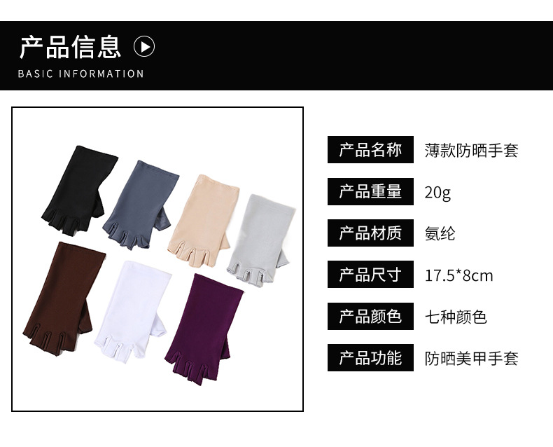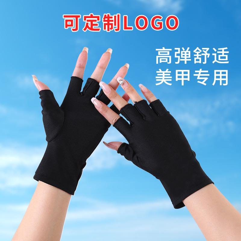 定制防晒手套女弹力薄款半指露两指户外防紫外线开车运动美甲手套