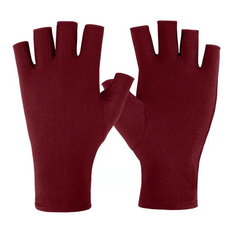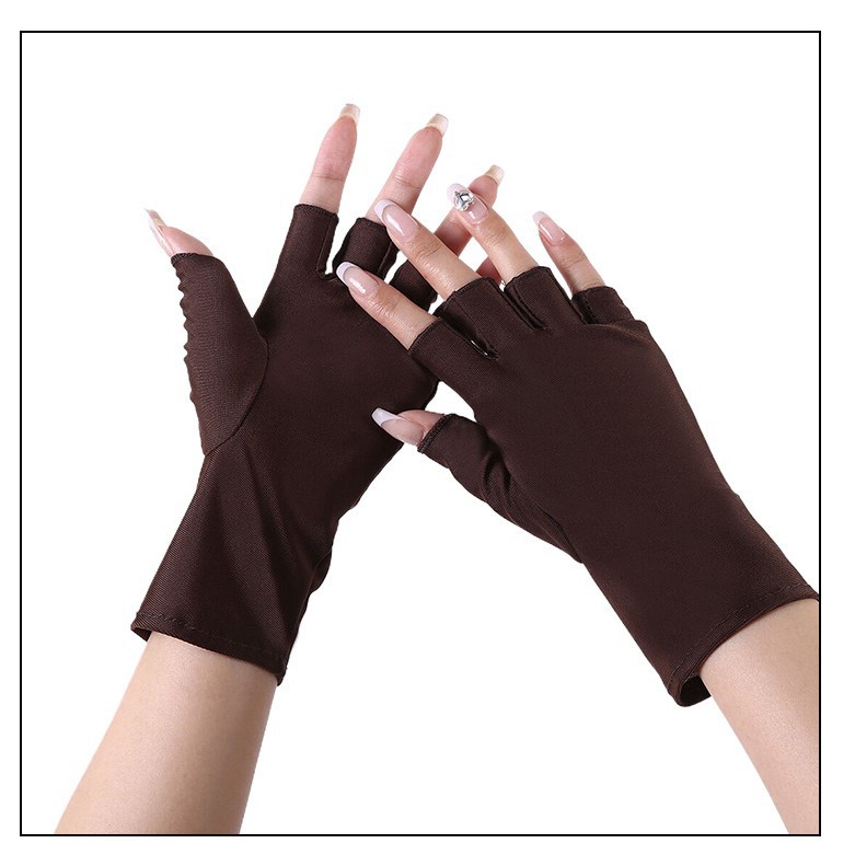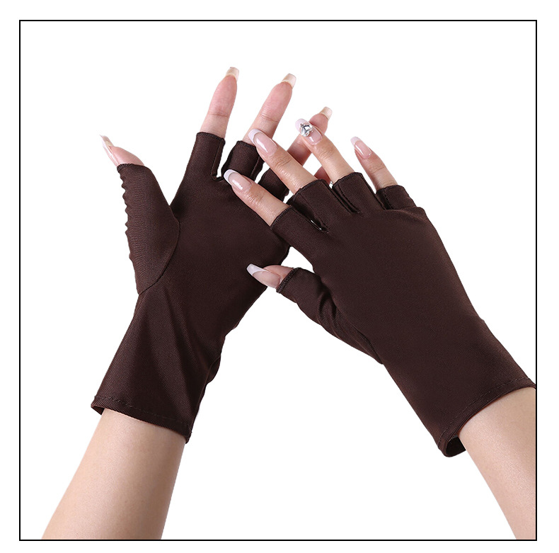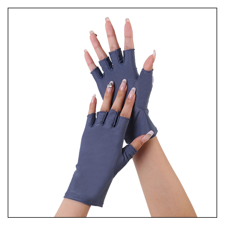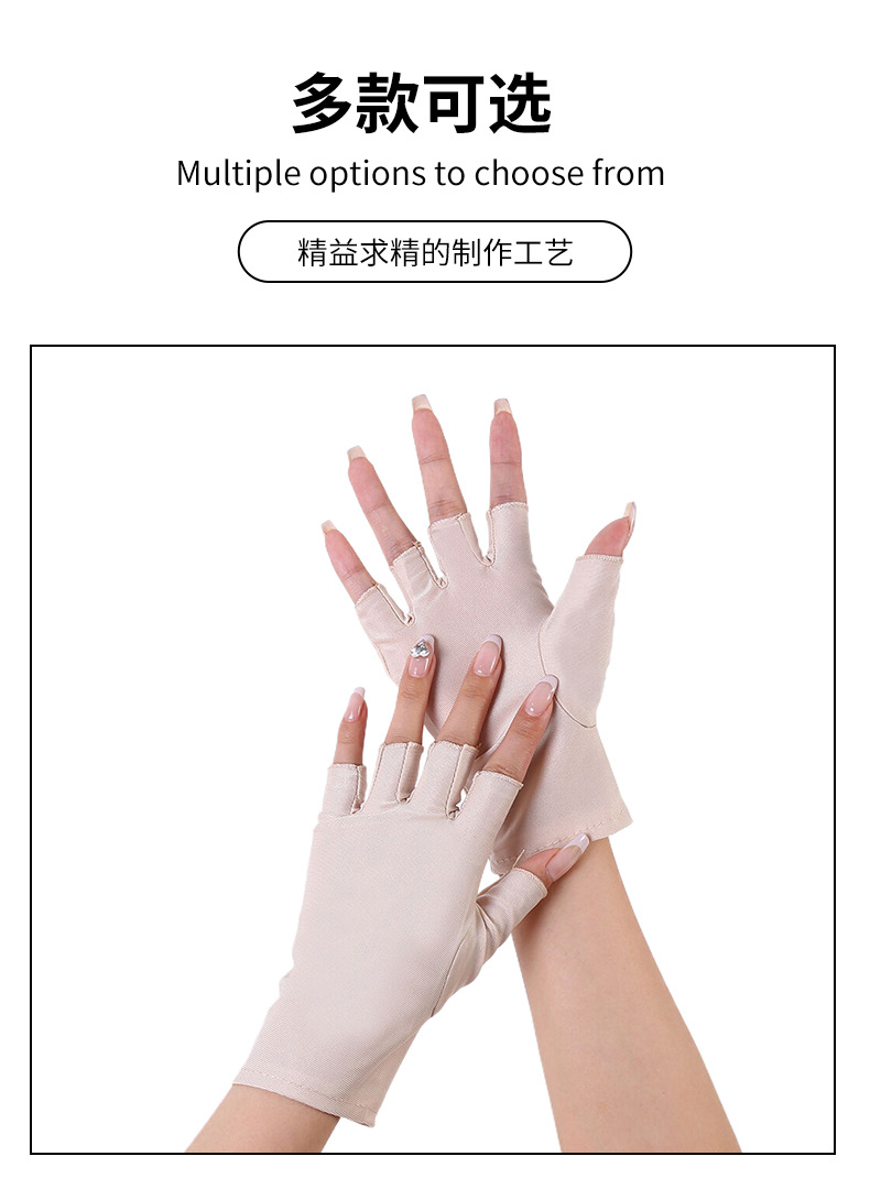 定制防晒手套女弹力薄款半指露两指户外防紫外线开车运动美甲手套
