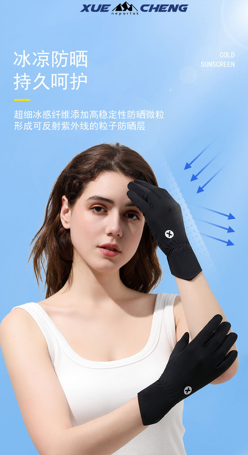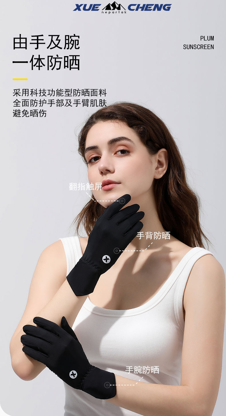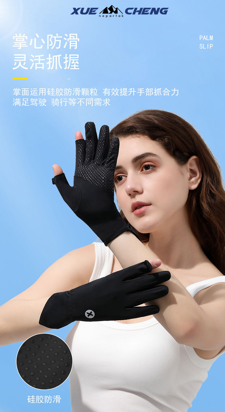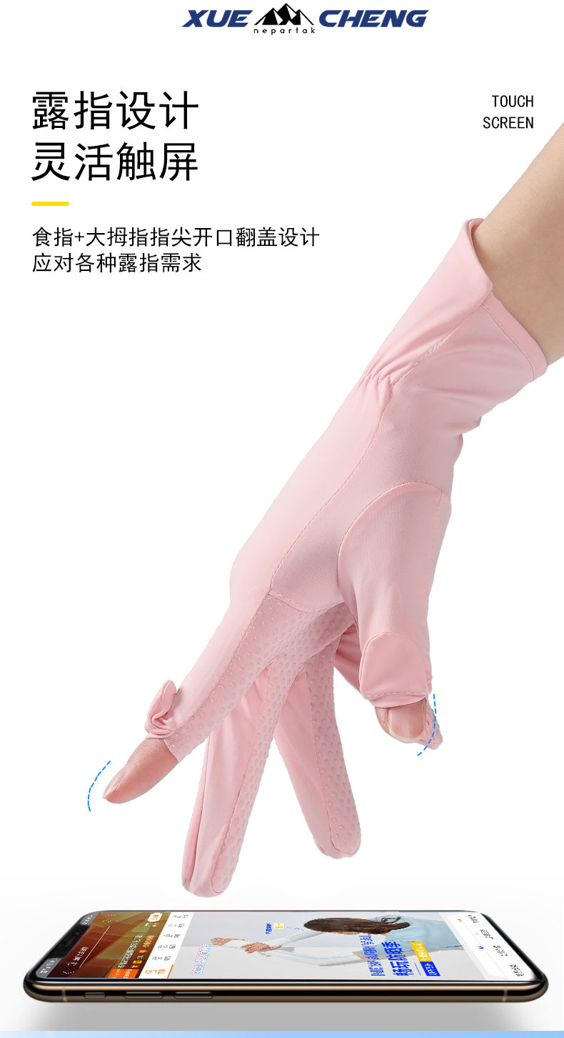 防晒手套女防紫外线20+开车户外骑行冰丝手套夏翻盖触屏防滑手套