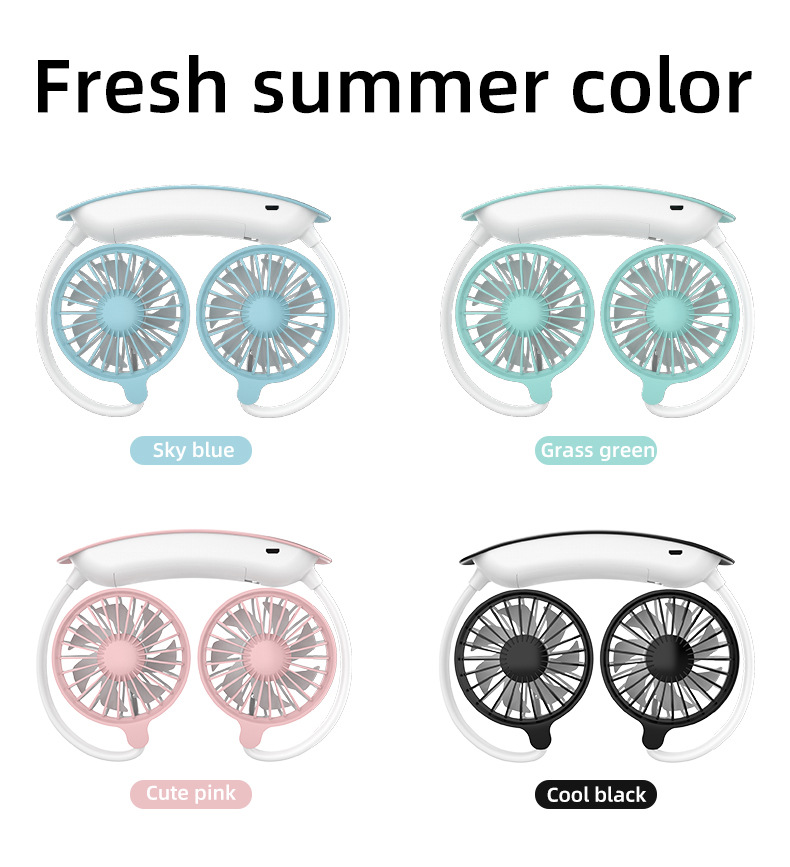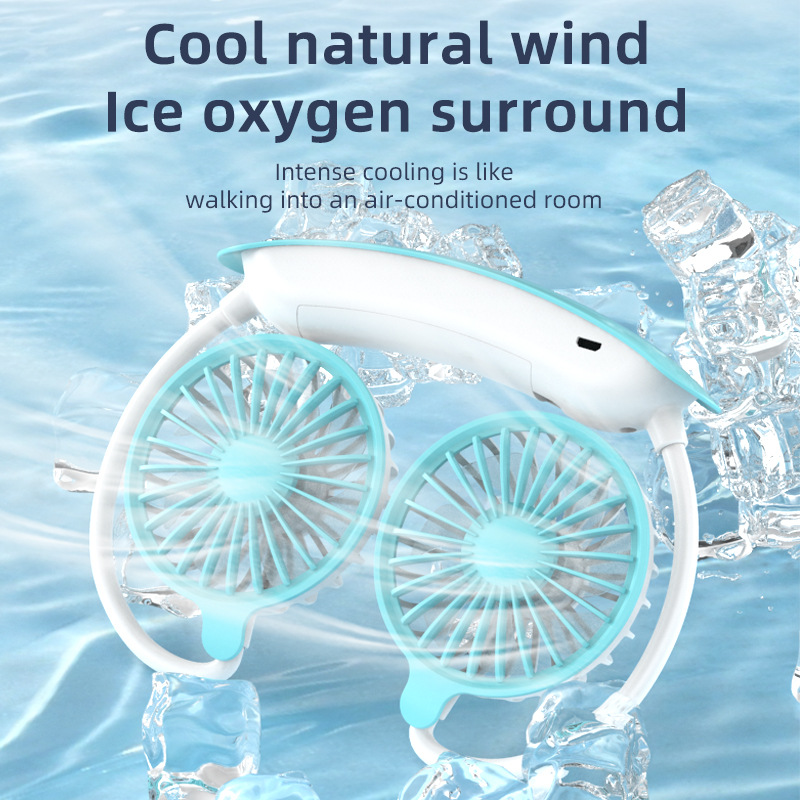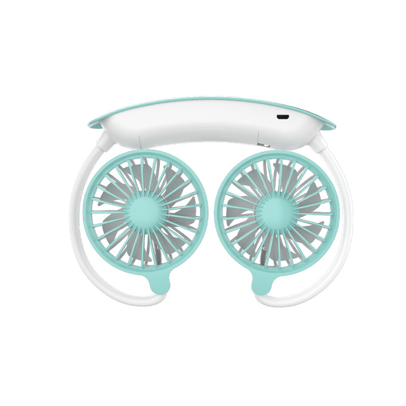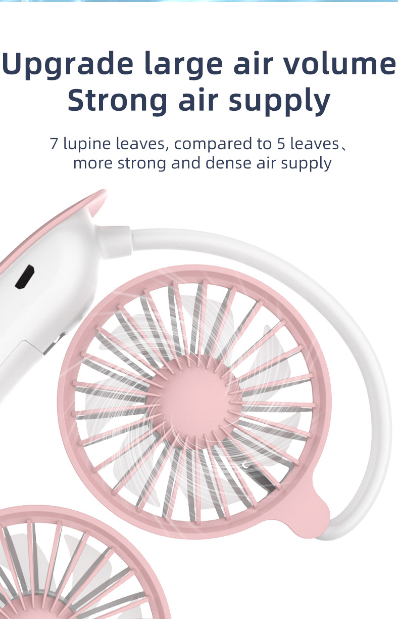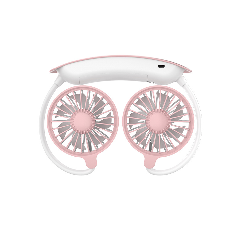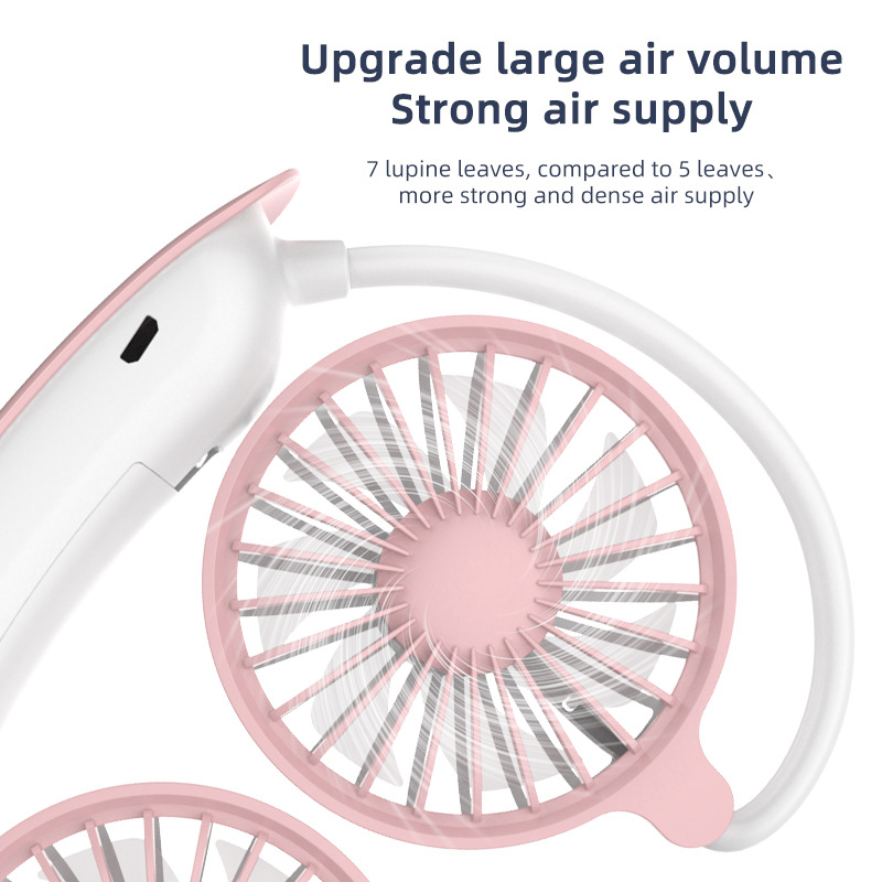 跨境新款挂脖风扇usb充电便携式卡通小风扇学生运动懒人挂脖风扇
