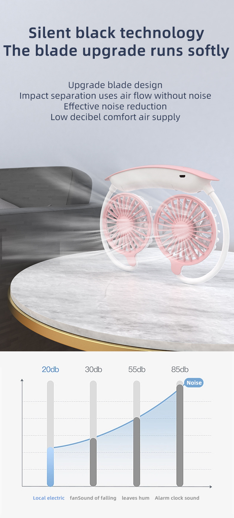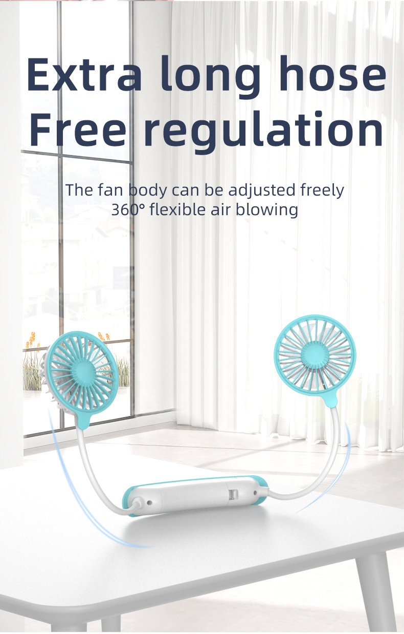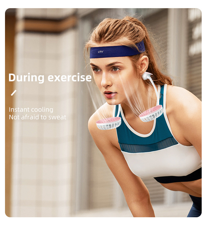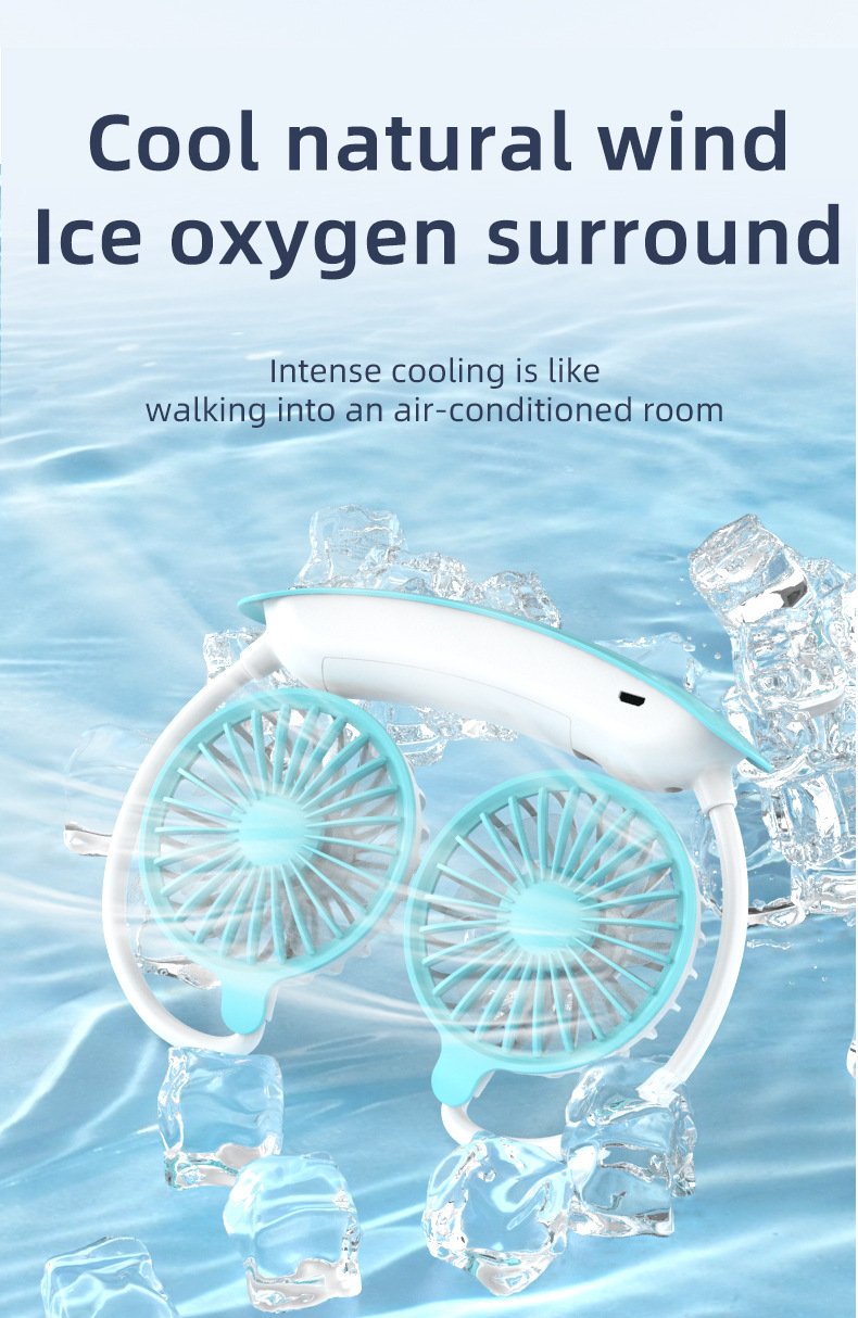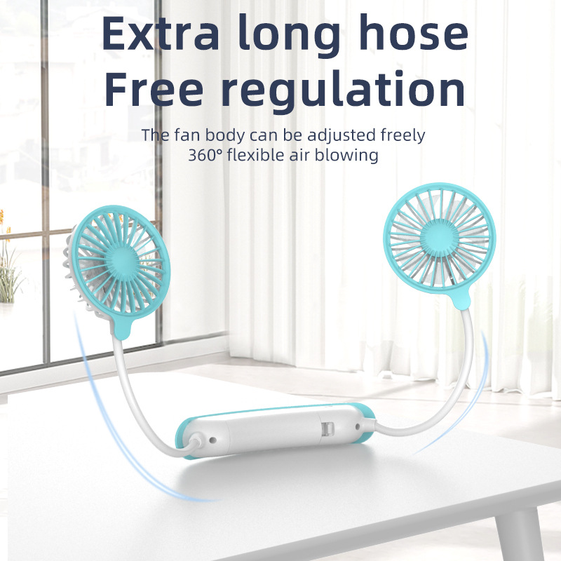 跨境新款挂脖风扇usb充电便携式卡通小风扇学生运动懒人挂脖风扇