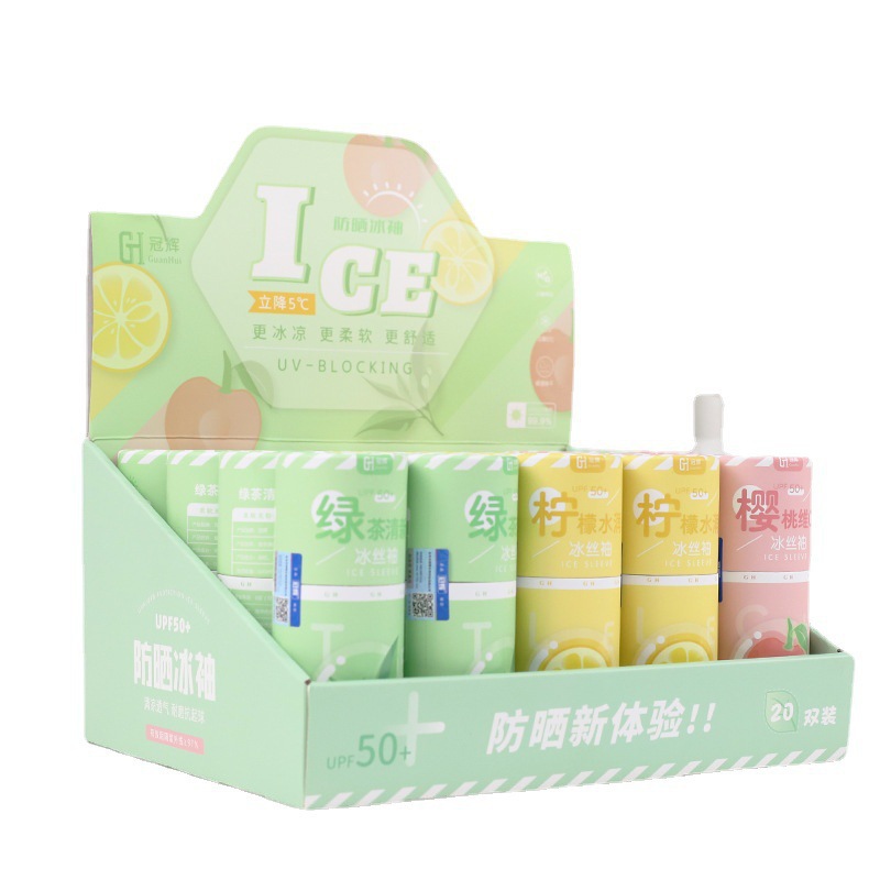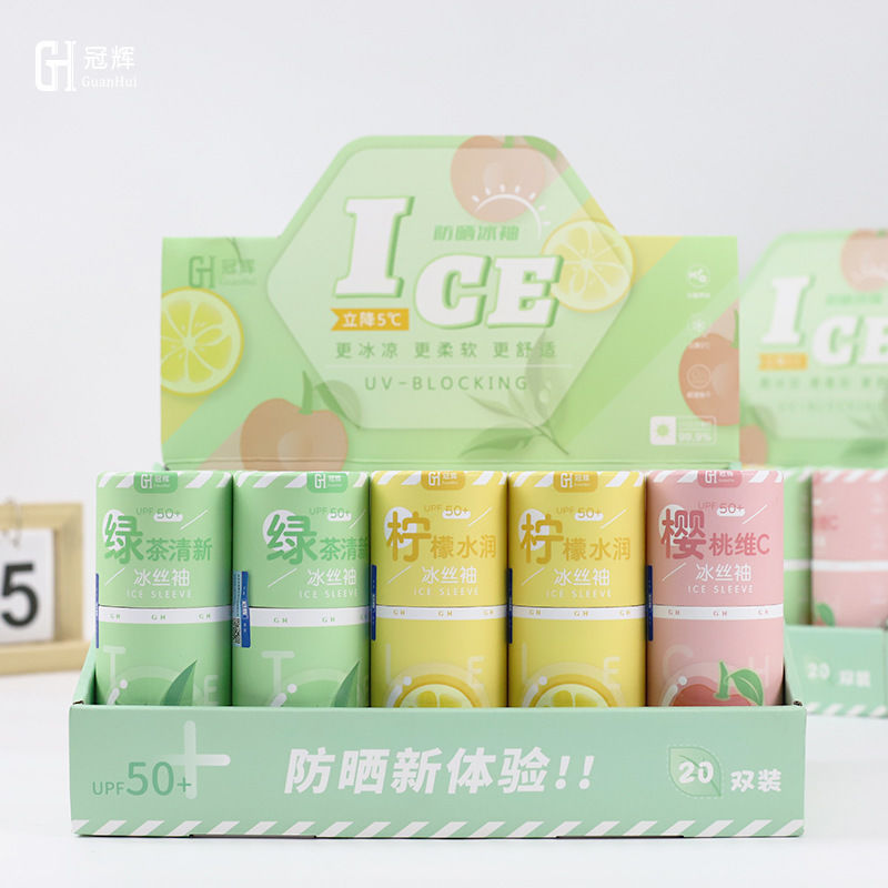 冠辉水果茶圆桶装冰袖夏季防晒袖套户外骑行纸筒装冰丝防晒袖