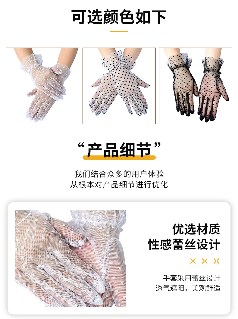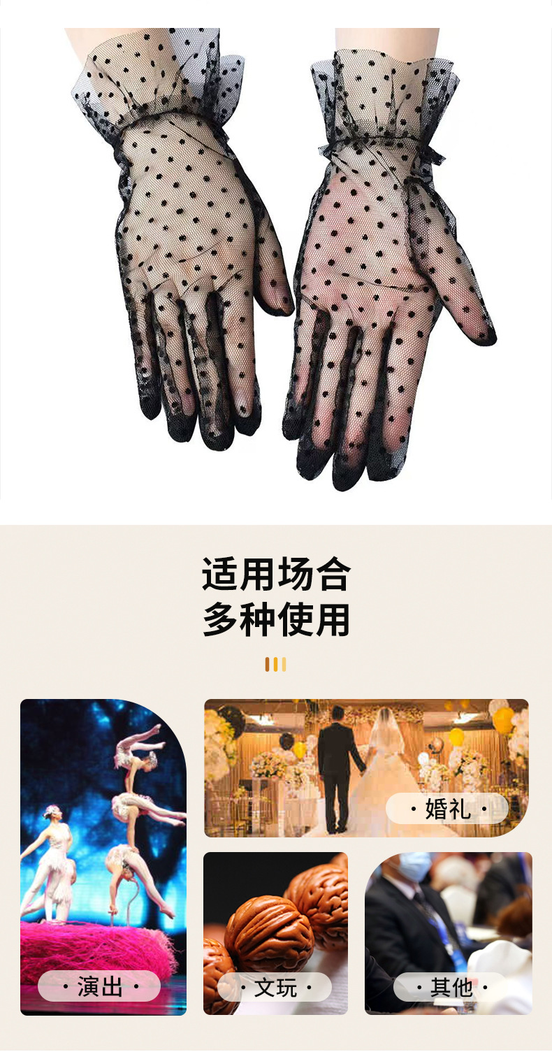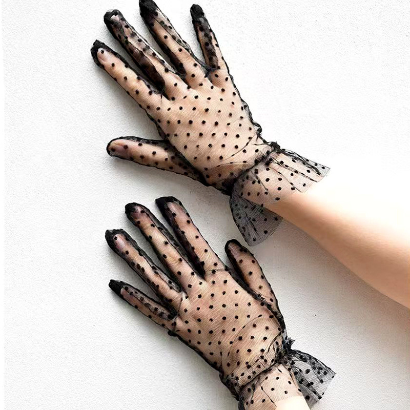 女士性感网纱波点大花边手套透气蕾丝 婚礼新娘礼服配饰手套性感