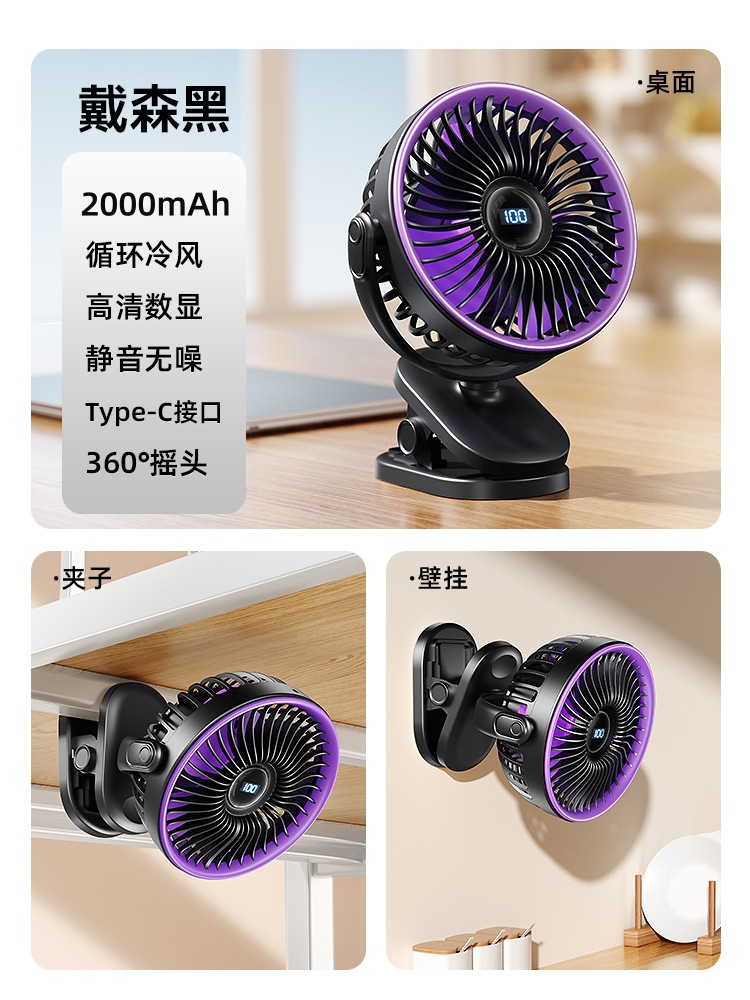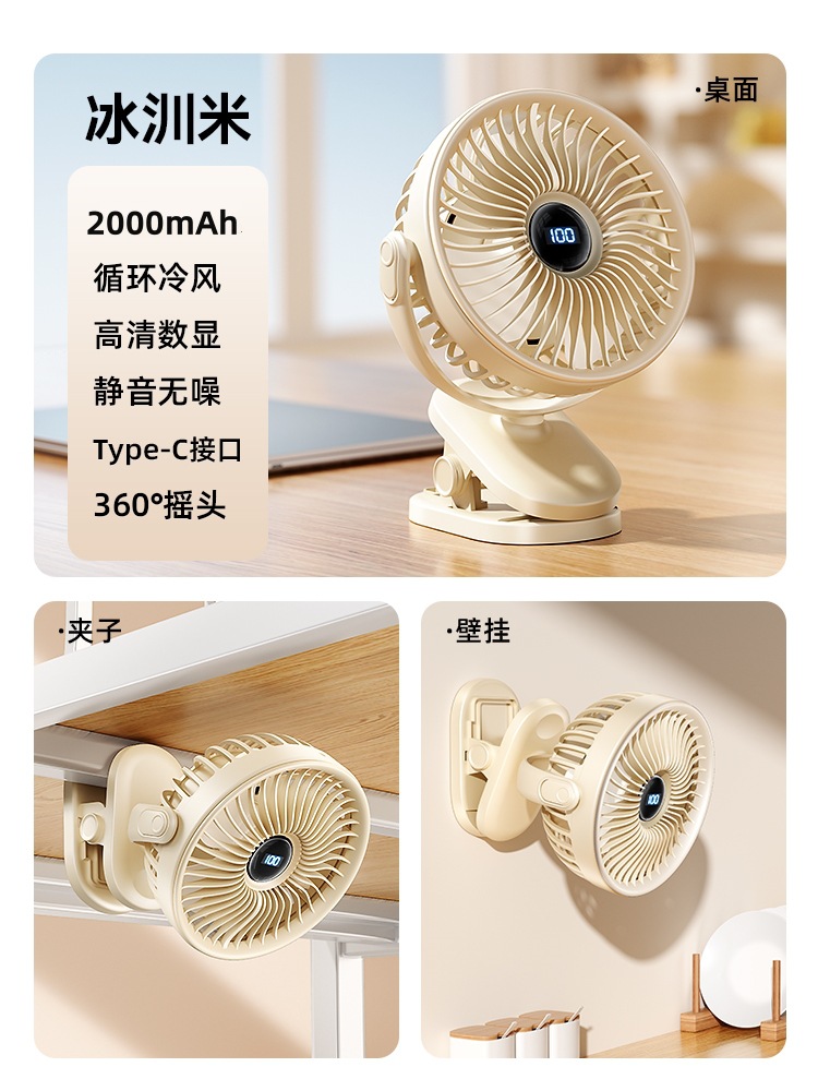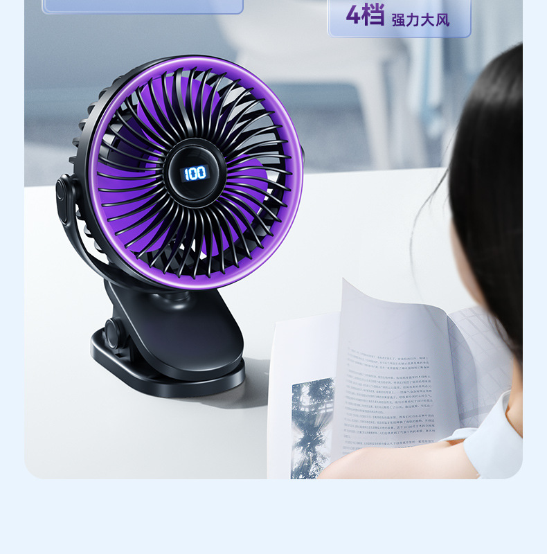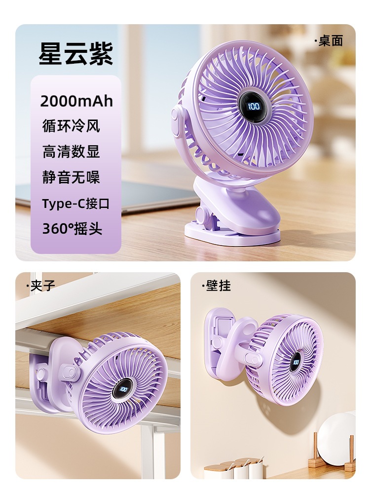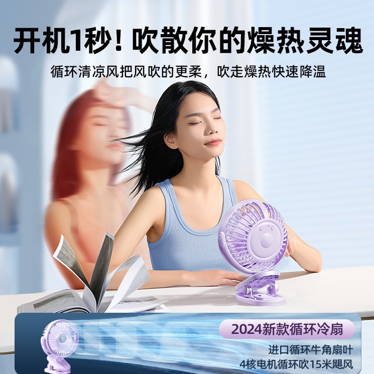 夹子风扇可充电办公室小型长续航便携式风扇小型宿舍静音夹式风扇