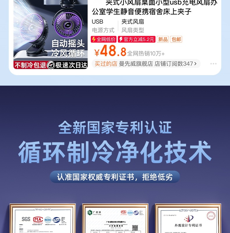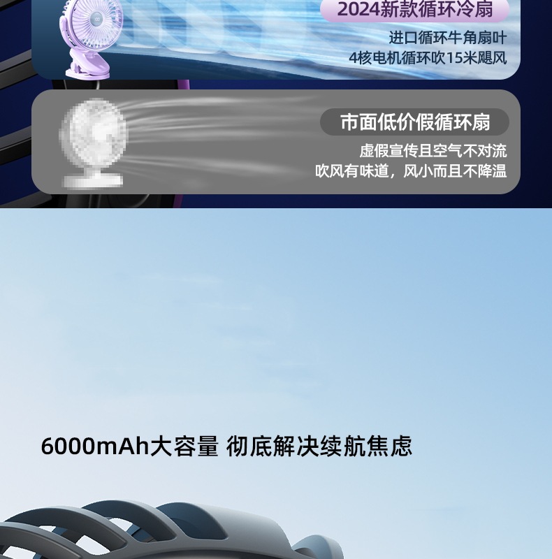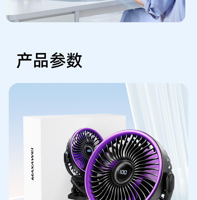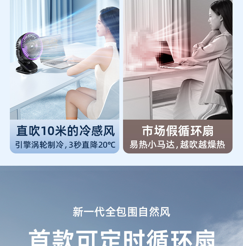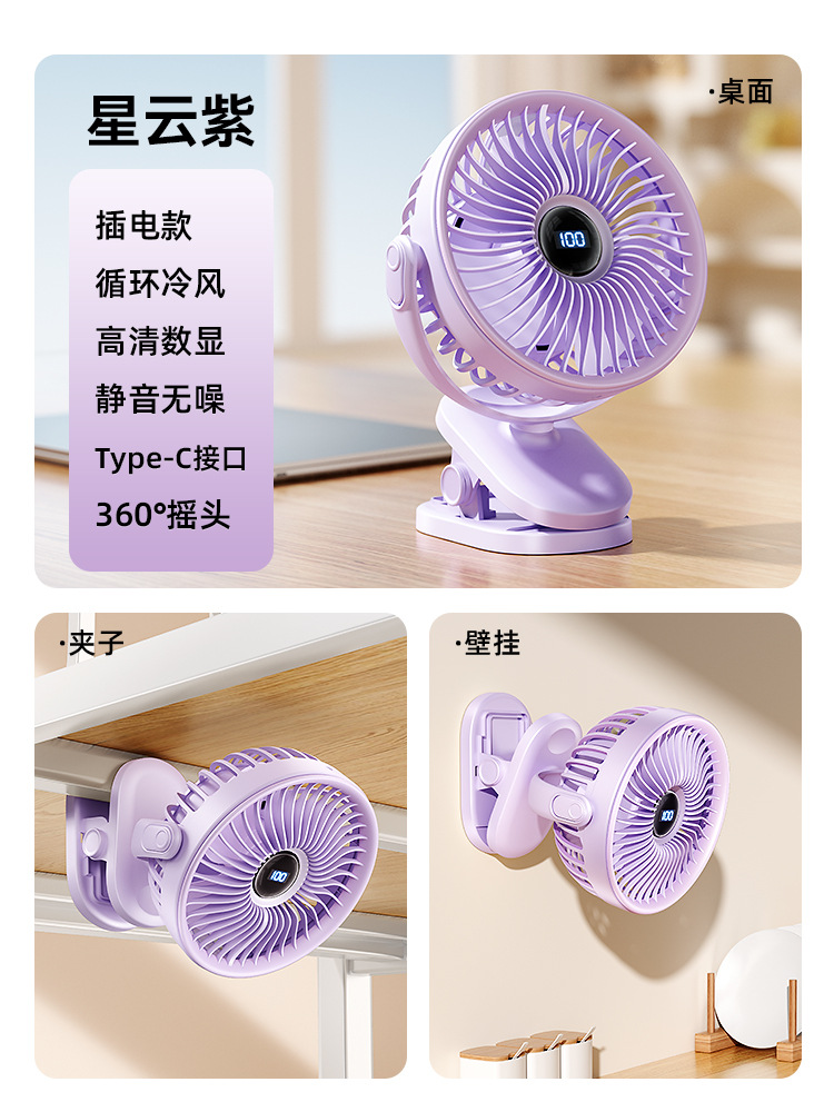 夹子风扇可充电办公室小型长续航便携式风扇小型宿舍静音夹式风扇