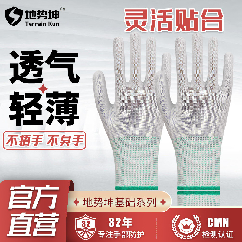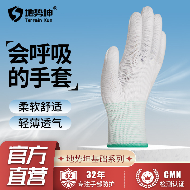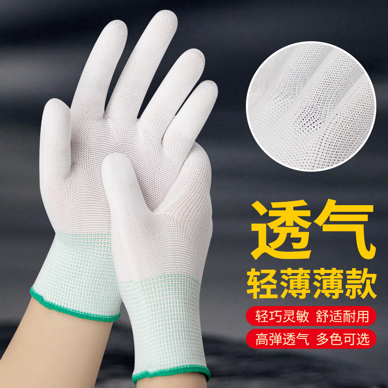 尼龙手套薄款白色十三针贴手耐磨夏季透气防晒工作高弹防滑防尘女