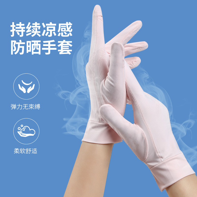 防晒手套冰丝男女夏季手套薄款冰爽透气户外骑车开车指尖翻盖