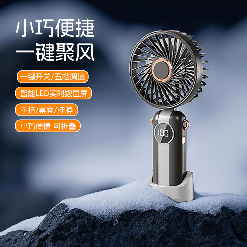 新款手持风扇迷你便携充电家用数显小风扇学生宿舍礼品挂脖风扇