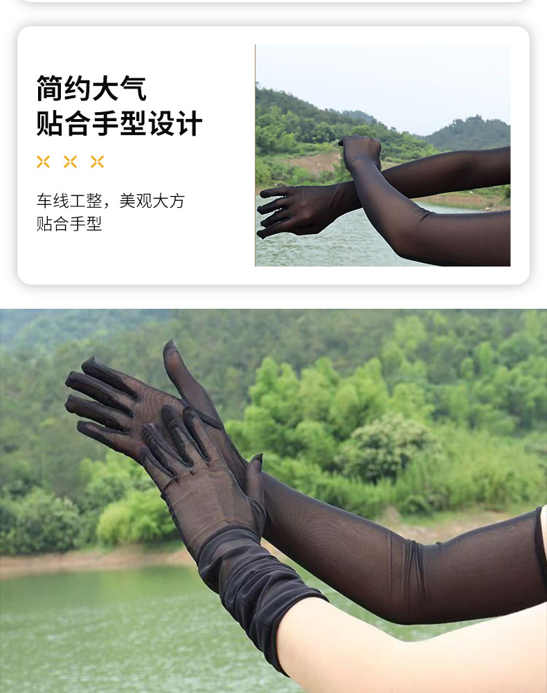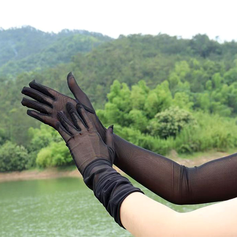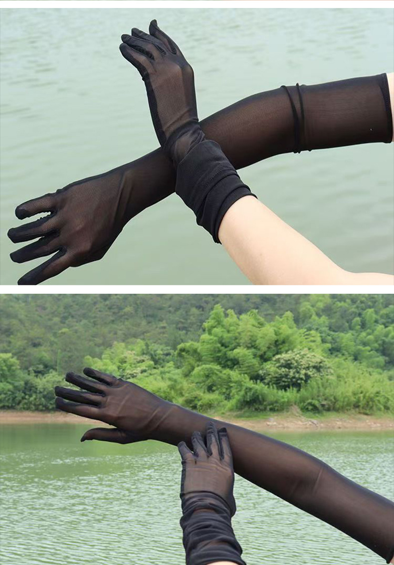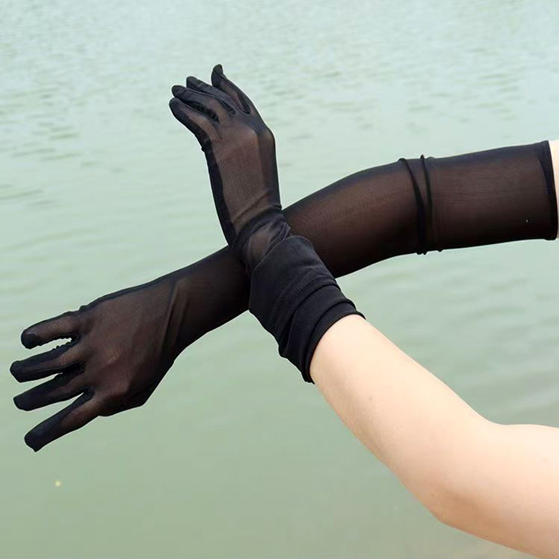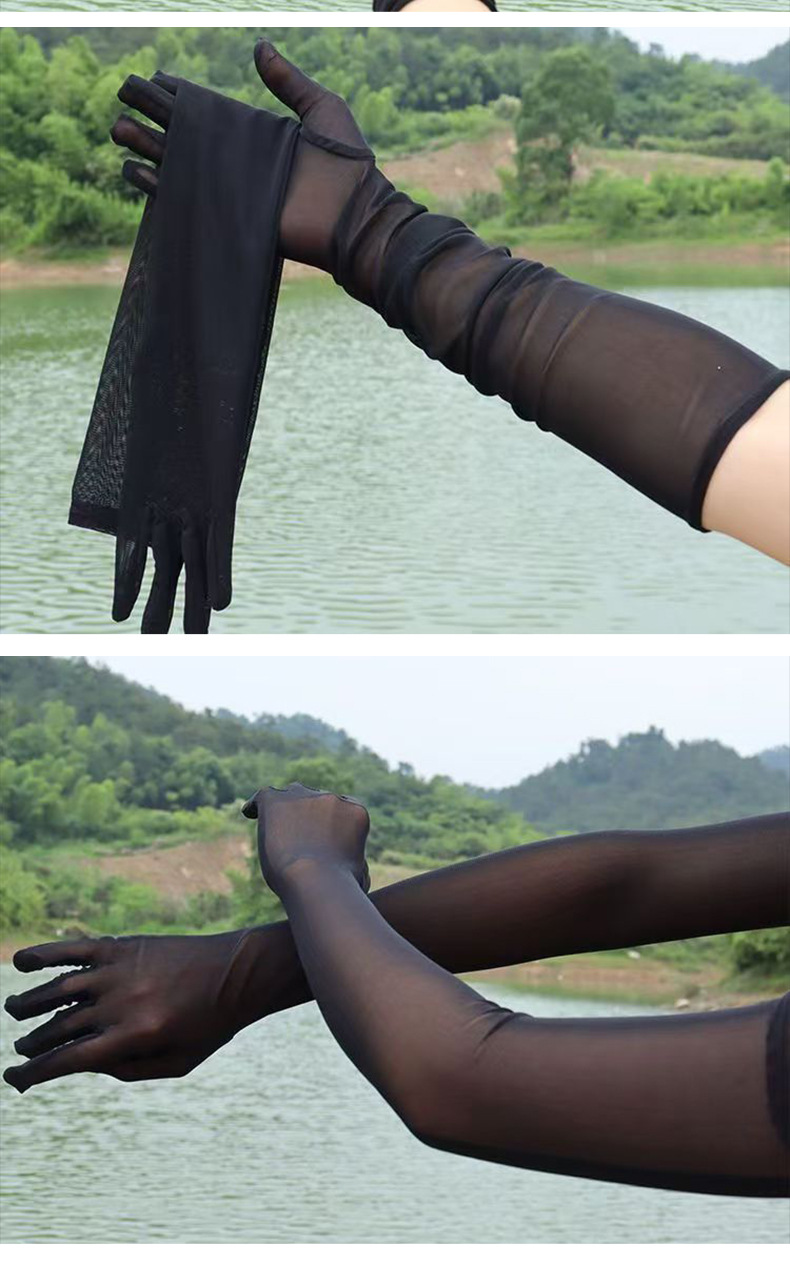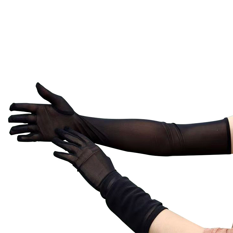 55厘米高弹薄款骑车特长防晒手套广场舞万圣节手套网纱性感弹力网