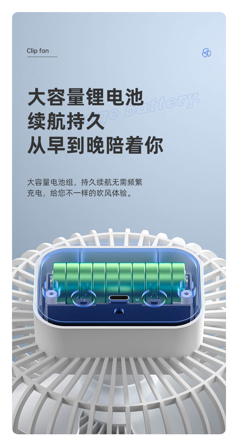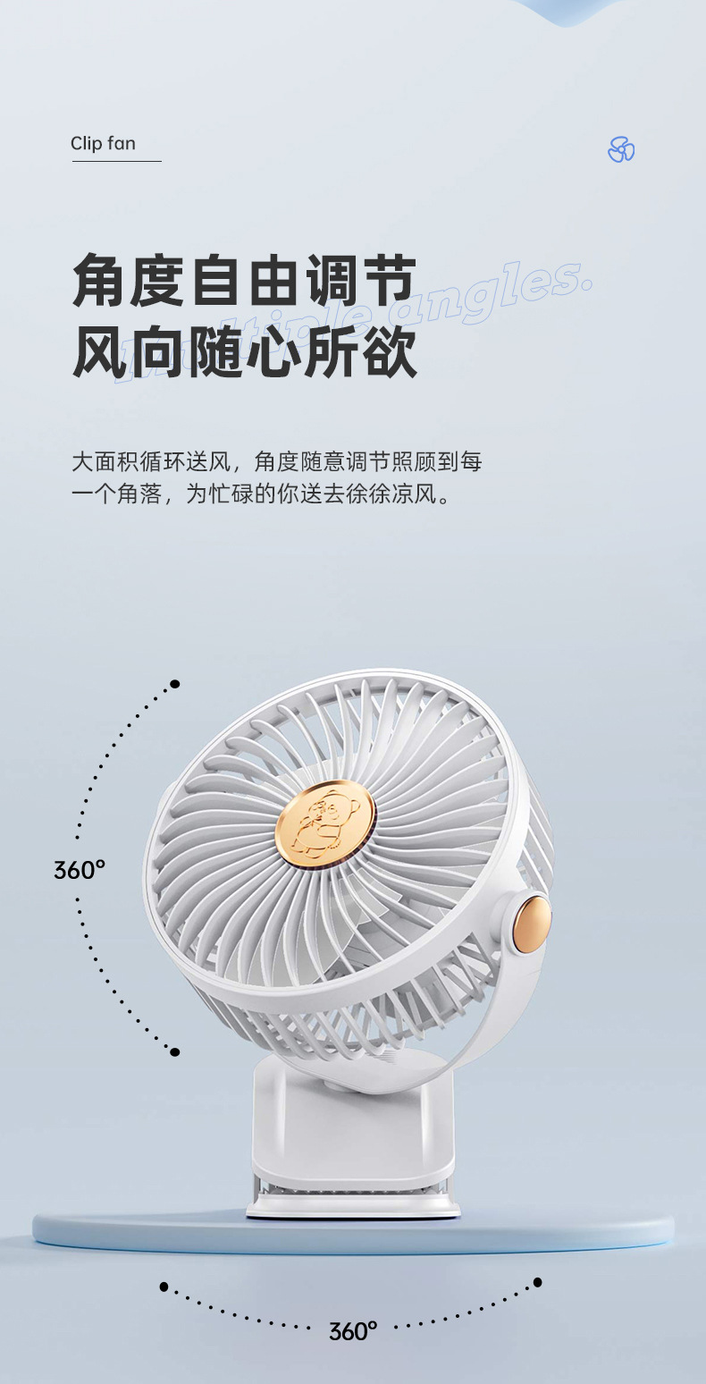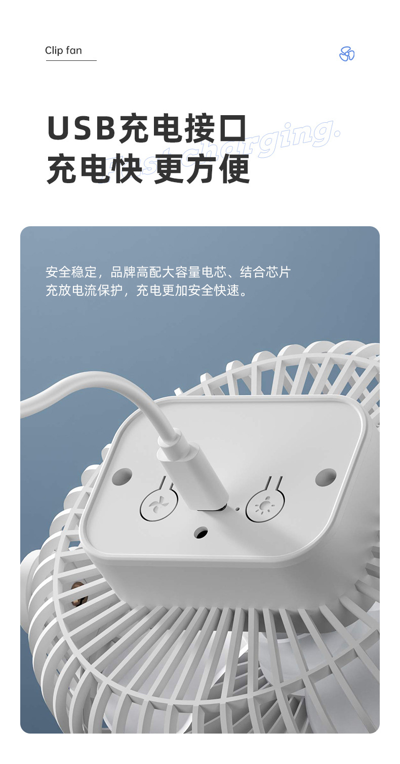 夹式小风扇充电式学生宿舍床上夹子电风扇小型台式桌面静音大风力