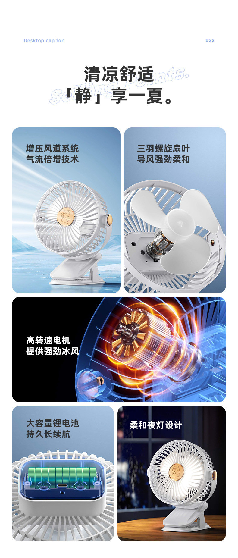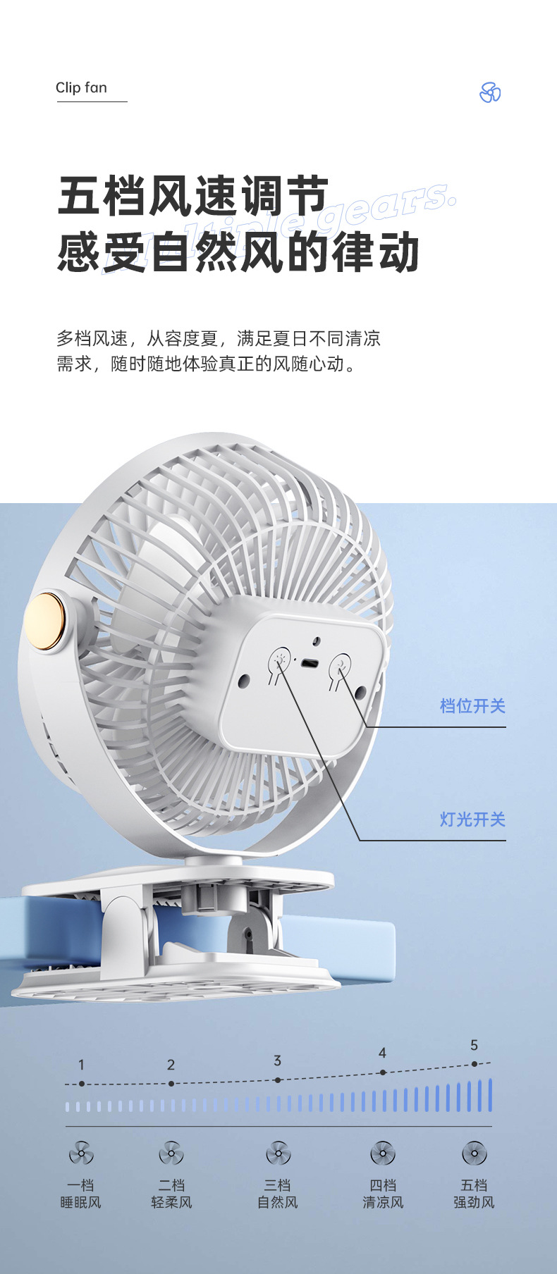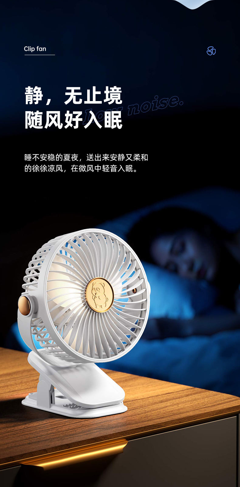 夹式小风扇充电式学生宿舍床上夹子电风扇小型台式桌面静音大风力
