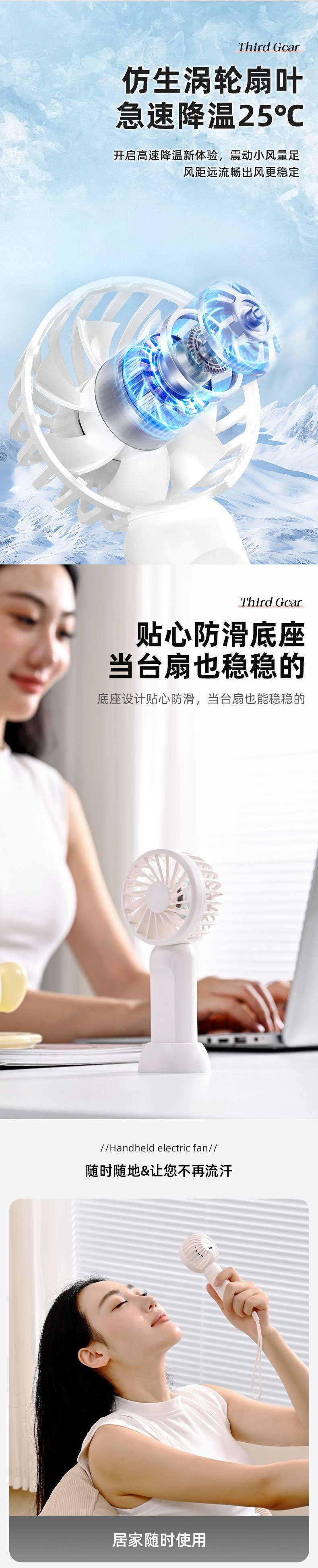 手持小风扇usb便携式宿舍小型涡轮风扇桌面静音桌面手持风扇批发