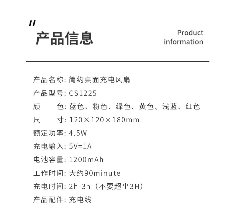 | desktop rechargeable fan with adjustable speed + charging head(台式充电风扇可调速+充充电头) | USD $5.93 | 1000 piece available |