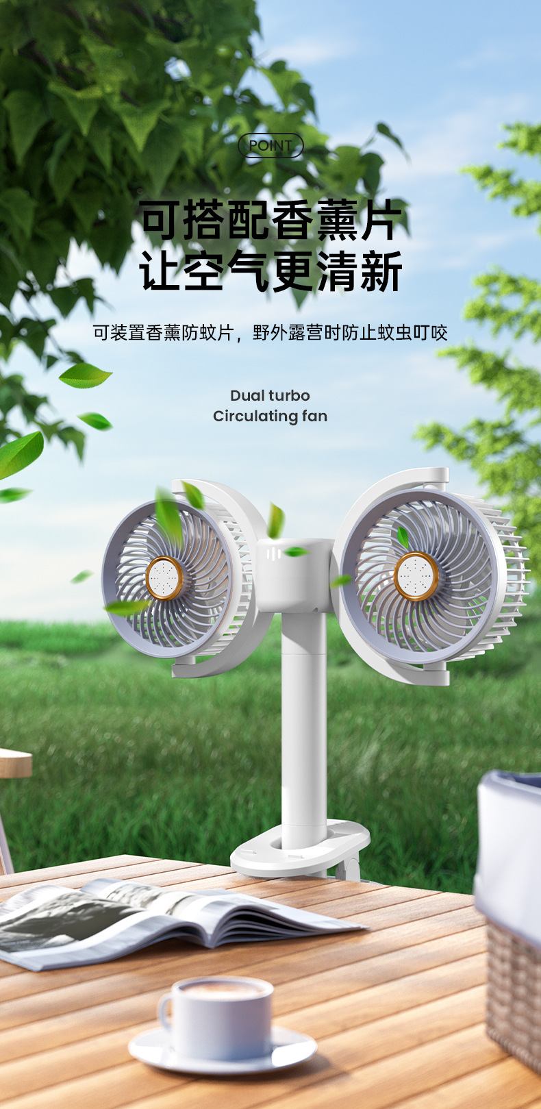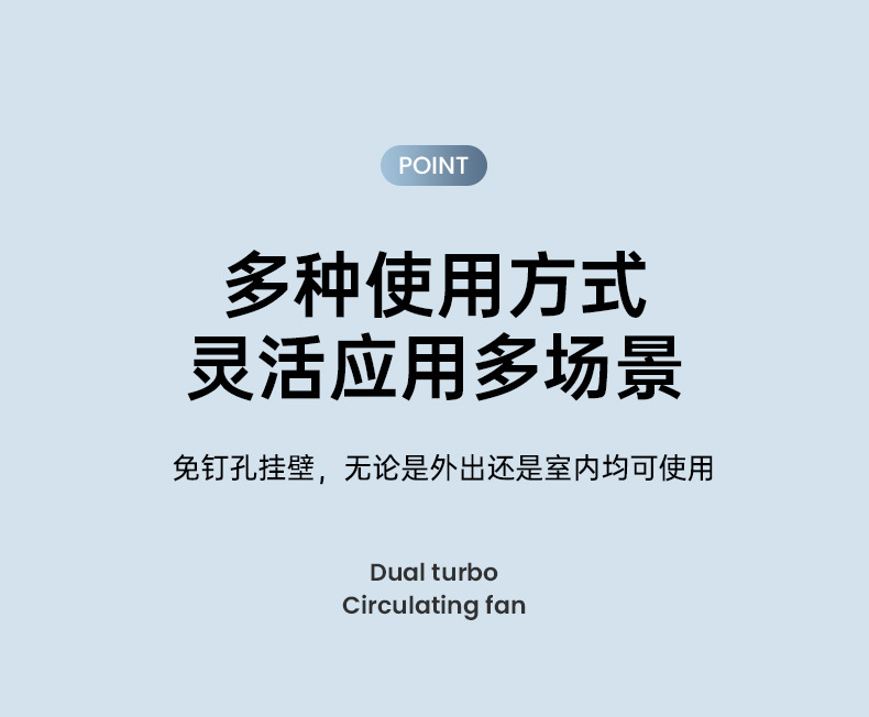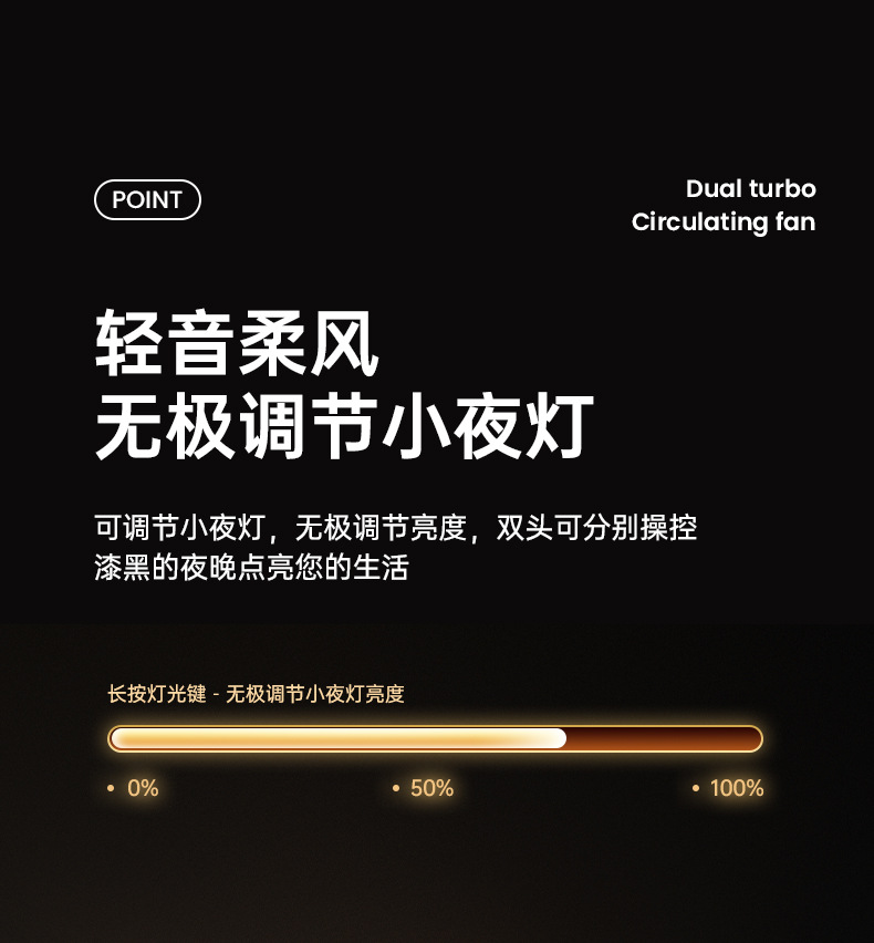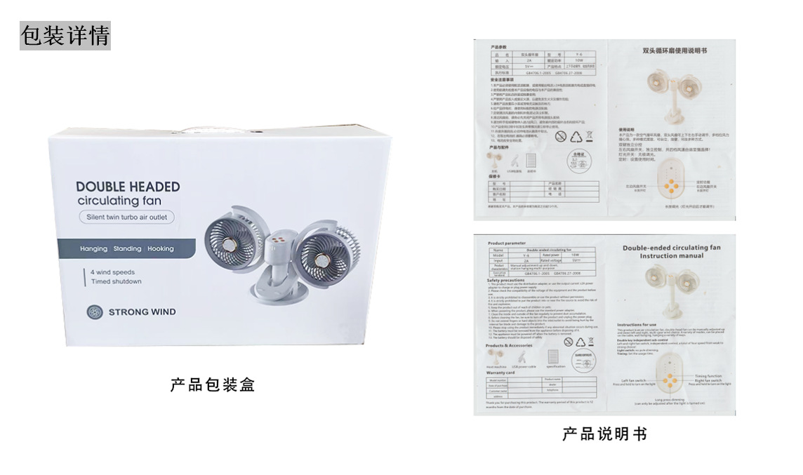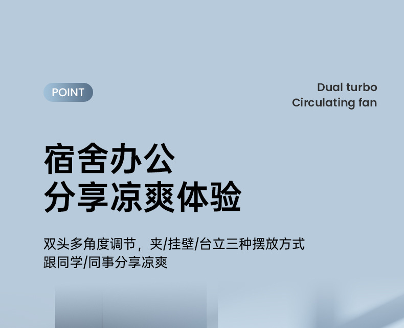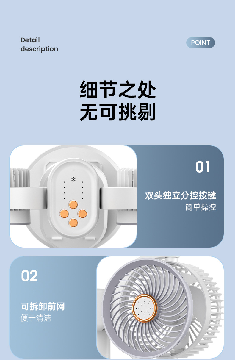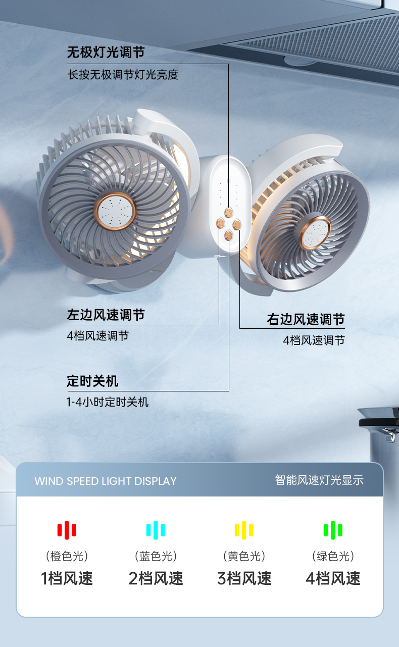 新款双头桌面循环扇多功能USB充电灯光露营风扇家用壁挂夹子风扇