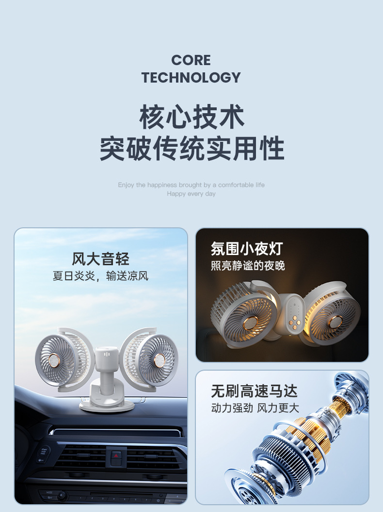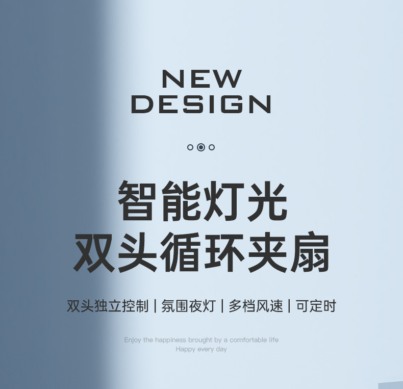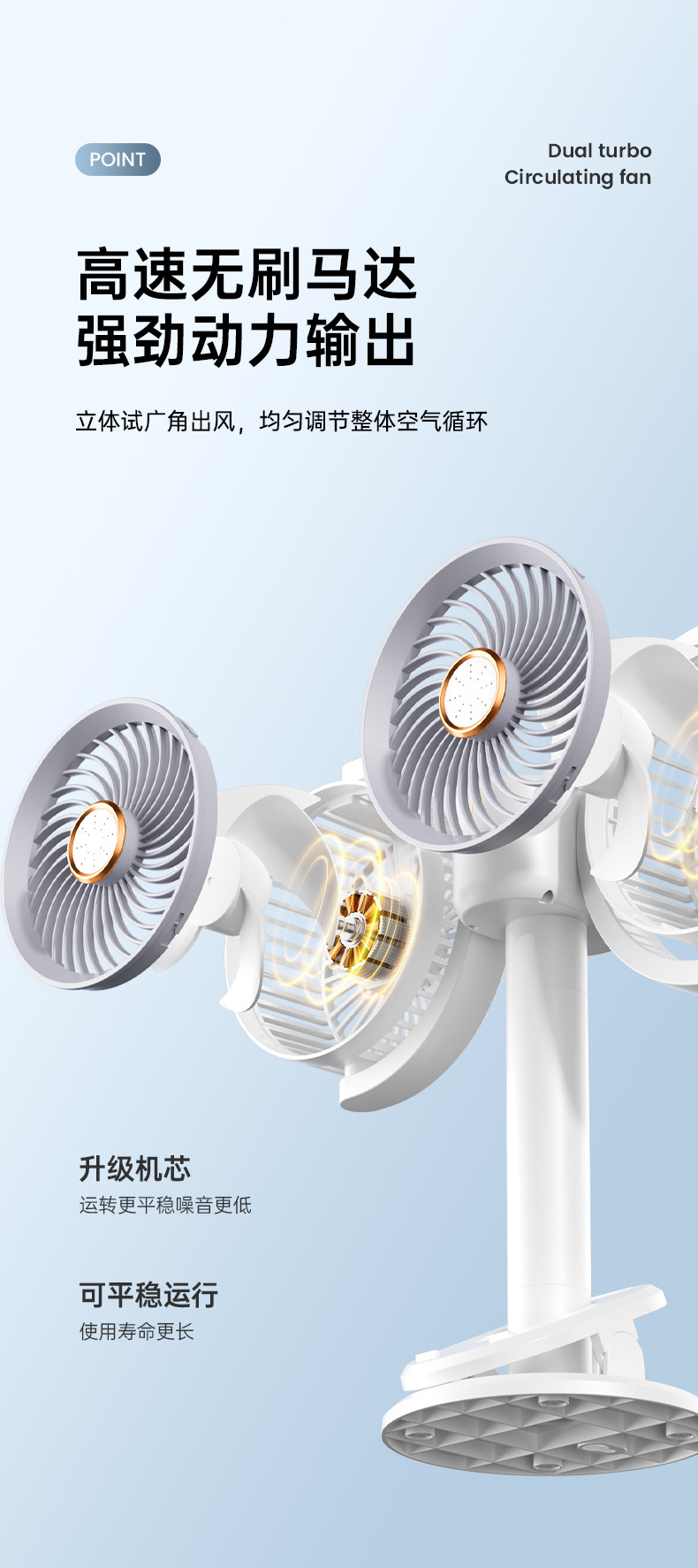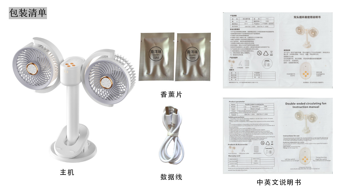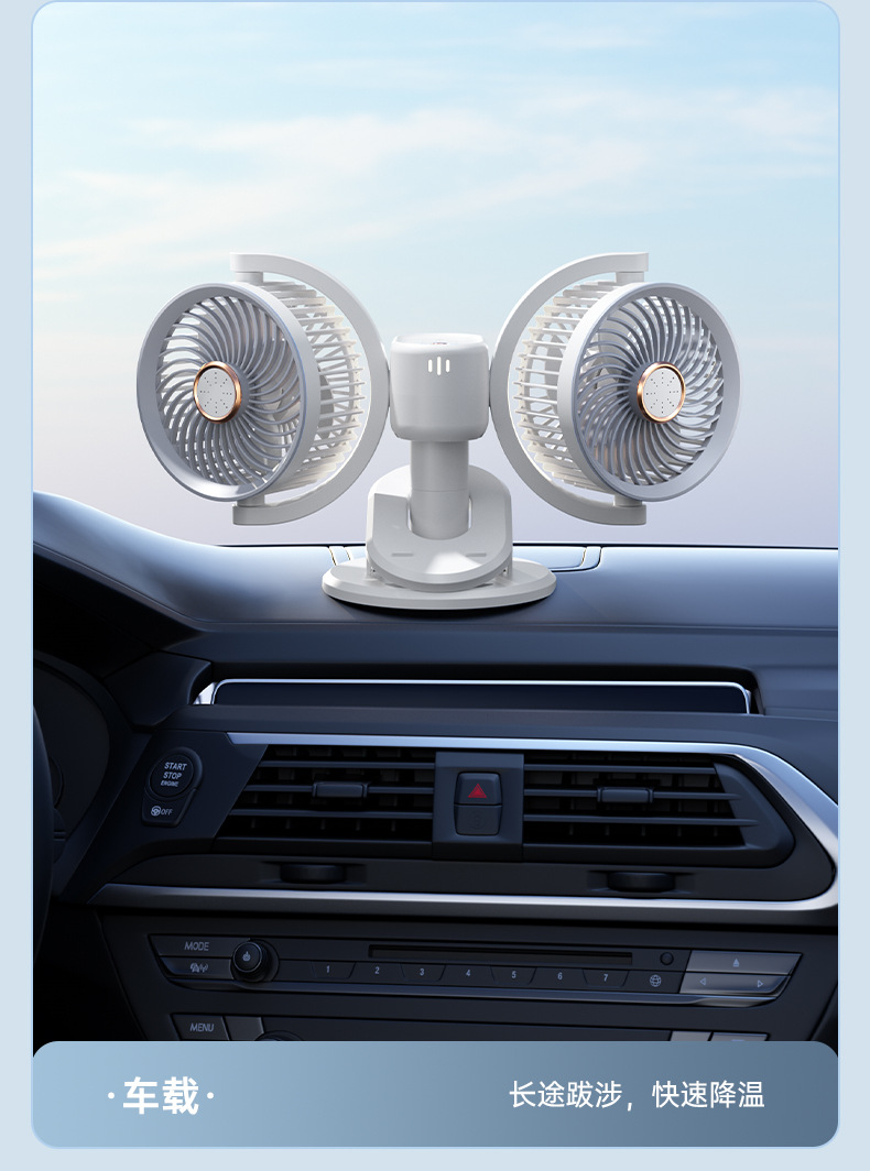 新款双头桌面循环扇多功能USB充电灯光露营风扇家用壁挂夹子风扇