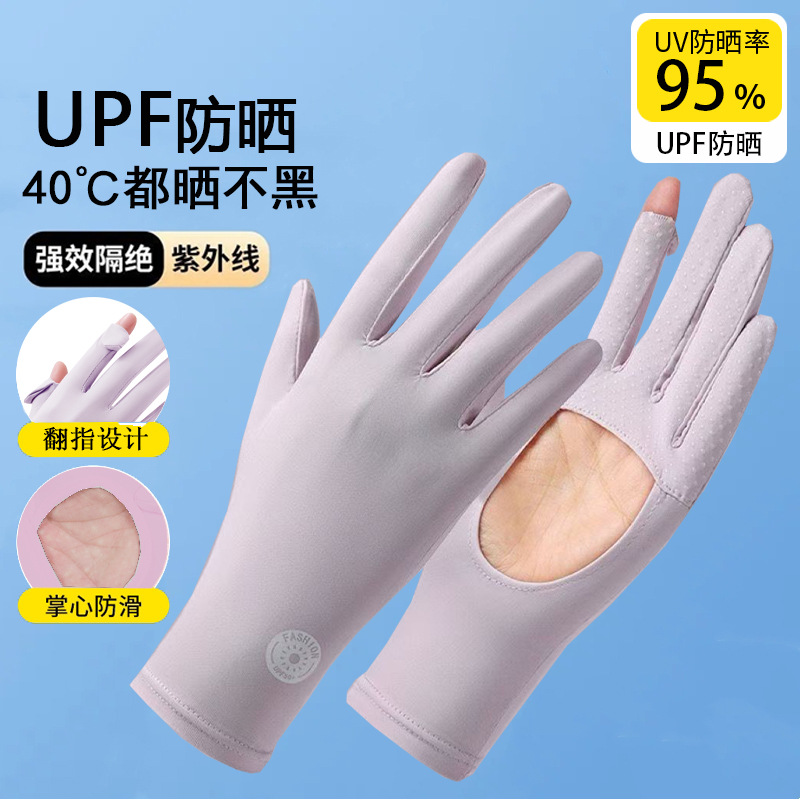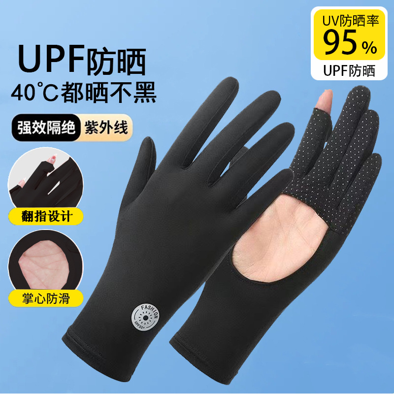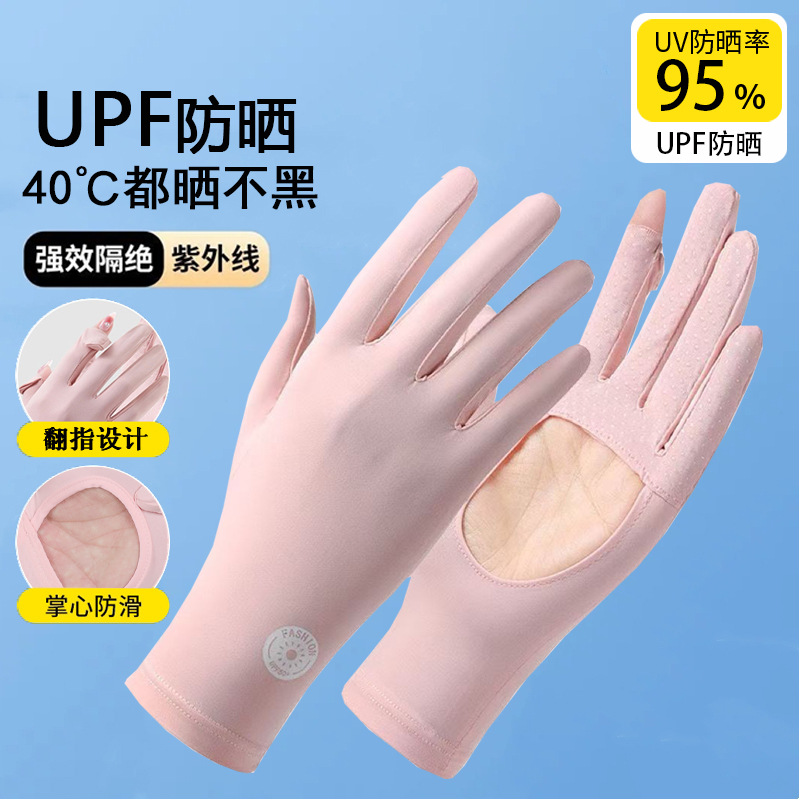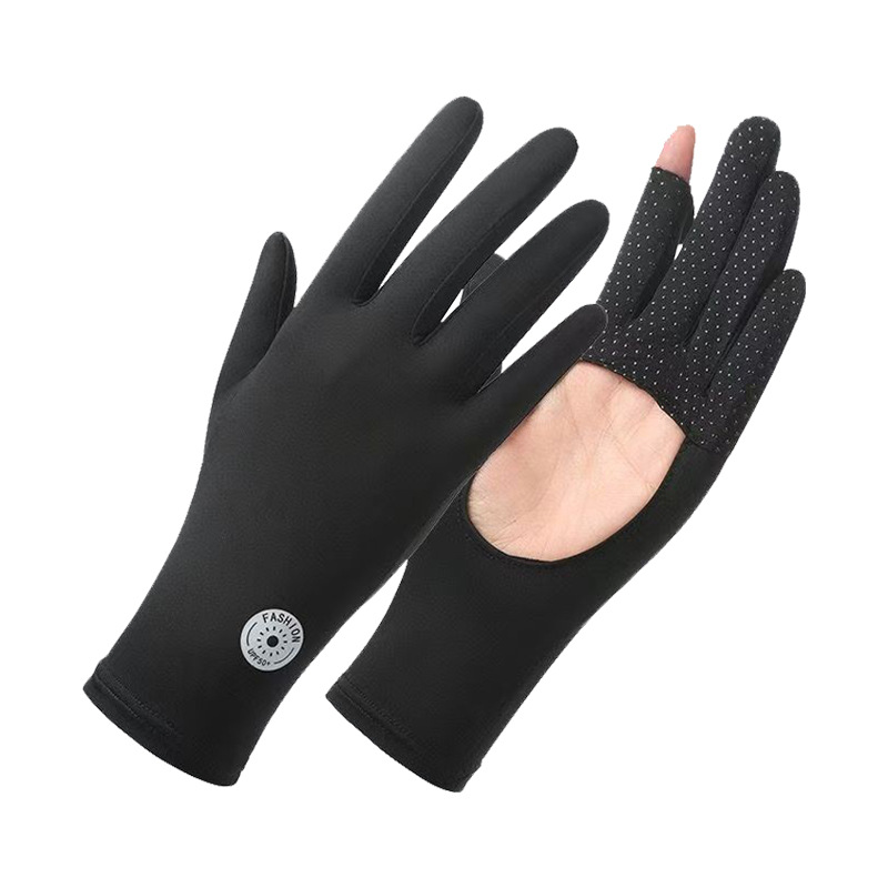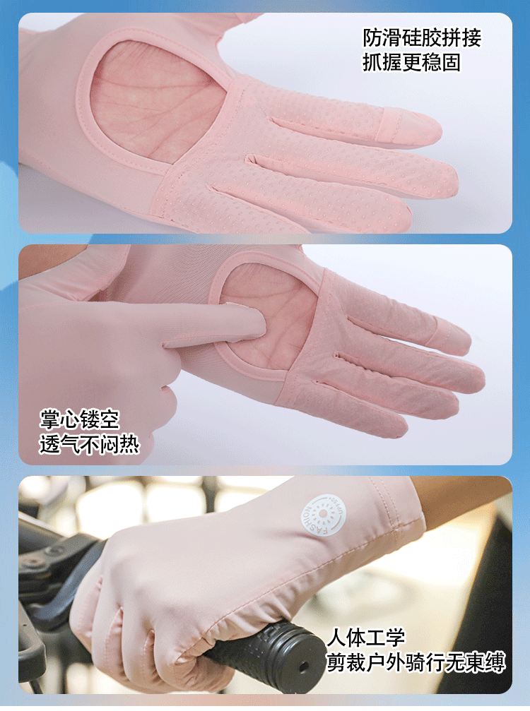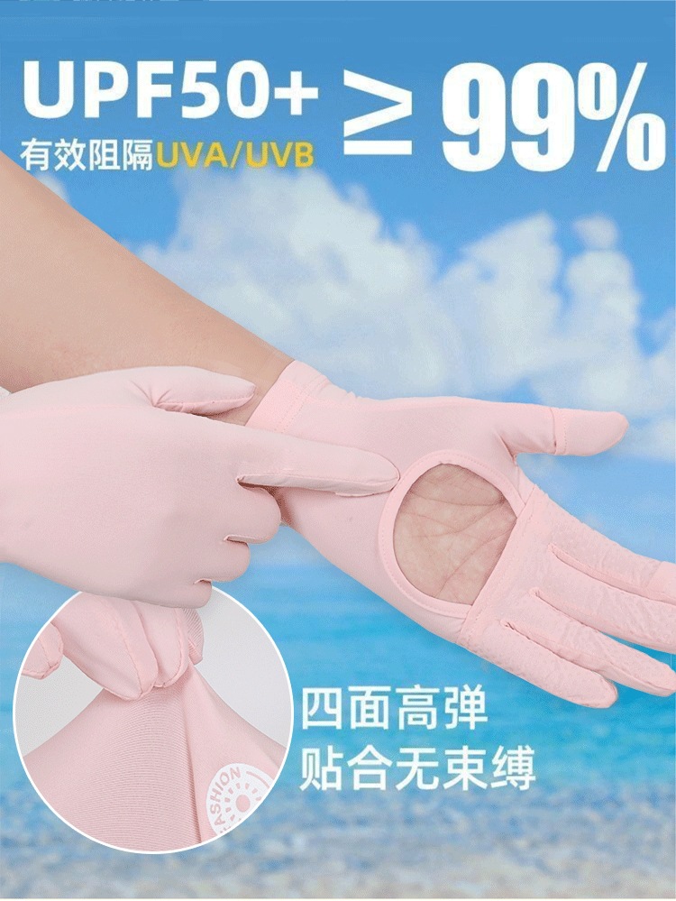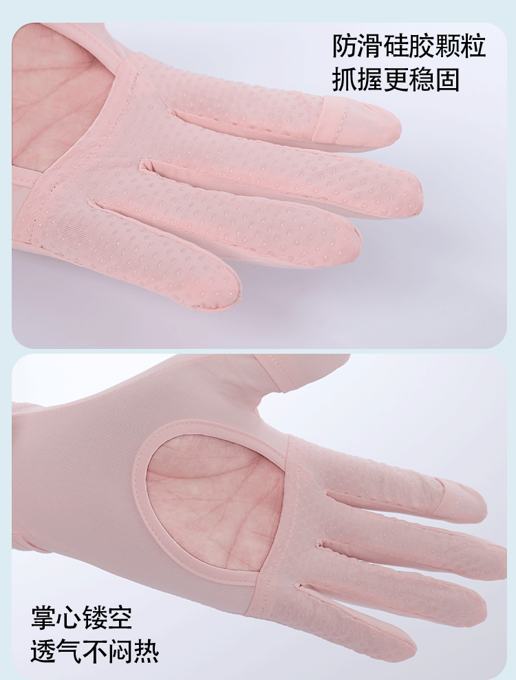 冰丝防晒手套掌心镂空女夏防紫外线开车露指紧贴手电动车触屏骑车