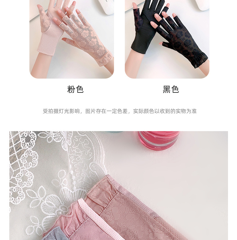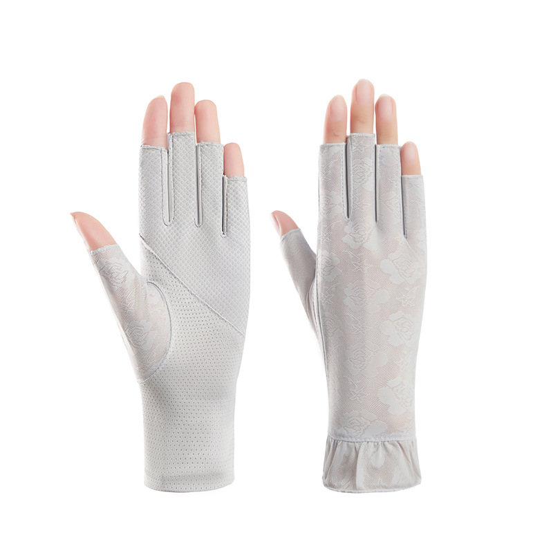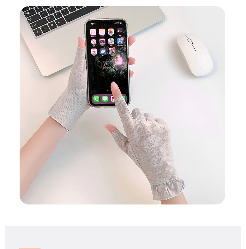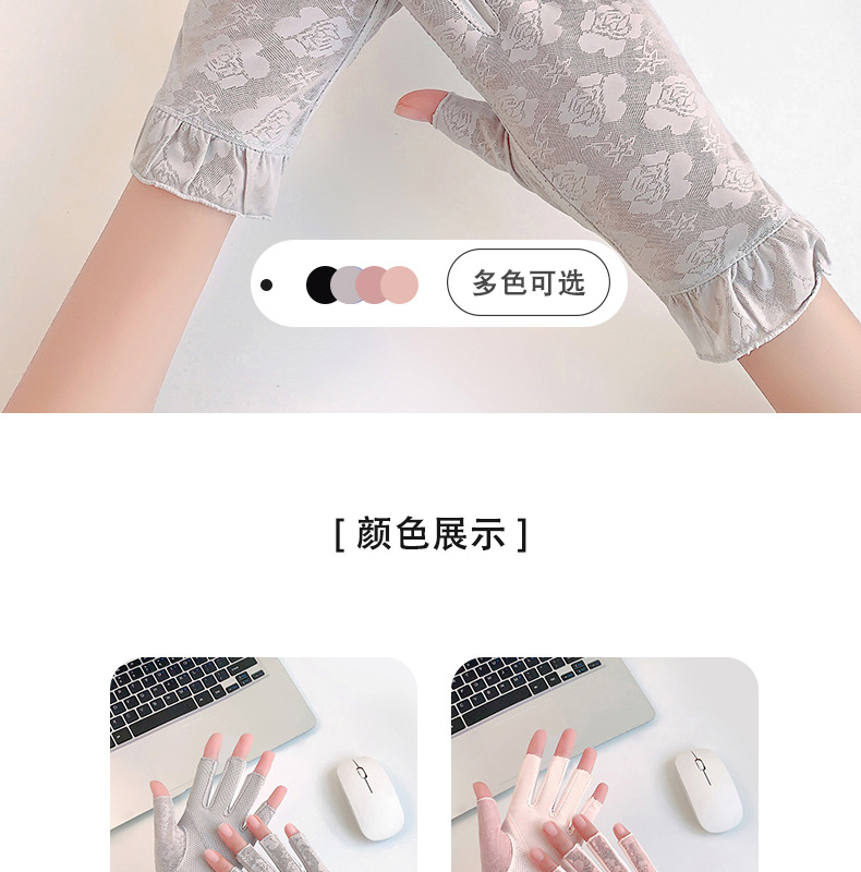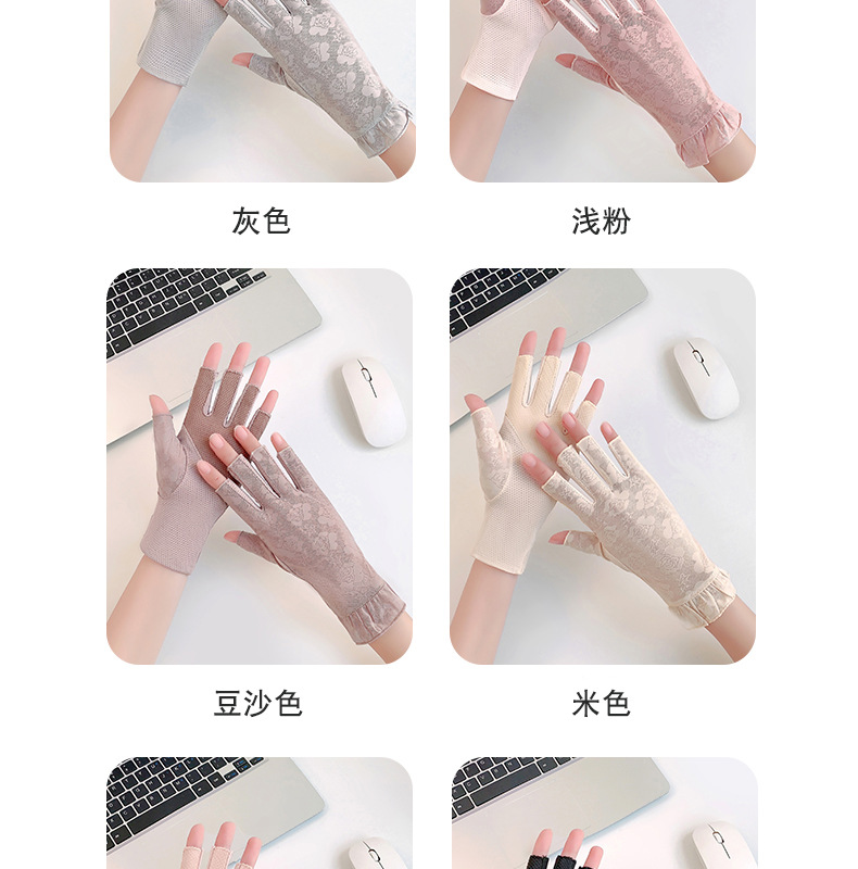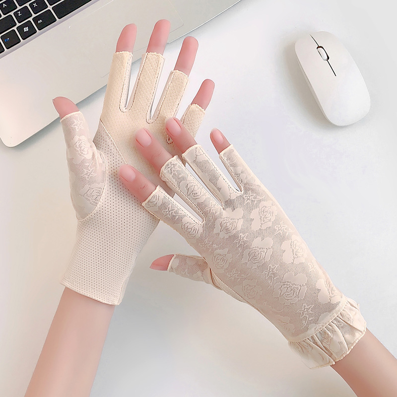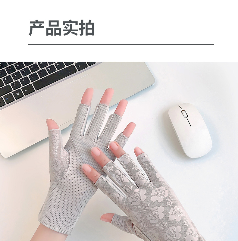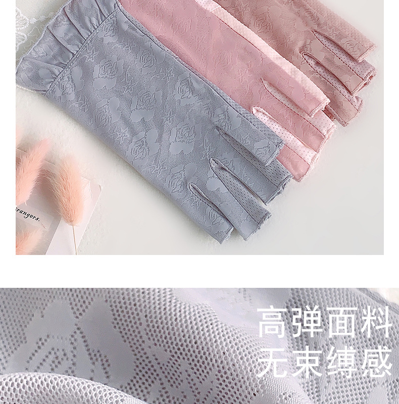 半指手套女士薄款弹力蕾丝开车防晒防滑透气美甲露指冰丝半指手套