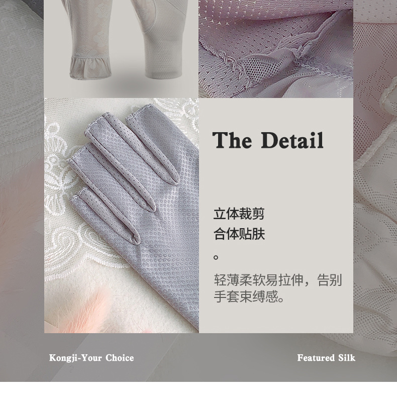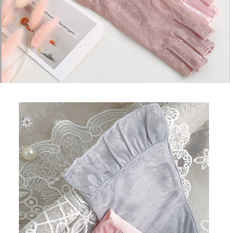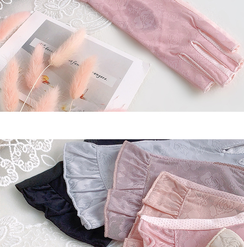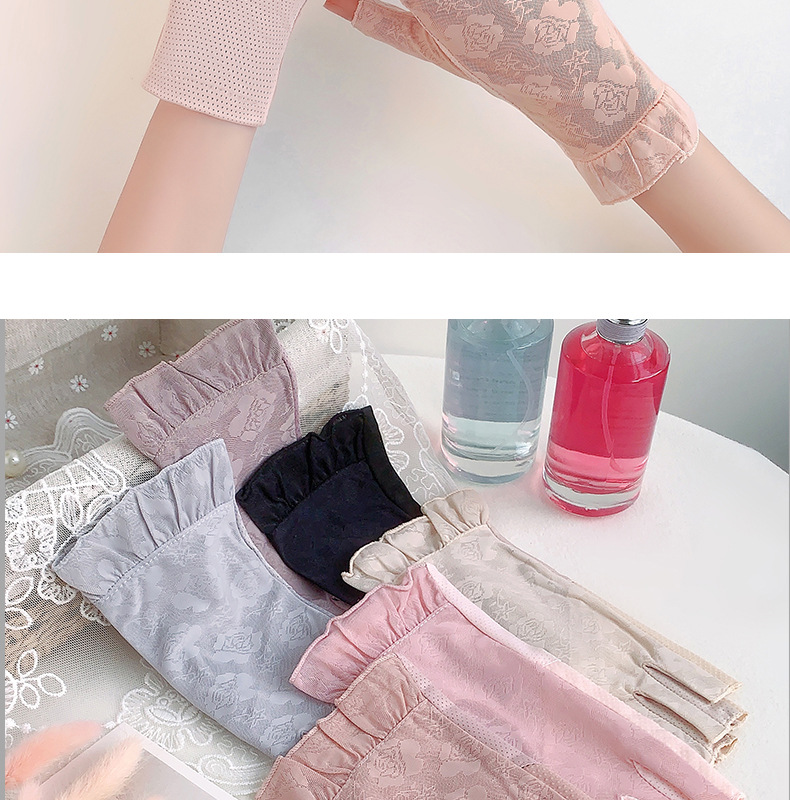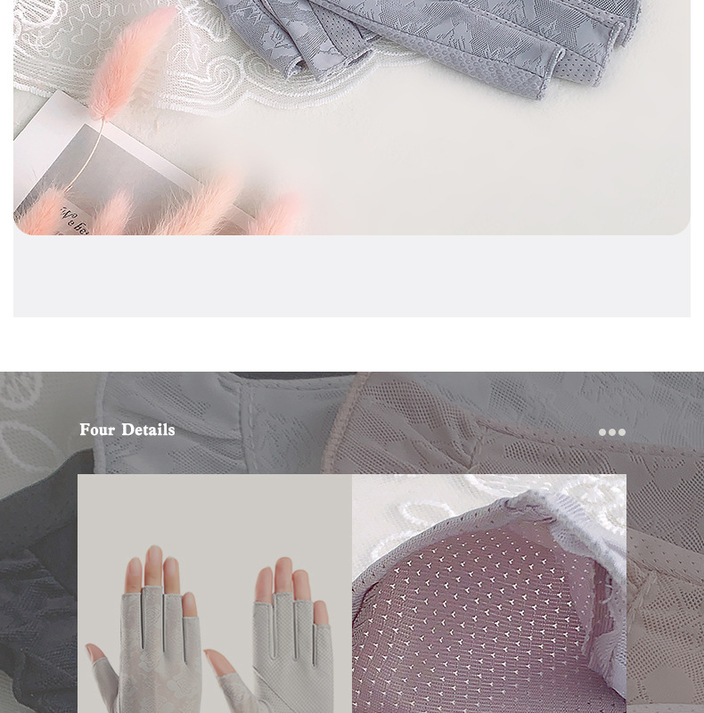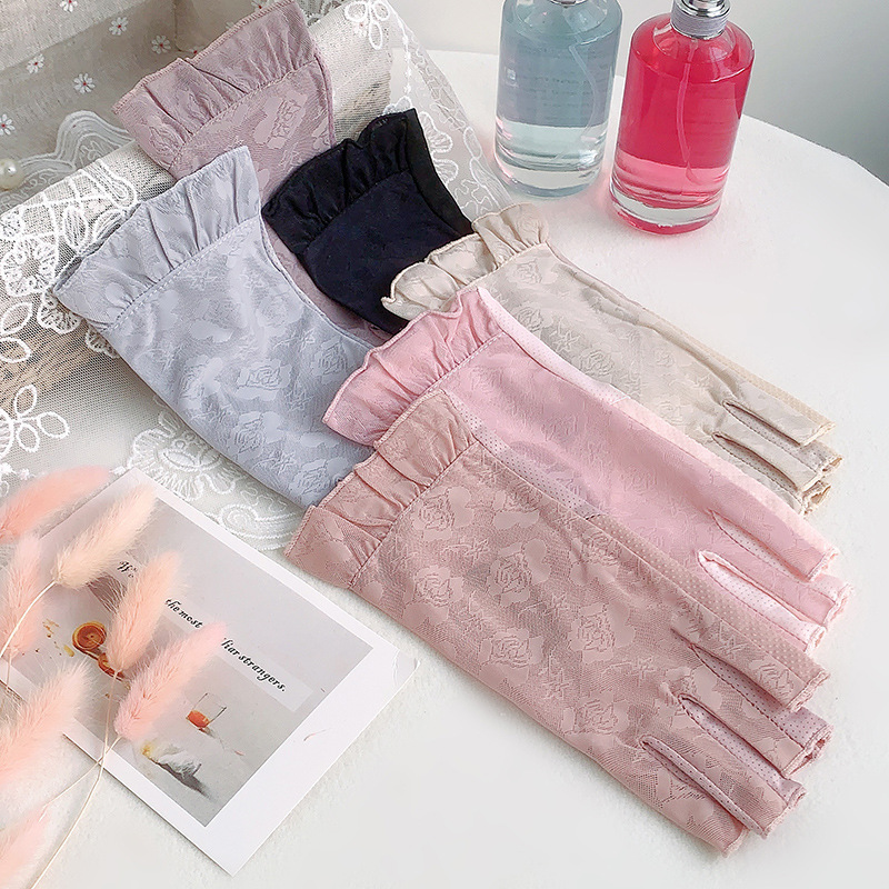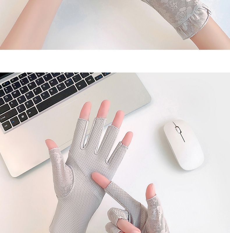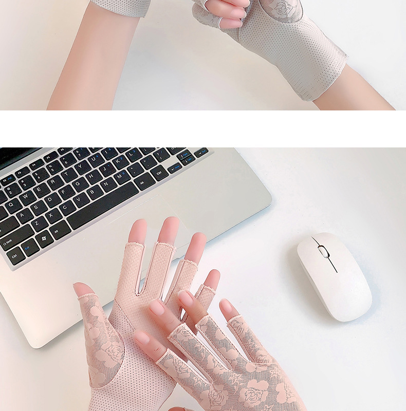 半指手套女士薄款弹力蕾丝开车防晒防滑透气美甲露指冰丝半指手套