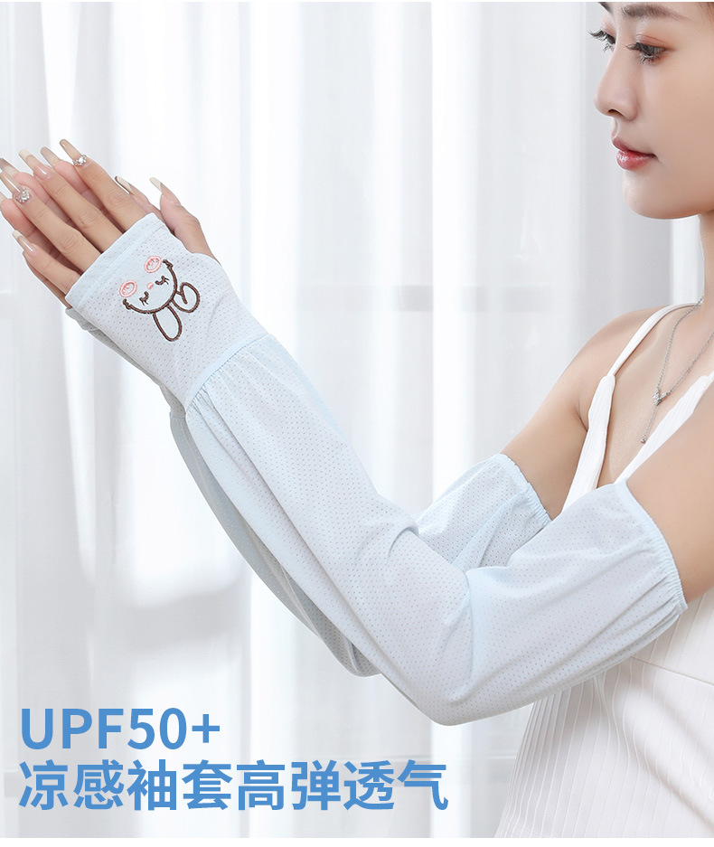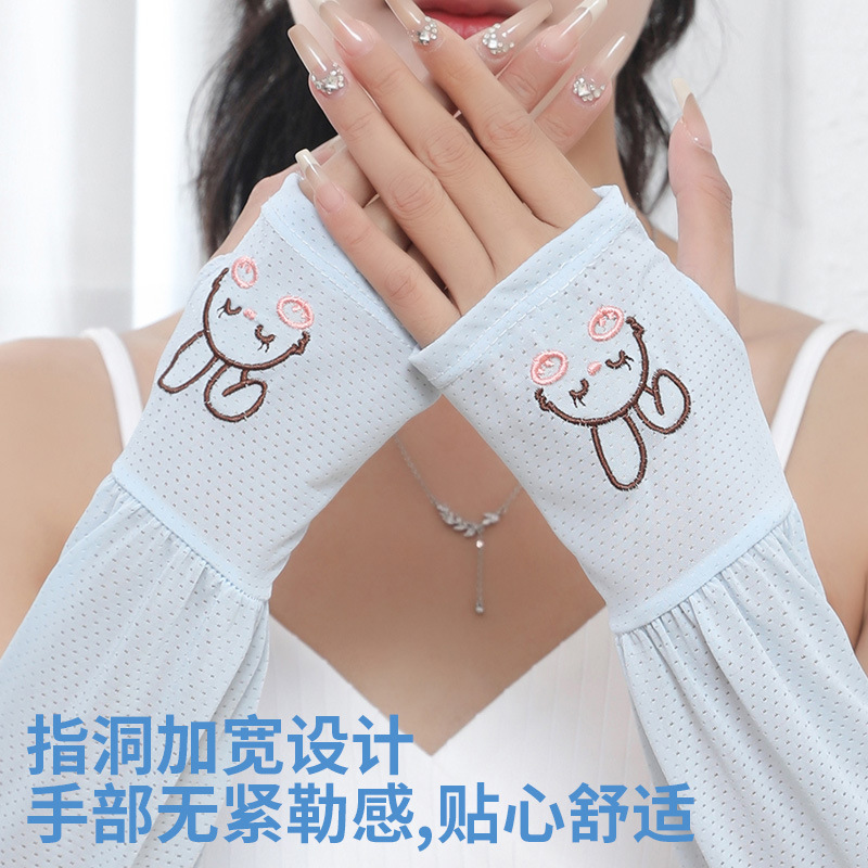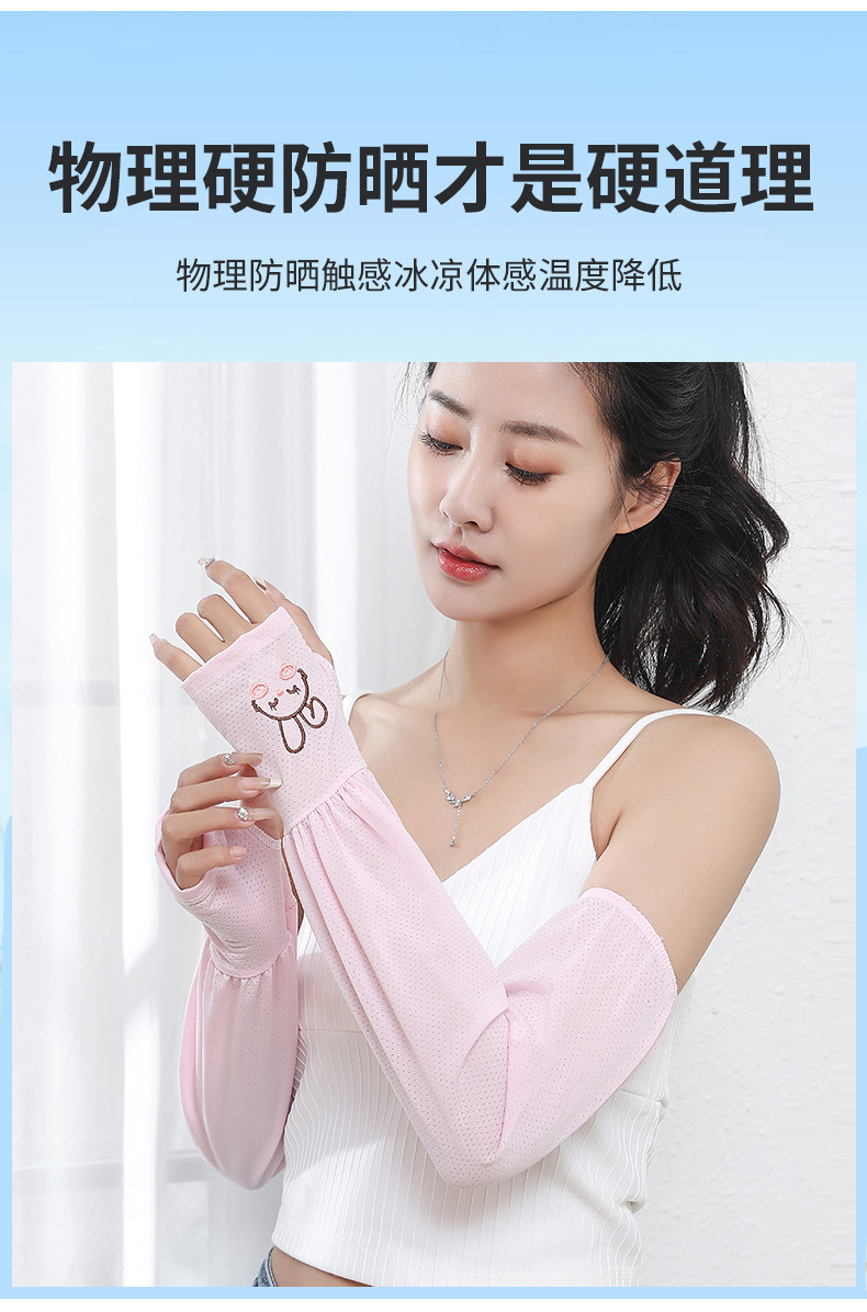 新款夏季防晒冰丝冰袖夏日出行骑行旅游爬山开车可爱兔兔防晒袖套
