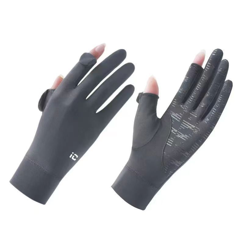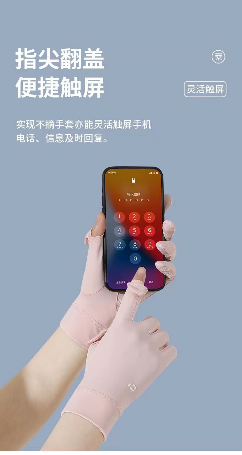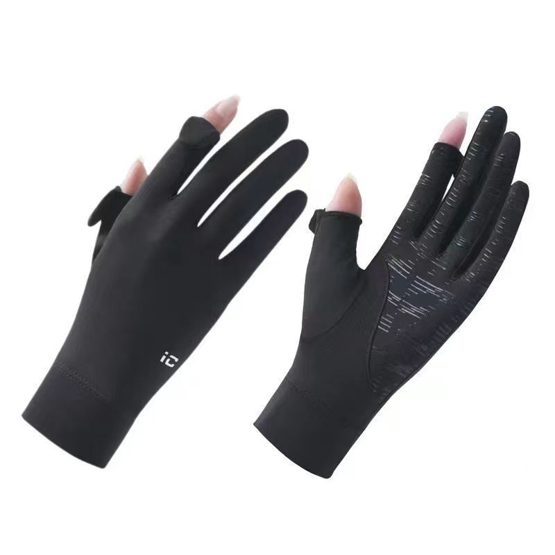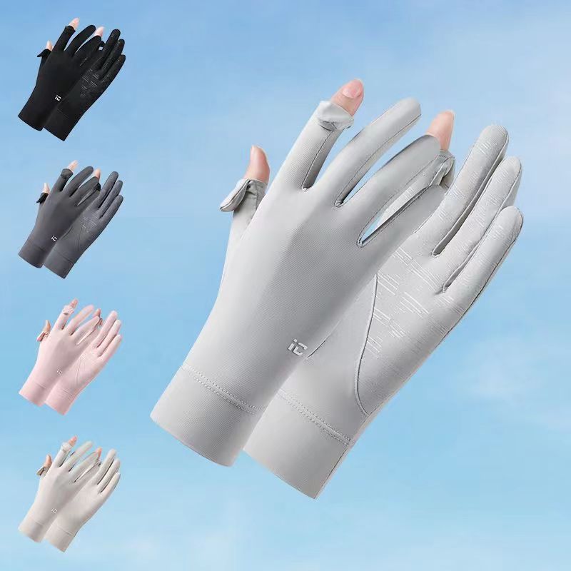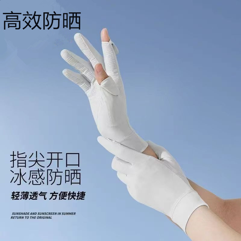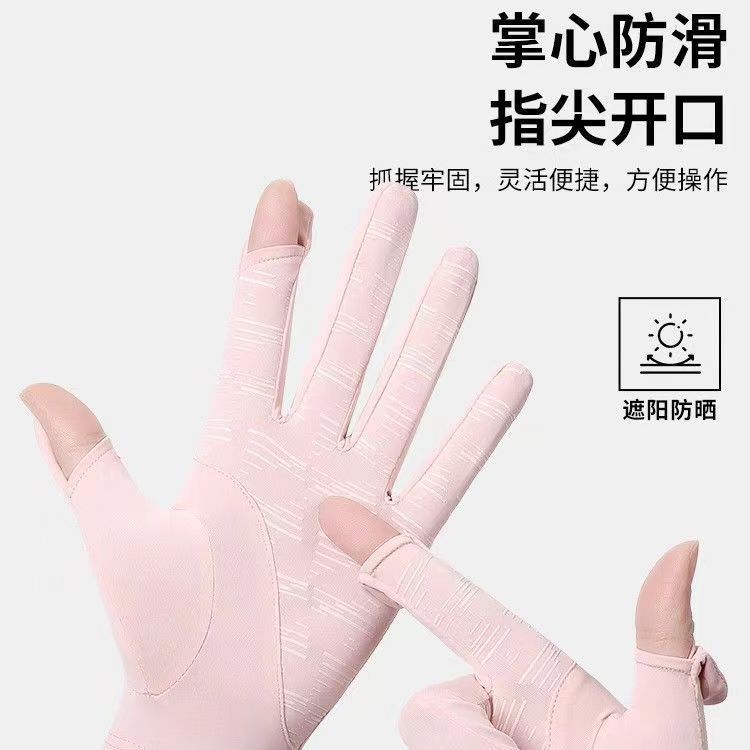 夏季冰丝透气骑行手套防晒女夏季开车防紫外线漏二指防滑触屏手套