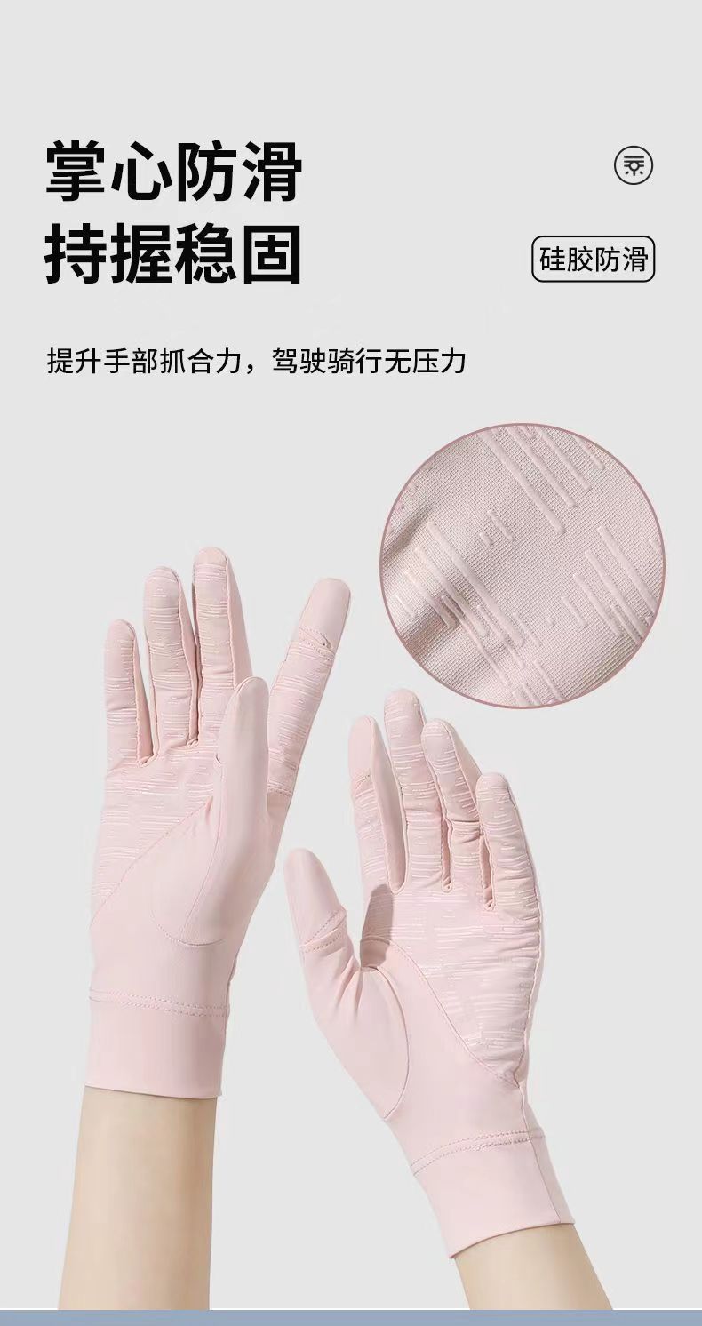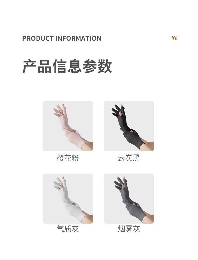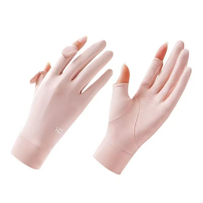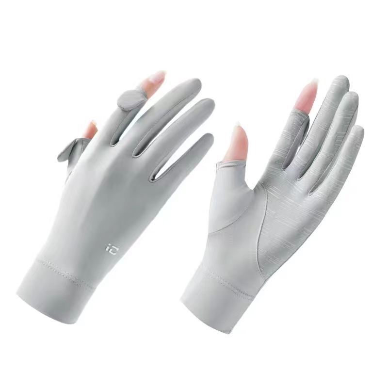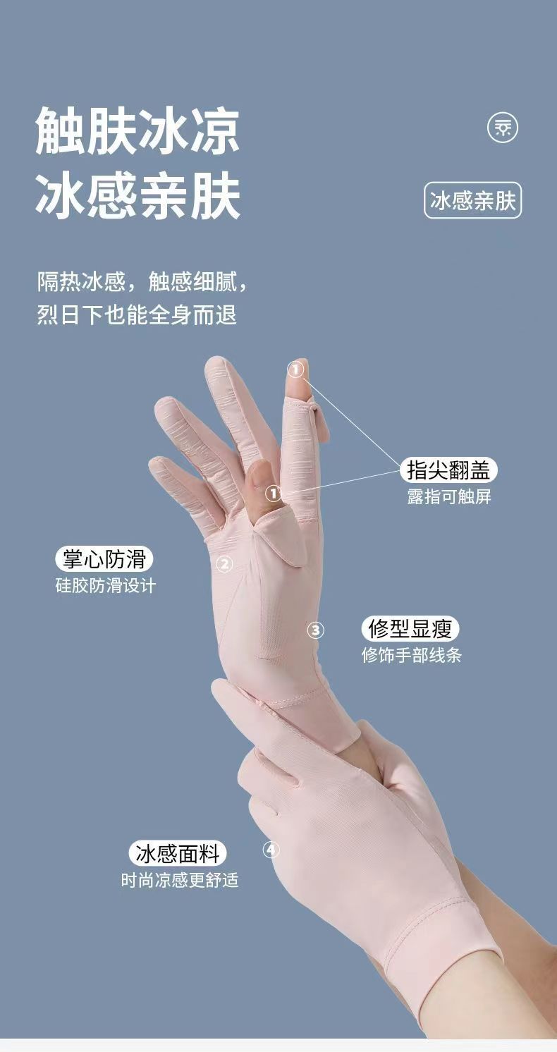 夏季冰丝透气骑行手套防晒女夏季开车防紫外线漏二指防滑触屏手套