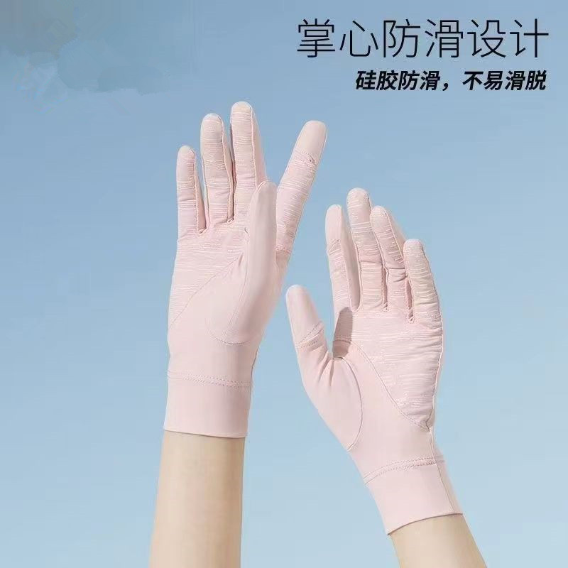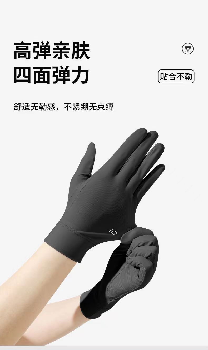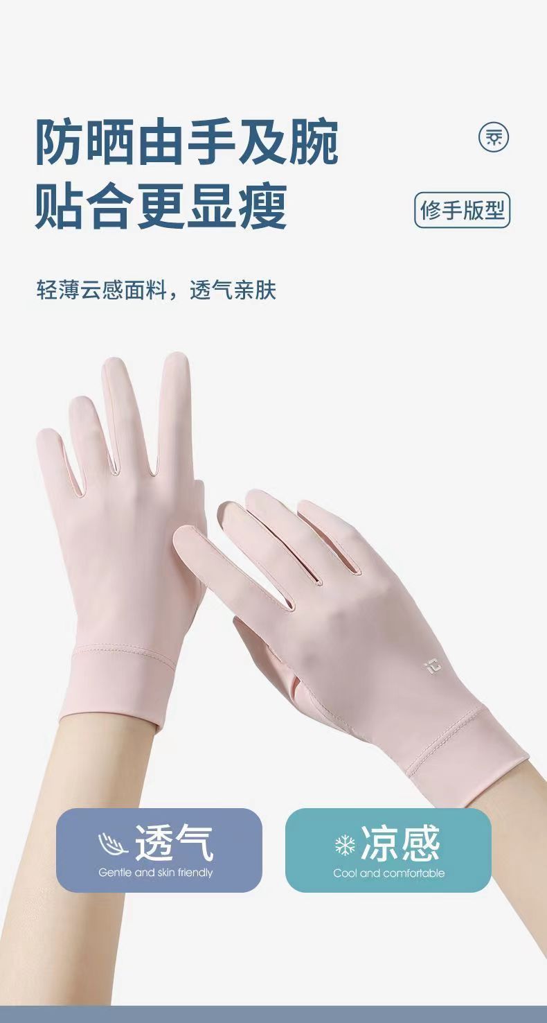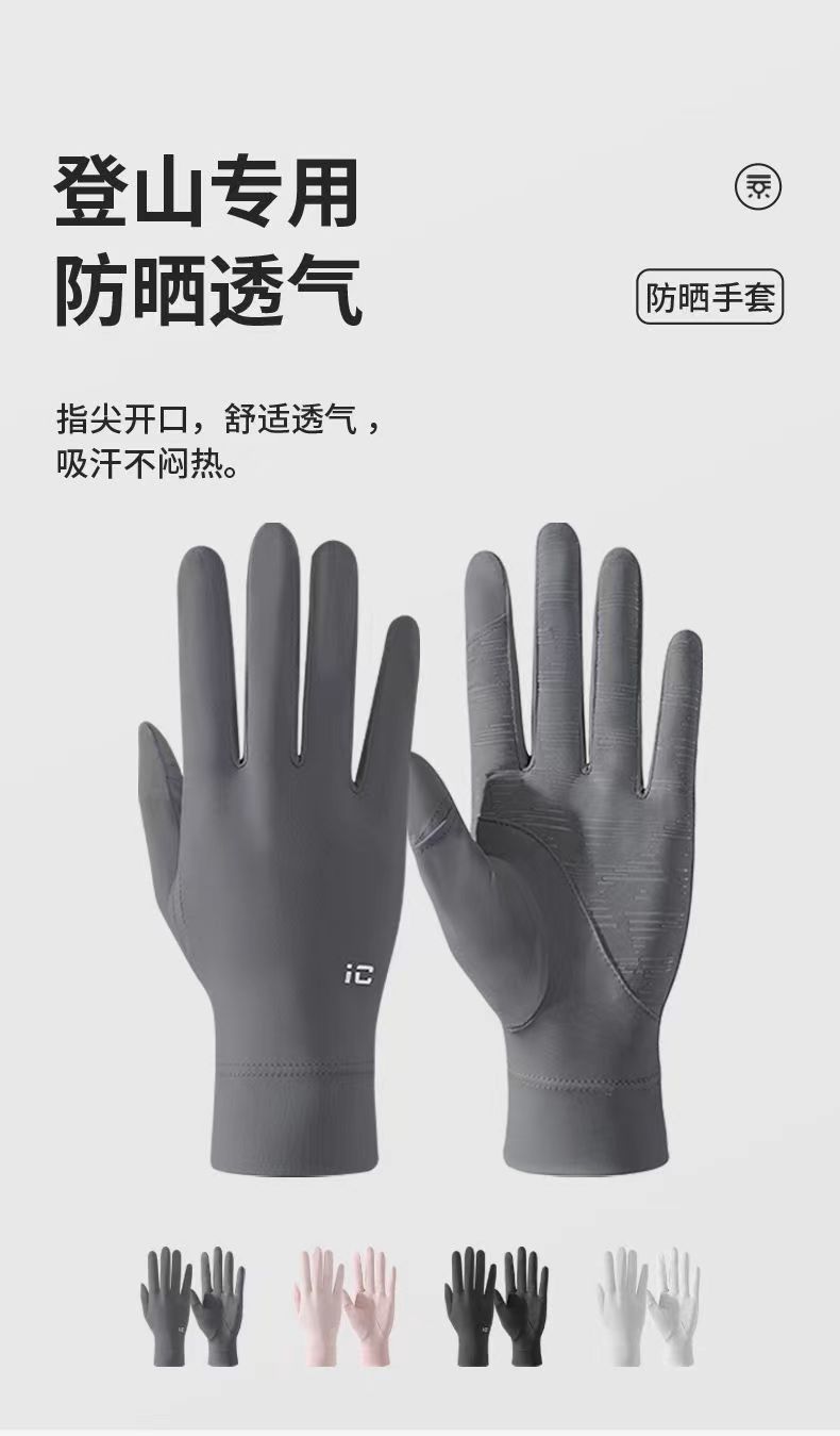 夏季冰丝透气骑行手套防晒女夏季开车防紫外线漏二指防滑触屏手套