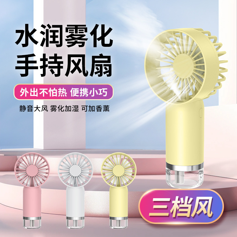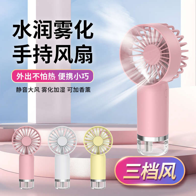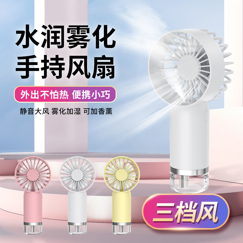 新款补水喷雾手持风扇家用静音电风扇便携usb充电款长续航大风力