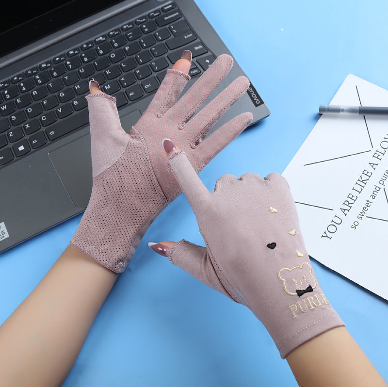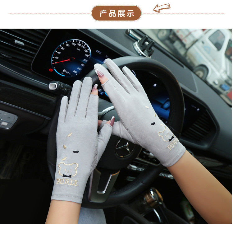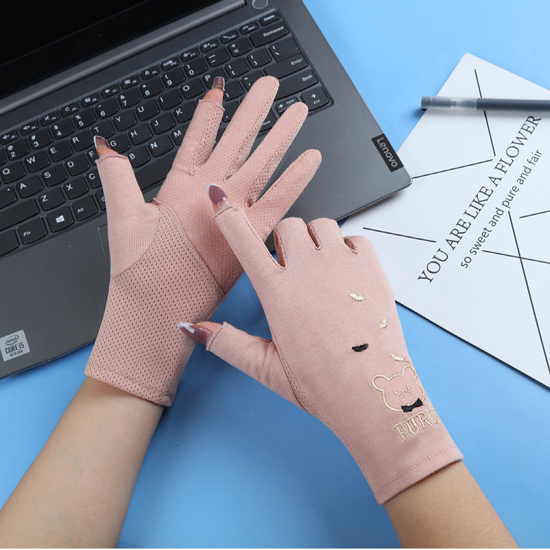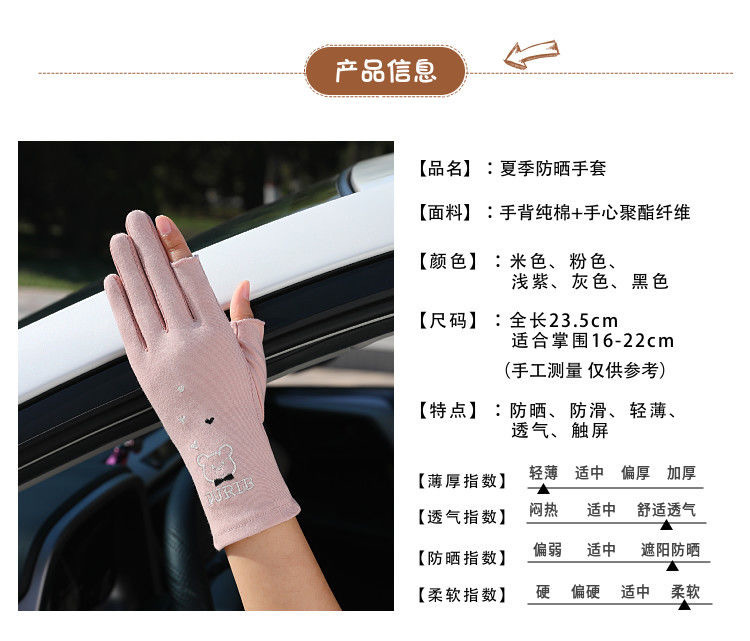 防晒手套女士夏棉户外透气舒适触屏薄款手套开车短款骑行手套批发