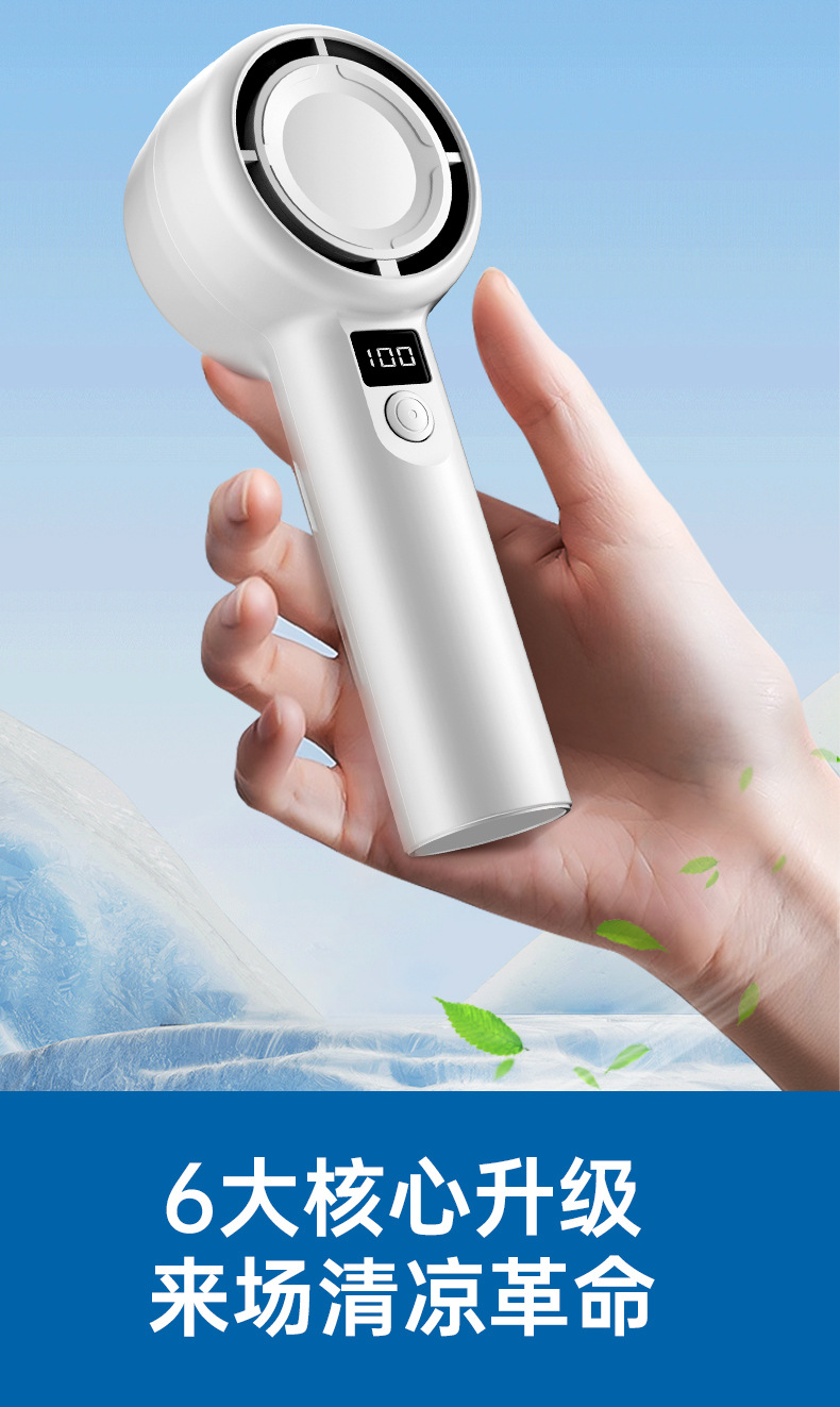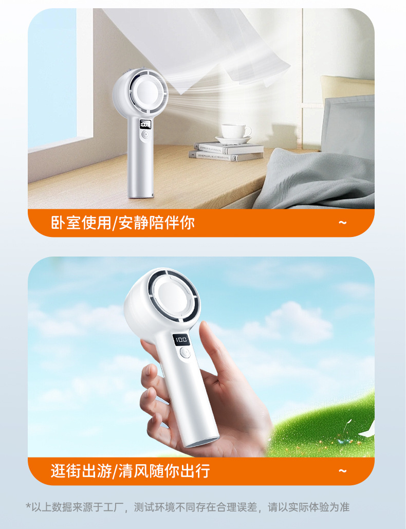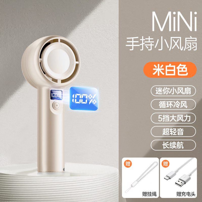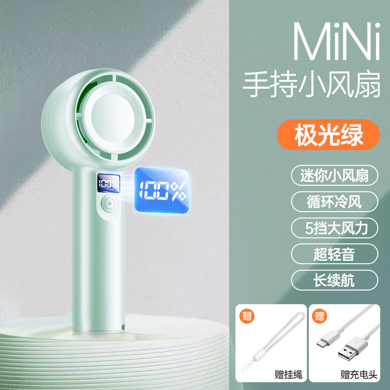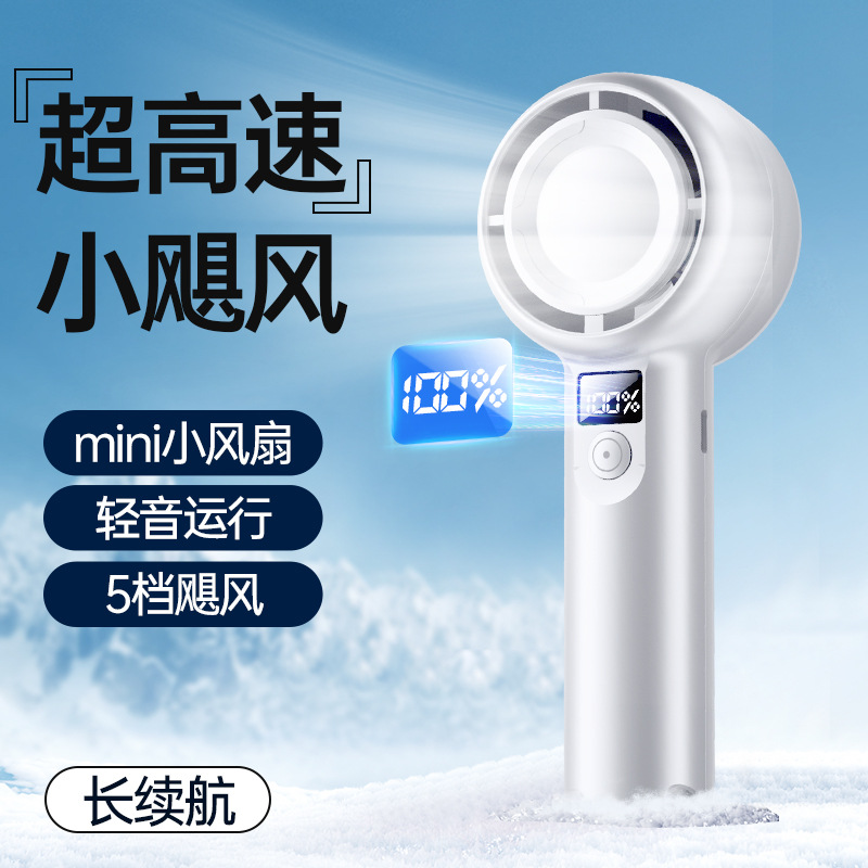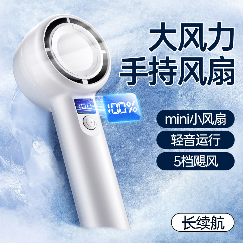 新款手持小风扇USB充电便携学生礼品低噪音随身五档迷你数显静音