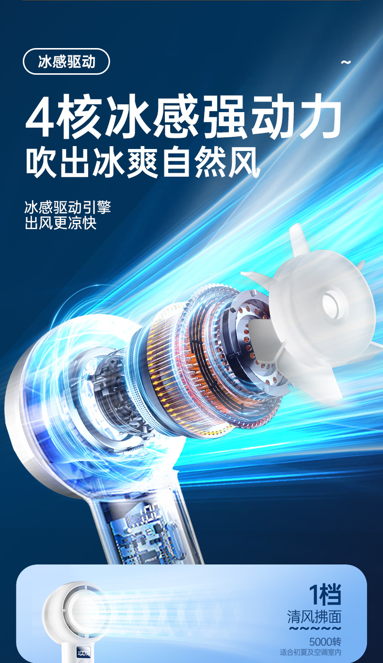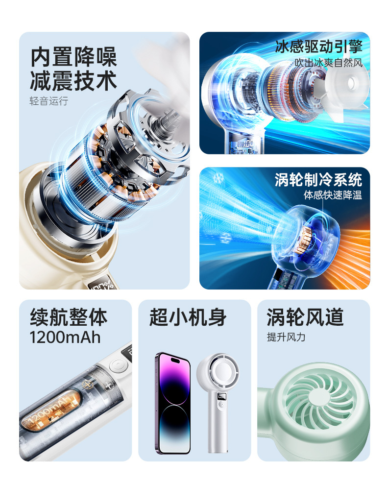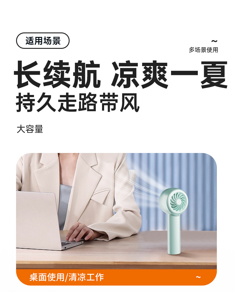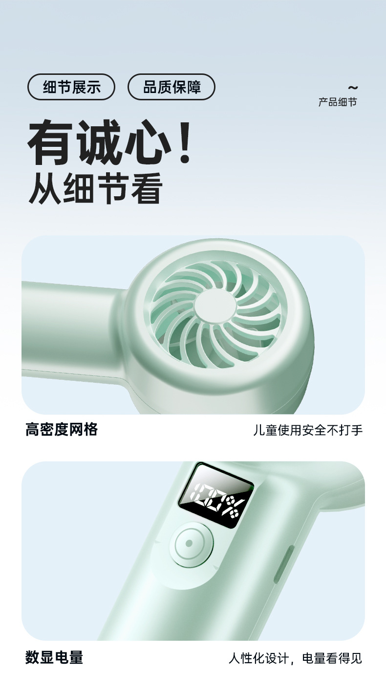 新款手持小风扇USB充电便携学生礼品低噪音随身五档迷你数显静音