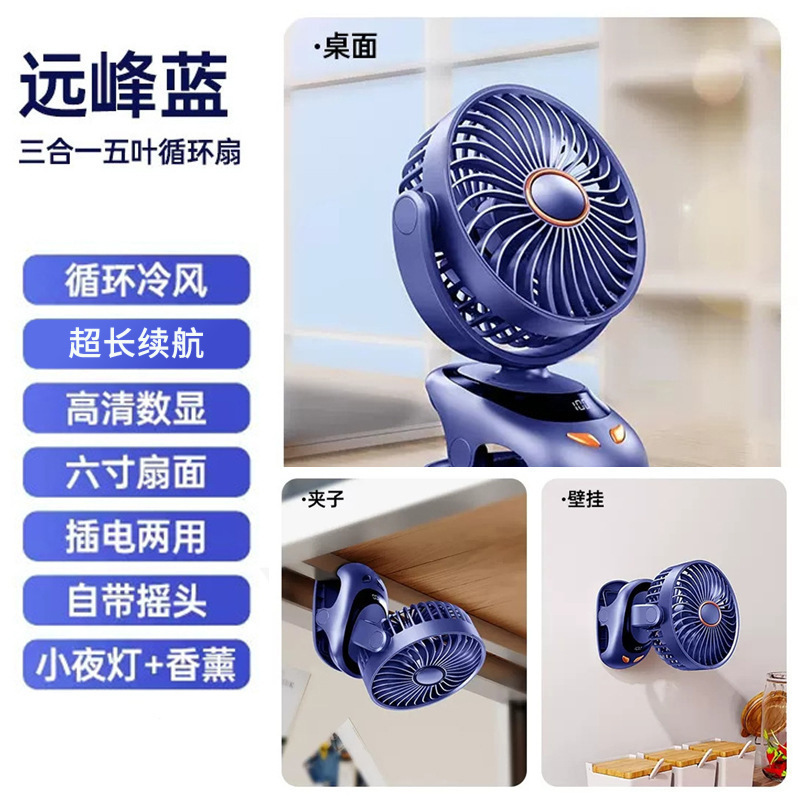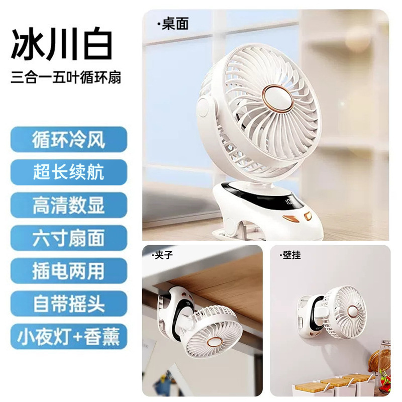 7羽循环气流夹式风扇 智能摇头夜灯二合一 办公宿舍家庭便捷安装