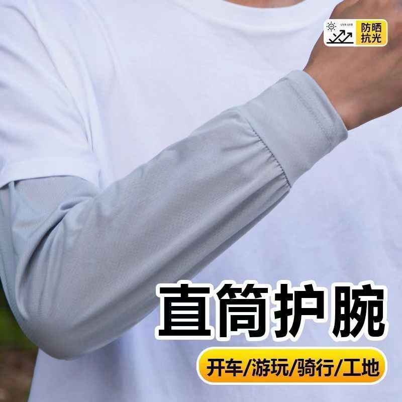 直筒冰丝防晒袖套男夏季宽松透气护手臂套袖户外工作耐磨手套冰袖