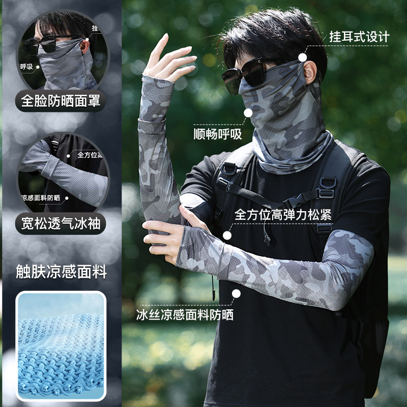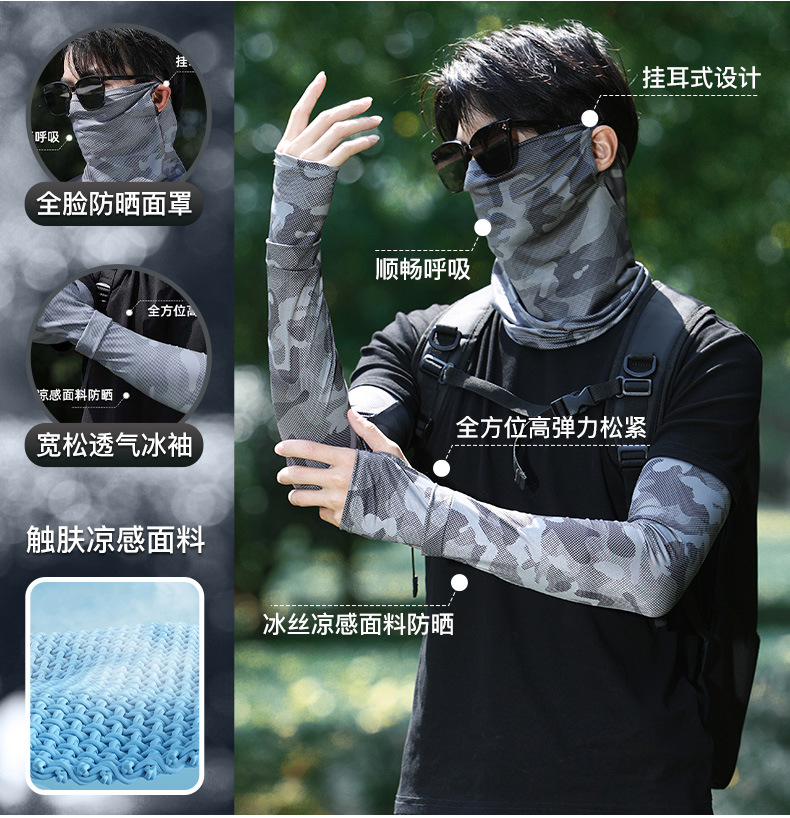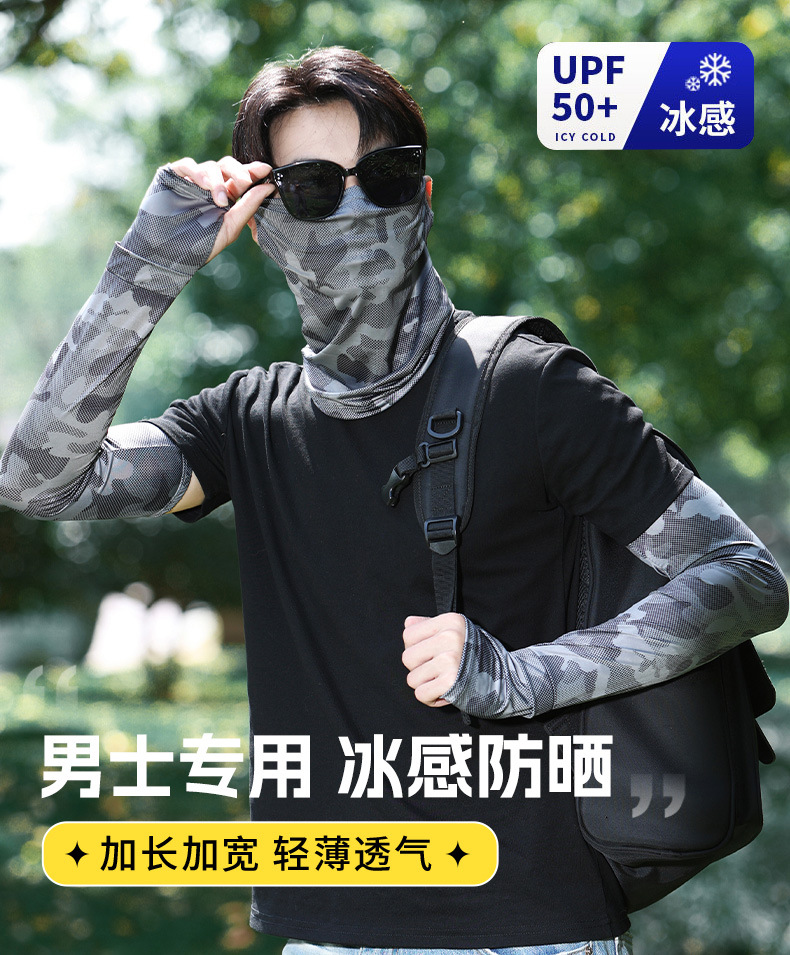 男士冰丝加长加宽冰袖夏季大码宽松防晒袖套防紫外线套袖手臂护袖