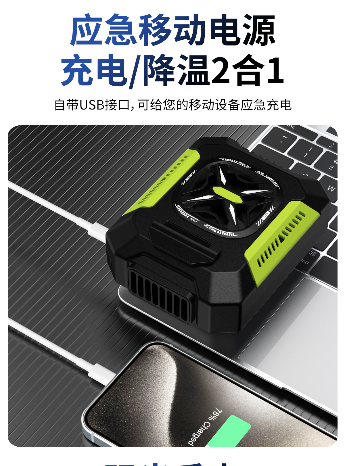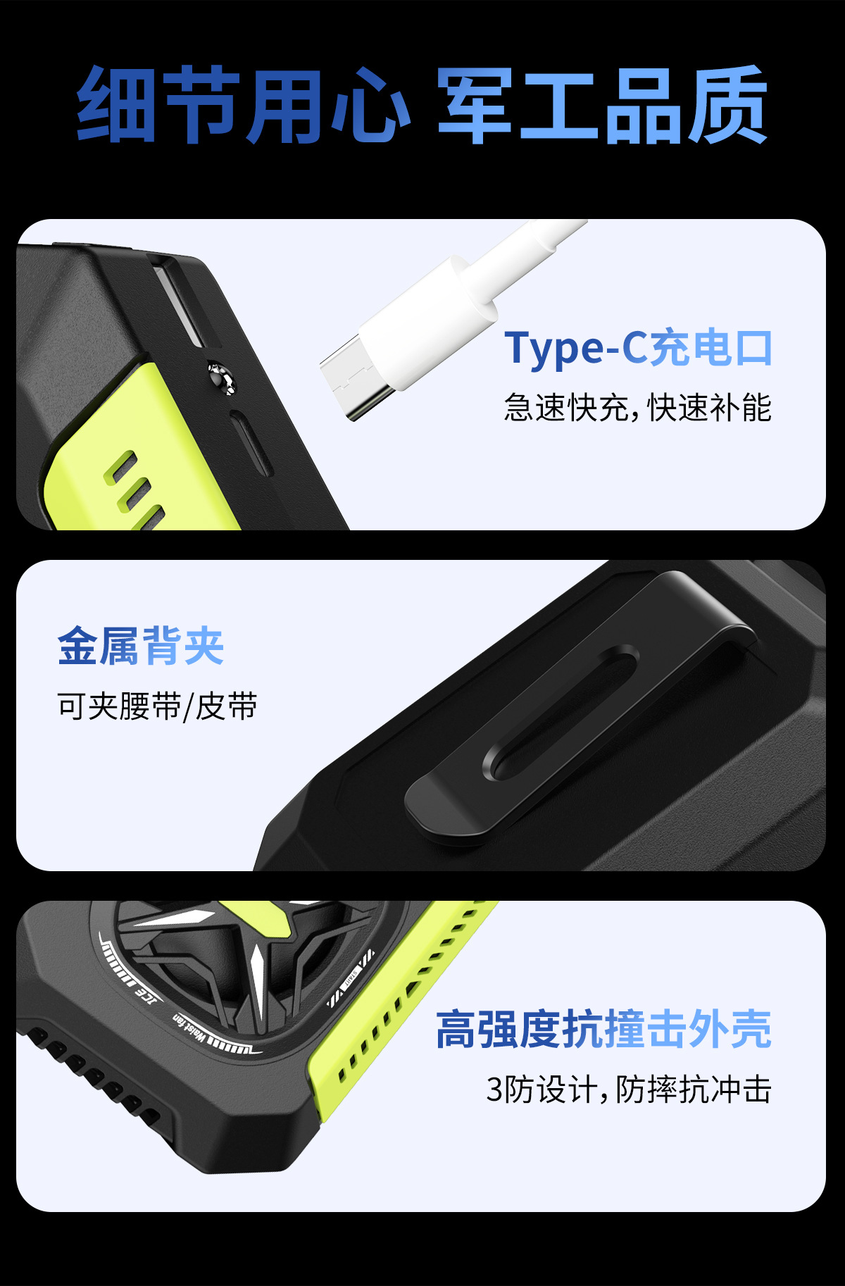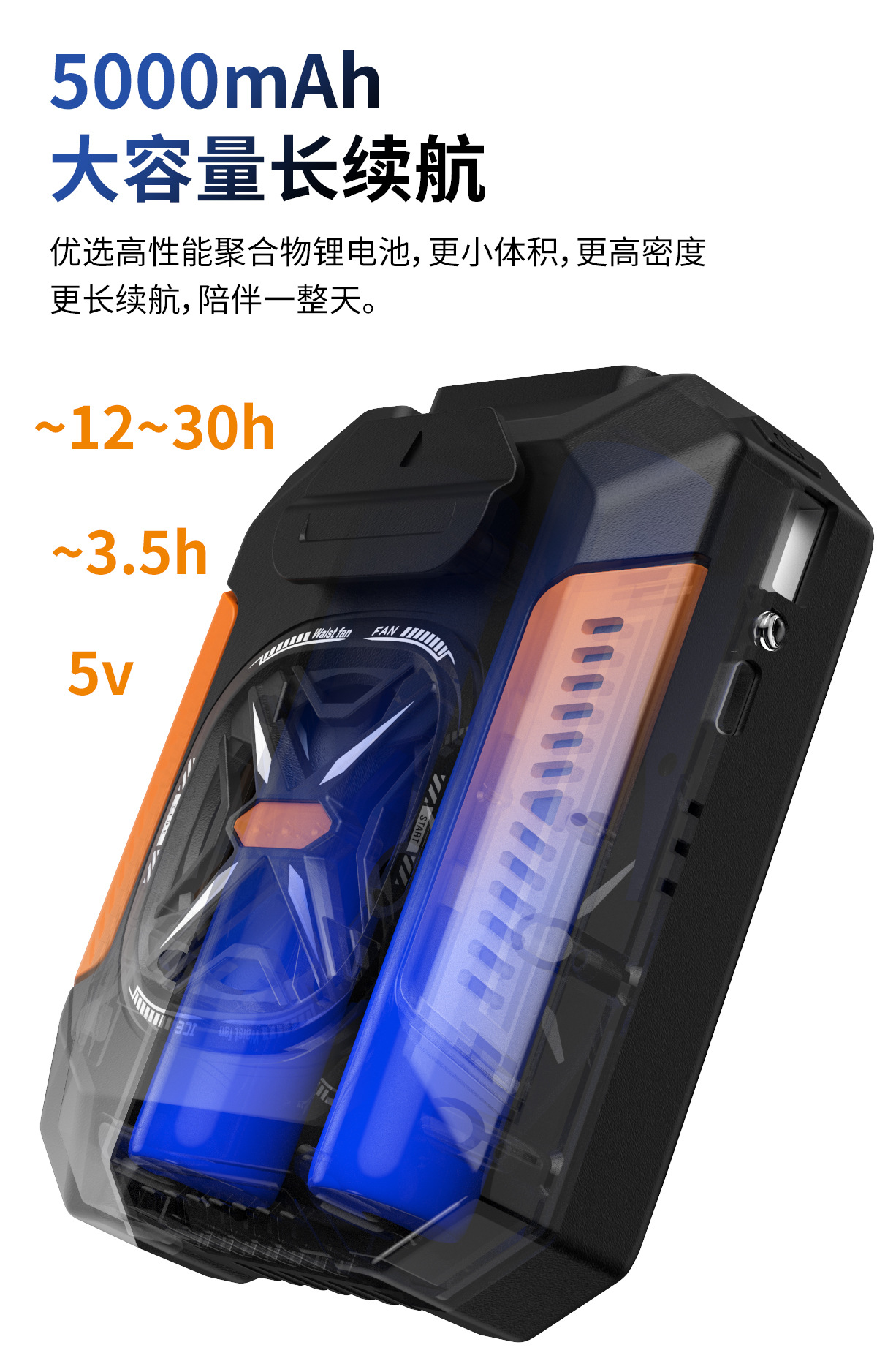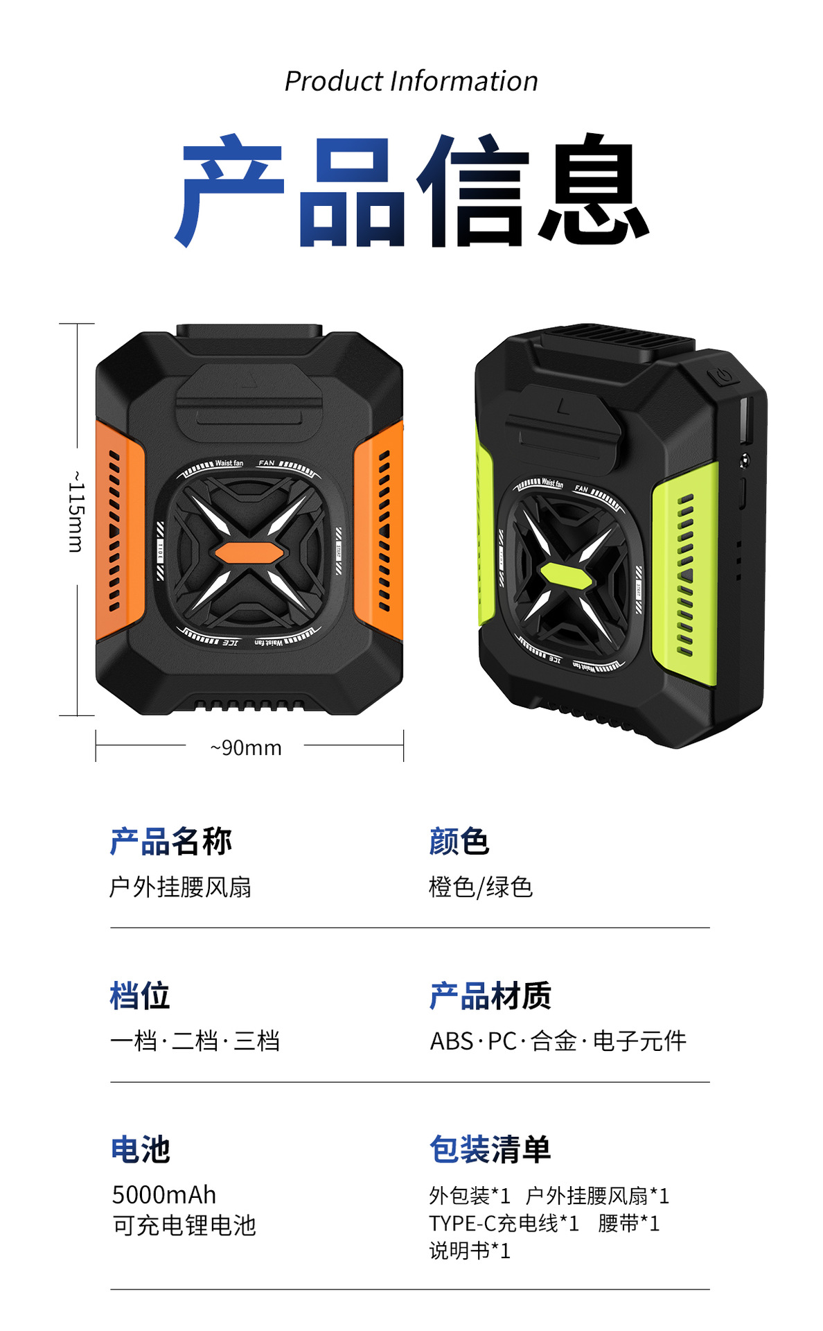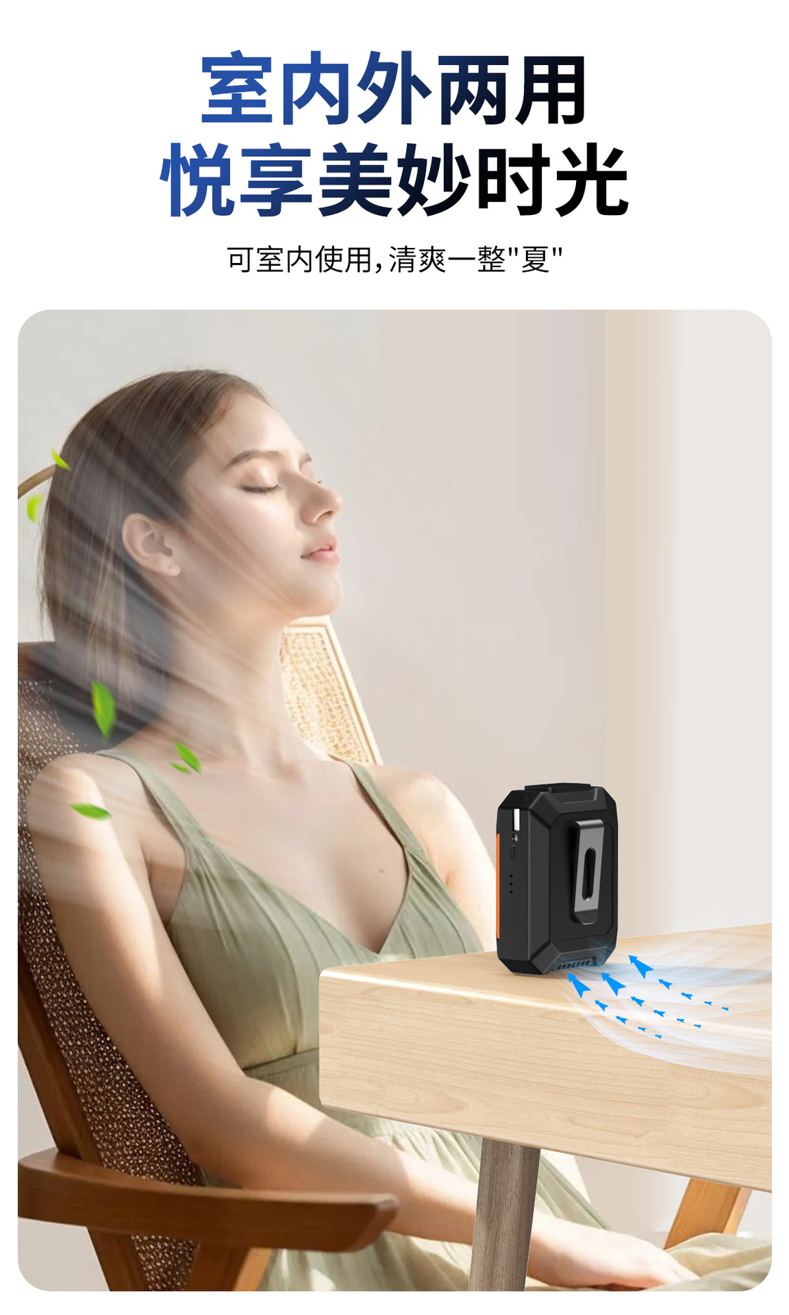 新款迷你家用挂腰风扇静音户外露营风扇腰挂照明灯跨境电扇爆款