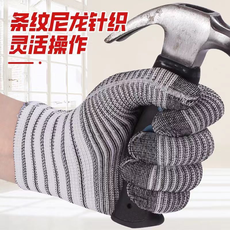 斑马纹尼龙多色手套棉线手套批手套女干活薄款劳保手套工作手套