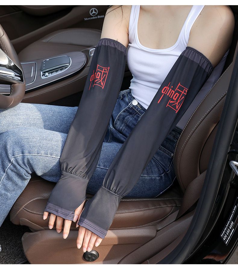 中国风男款潮流宽松肘部防护防晒冰袖冰丝开车运动凉感袖套护臂套