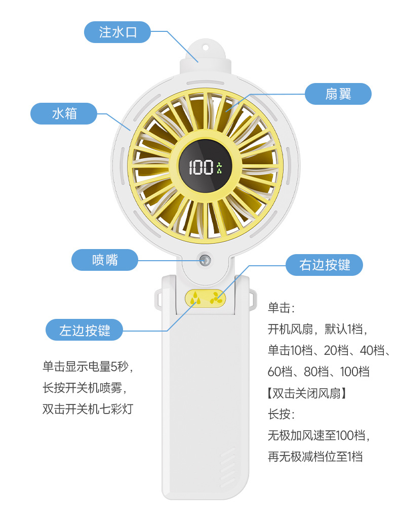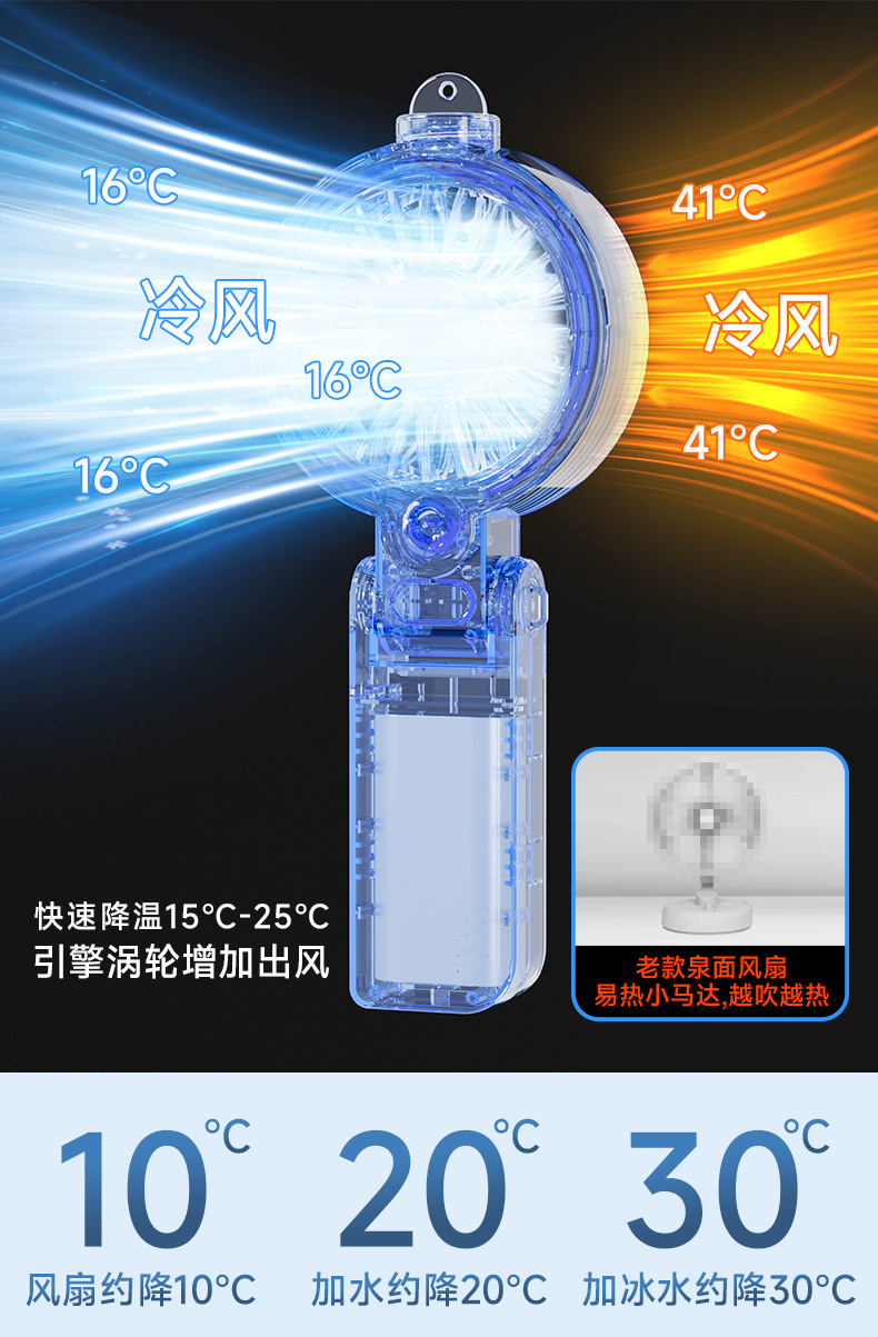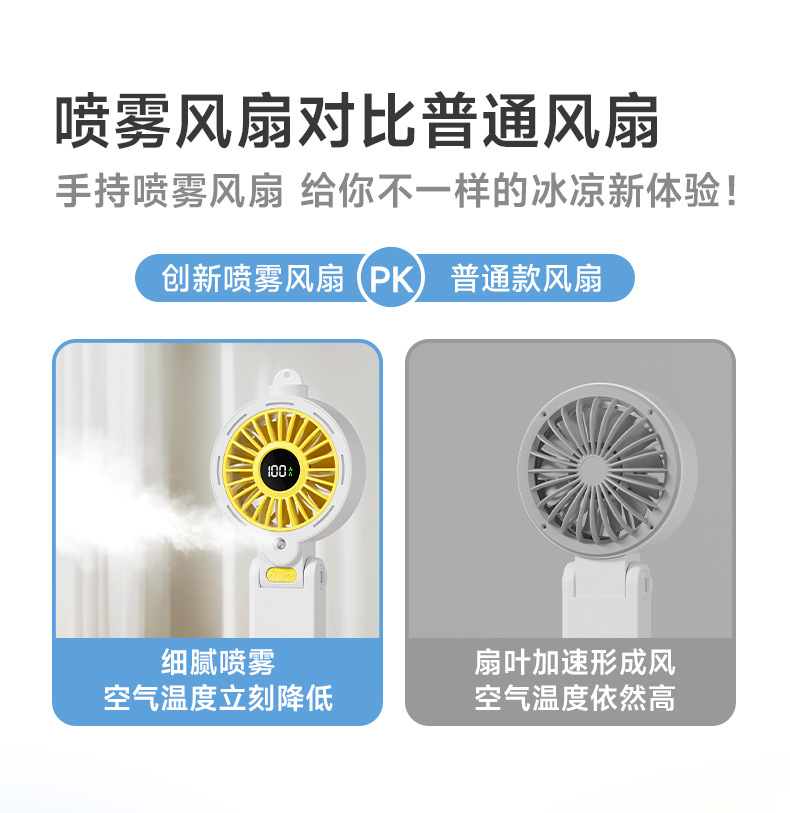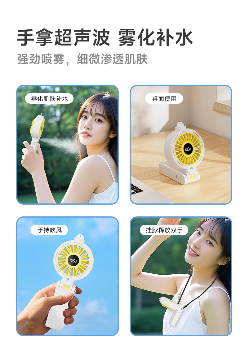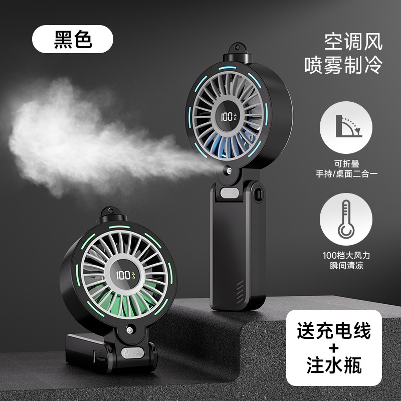 高速折叠手持喷雾小风扇usb充电便携手拿空调小电扇大风力迷你