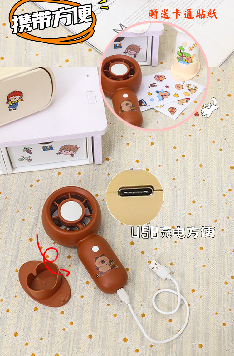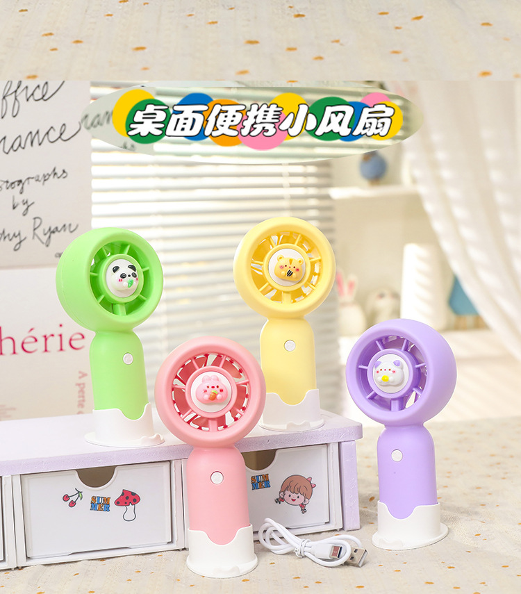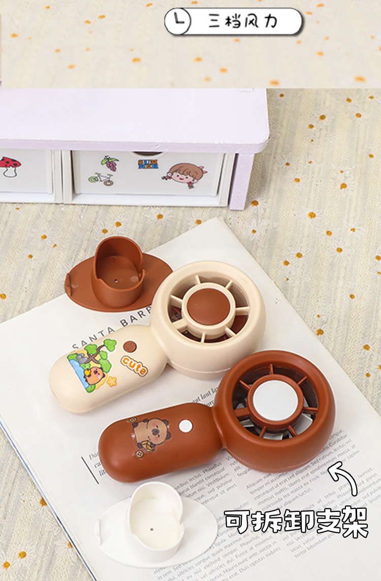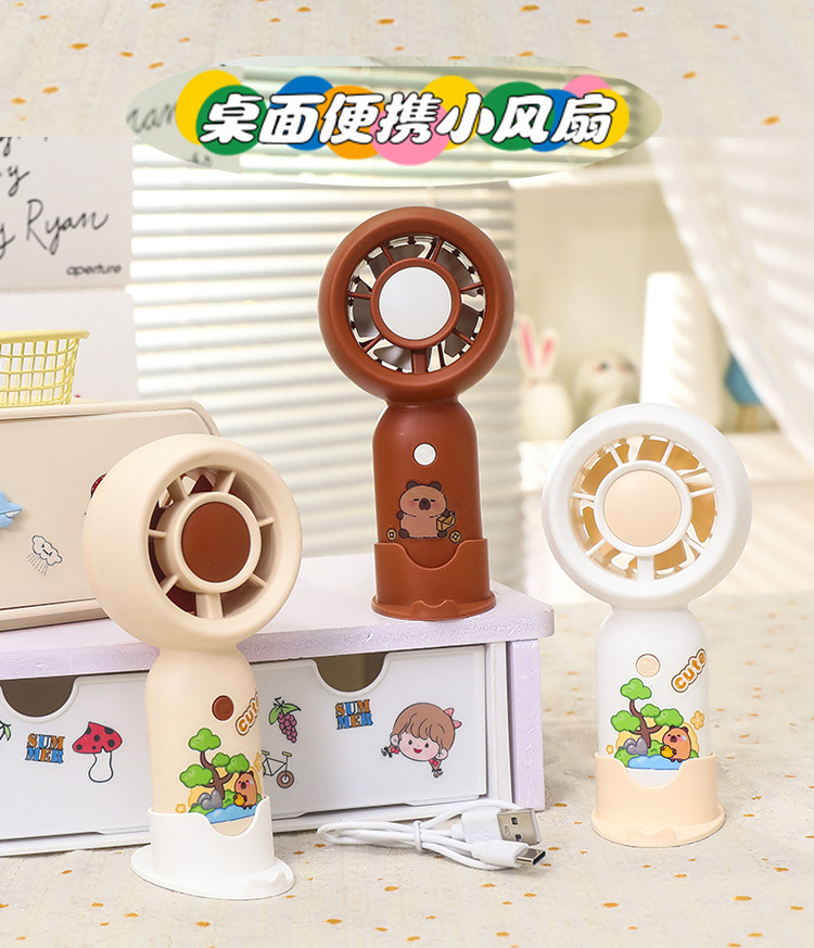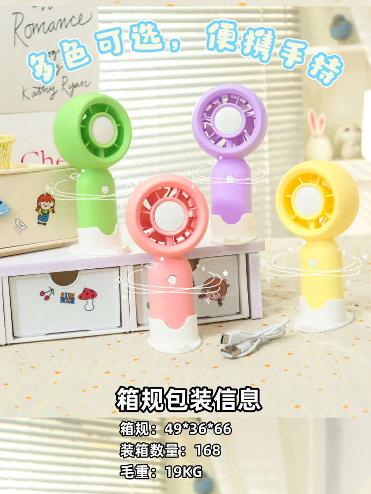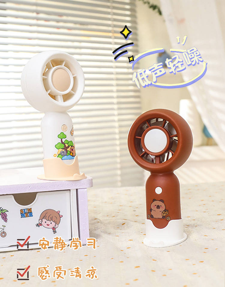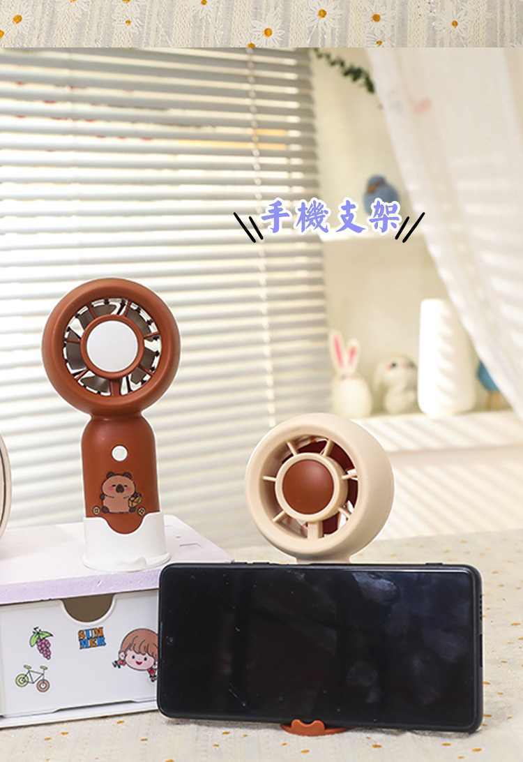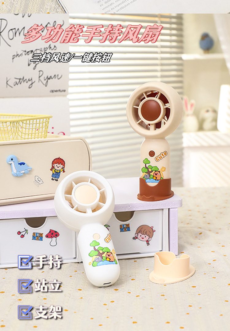 奶油风撞色手持迷你小风扇 带底座手机支架宿舍便携风扇刻字logo
