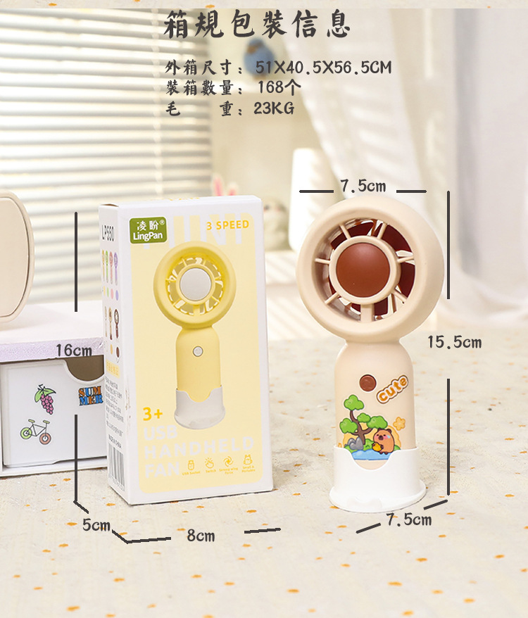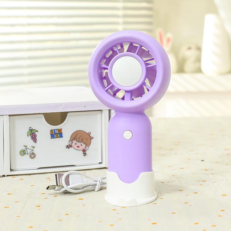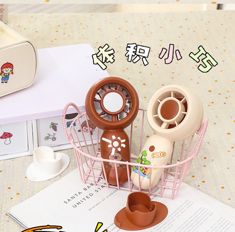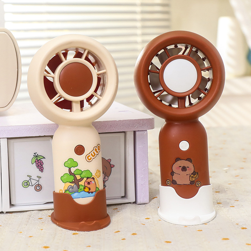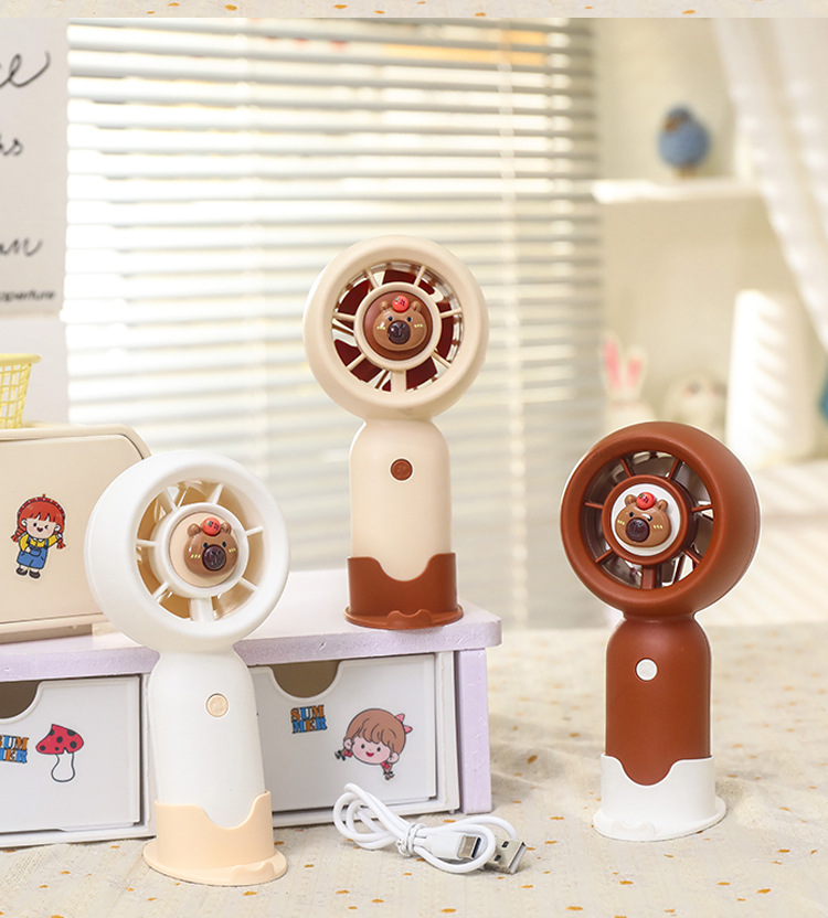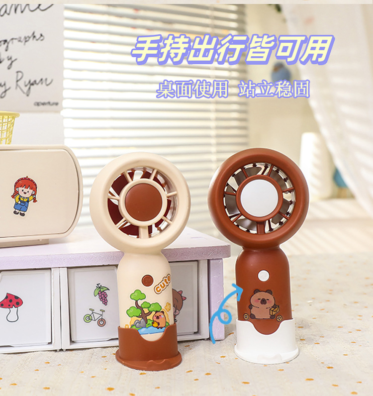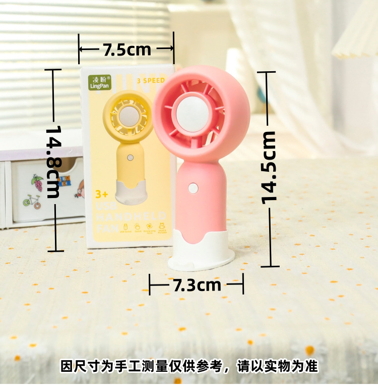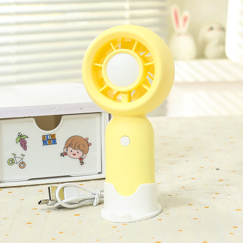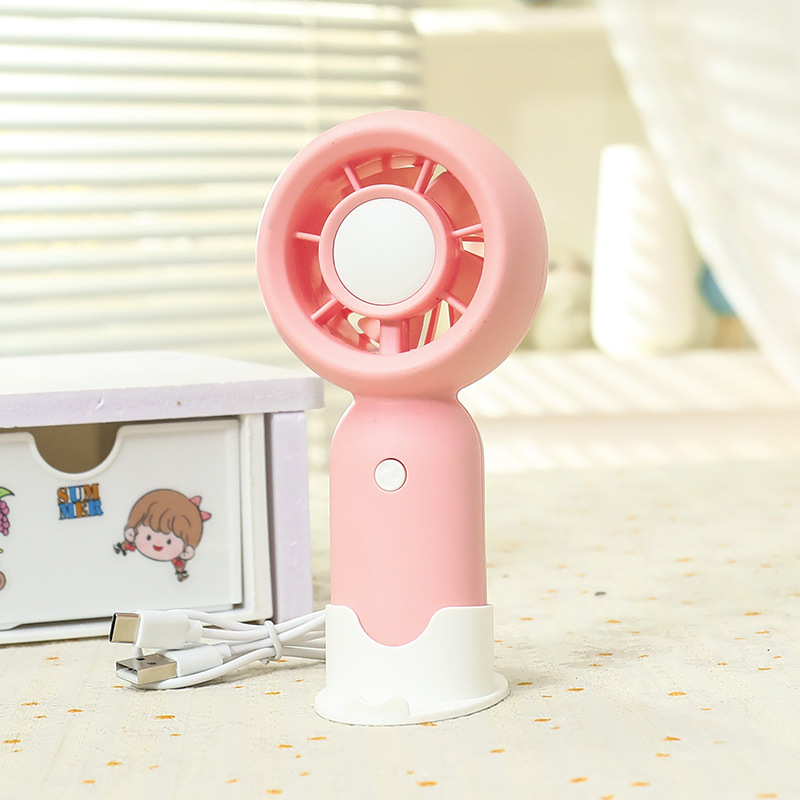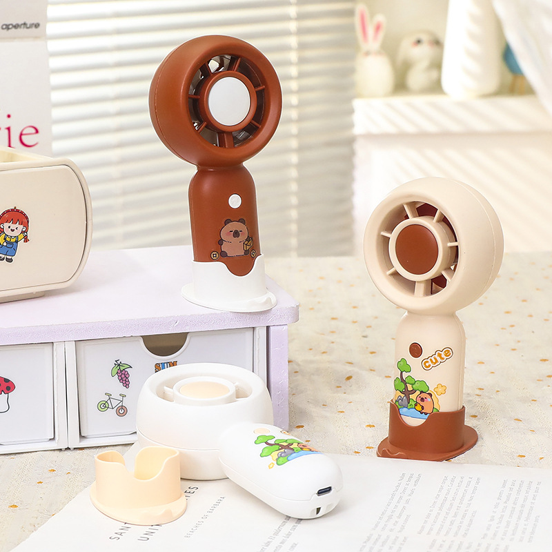 奶油风撞色手持迷你小风扇 带底座手机支架宿舍便携风扇刻字logo