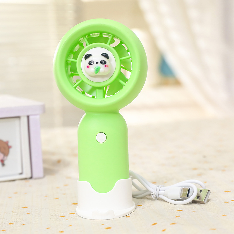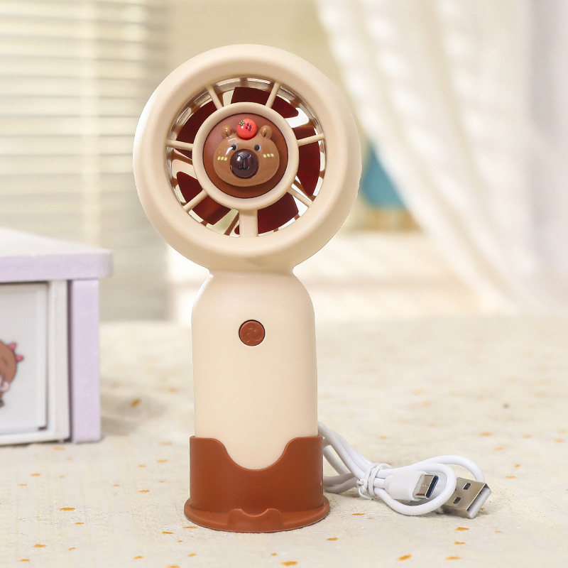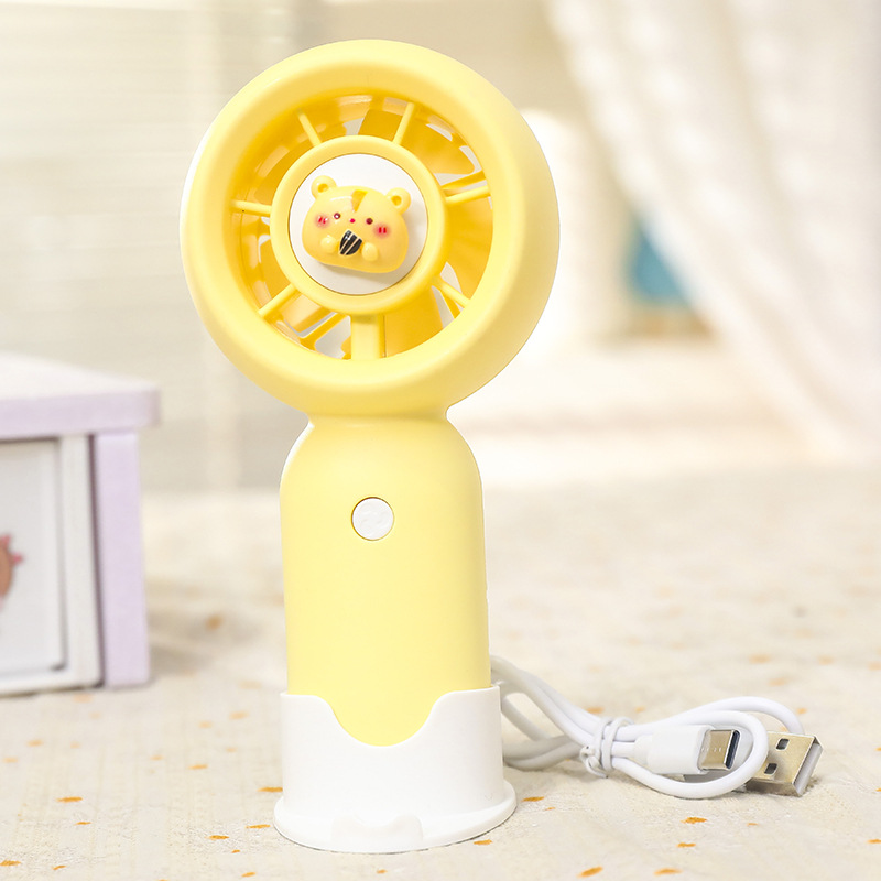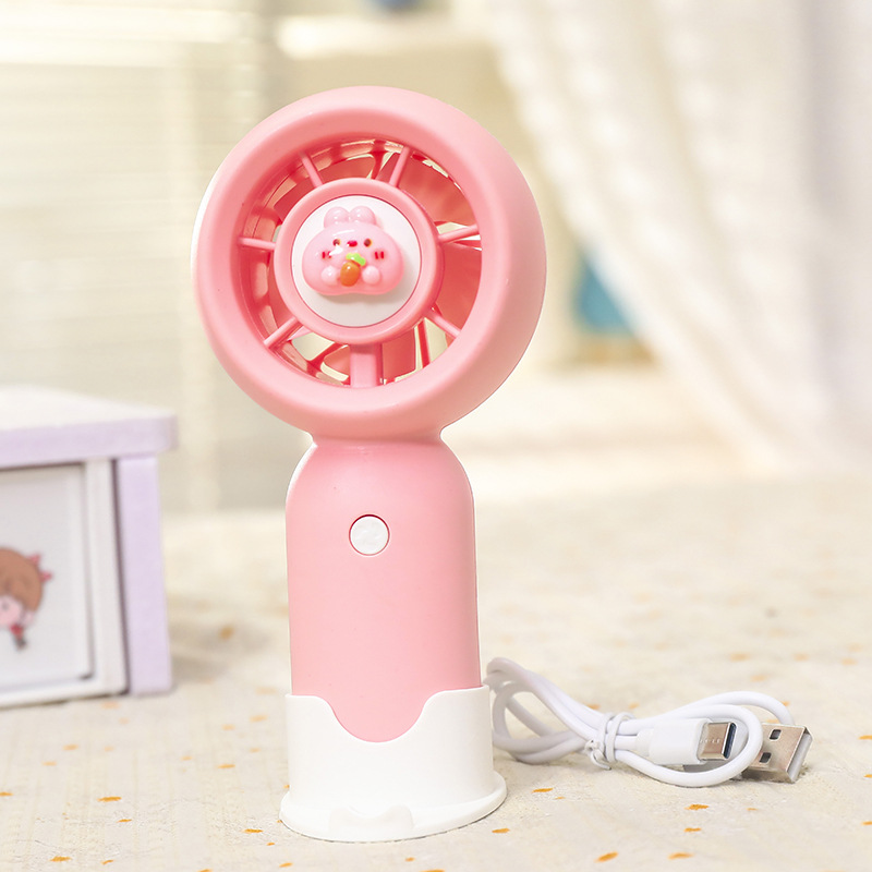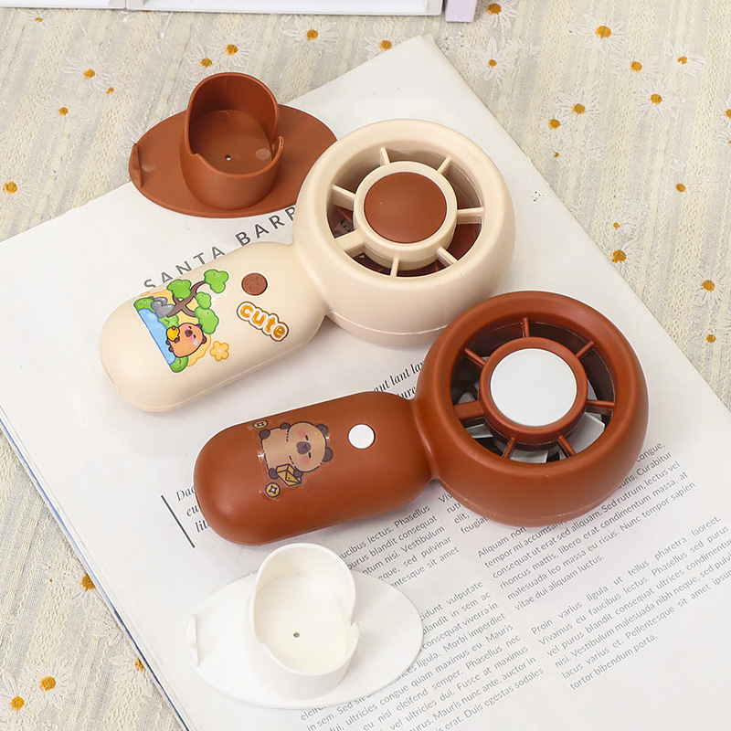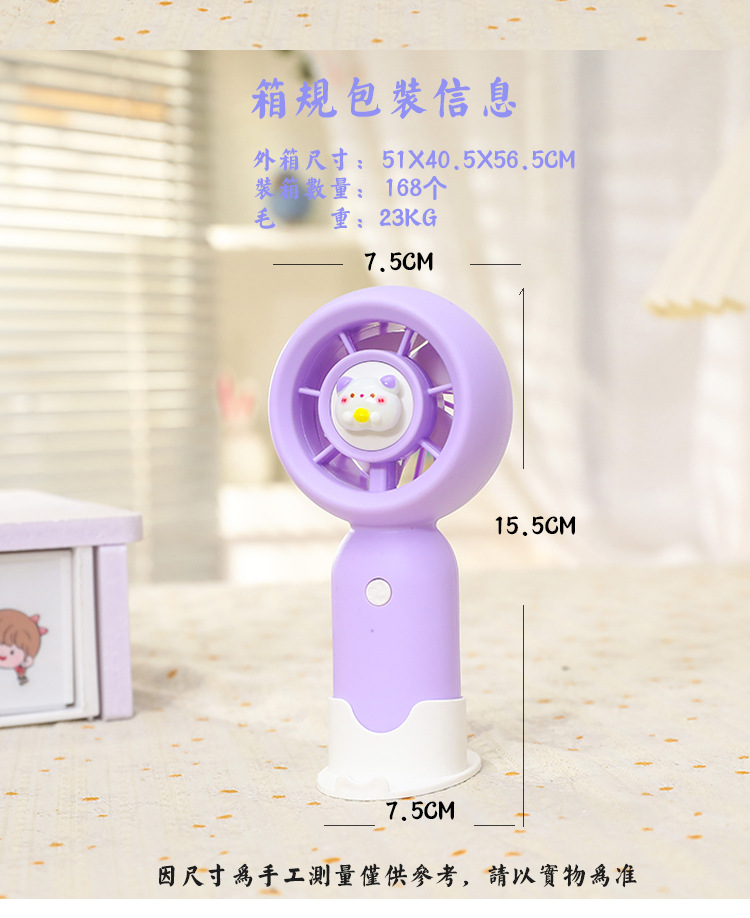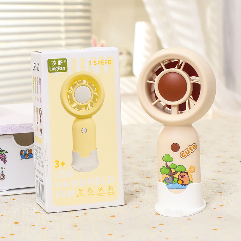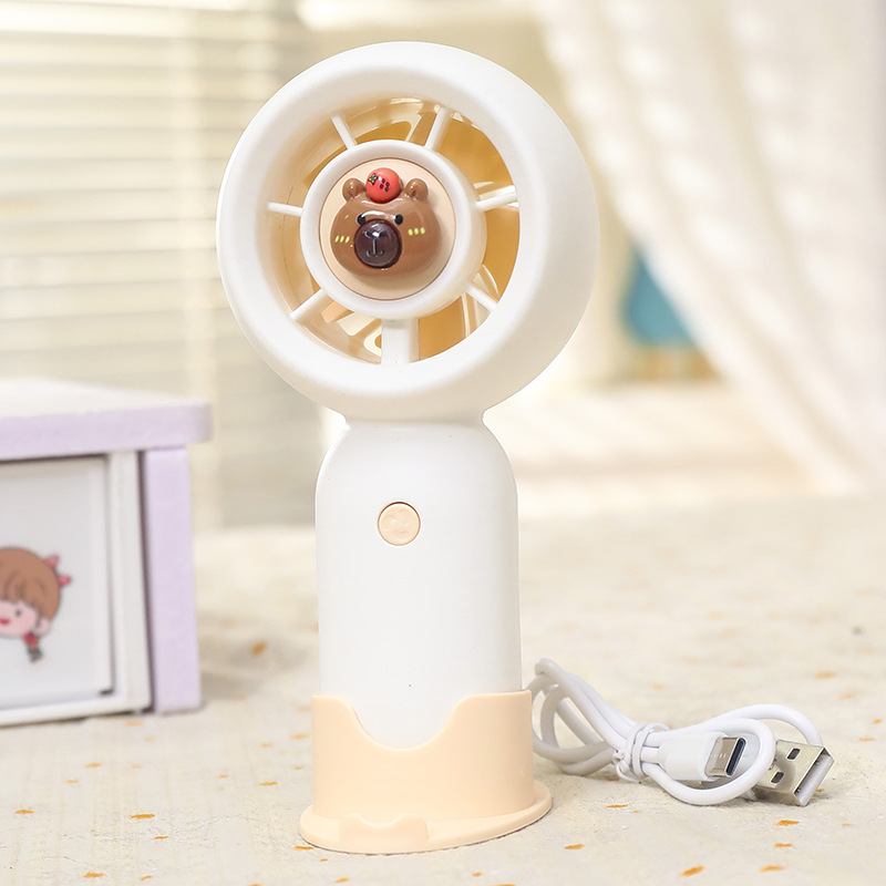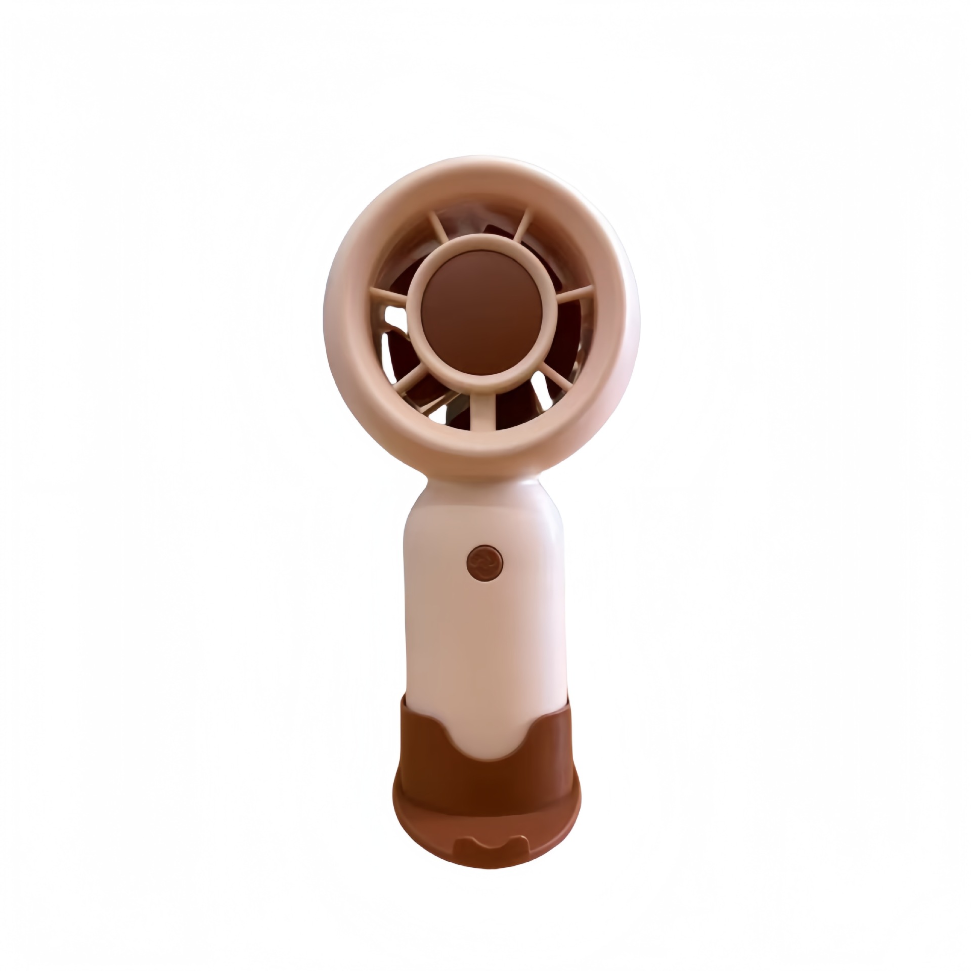 奶油风撞色手持迷你小风扇 带底座手机支架宿舍便携风扇刻字logo