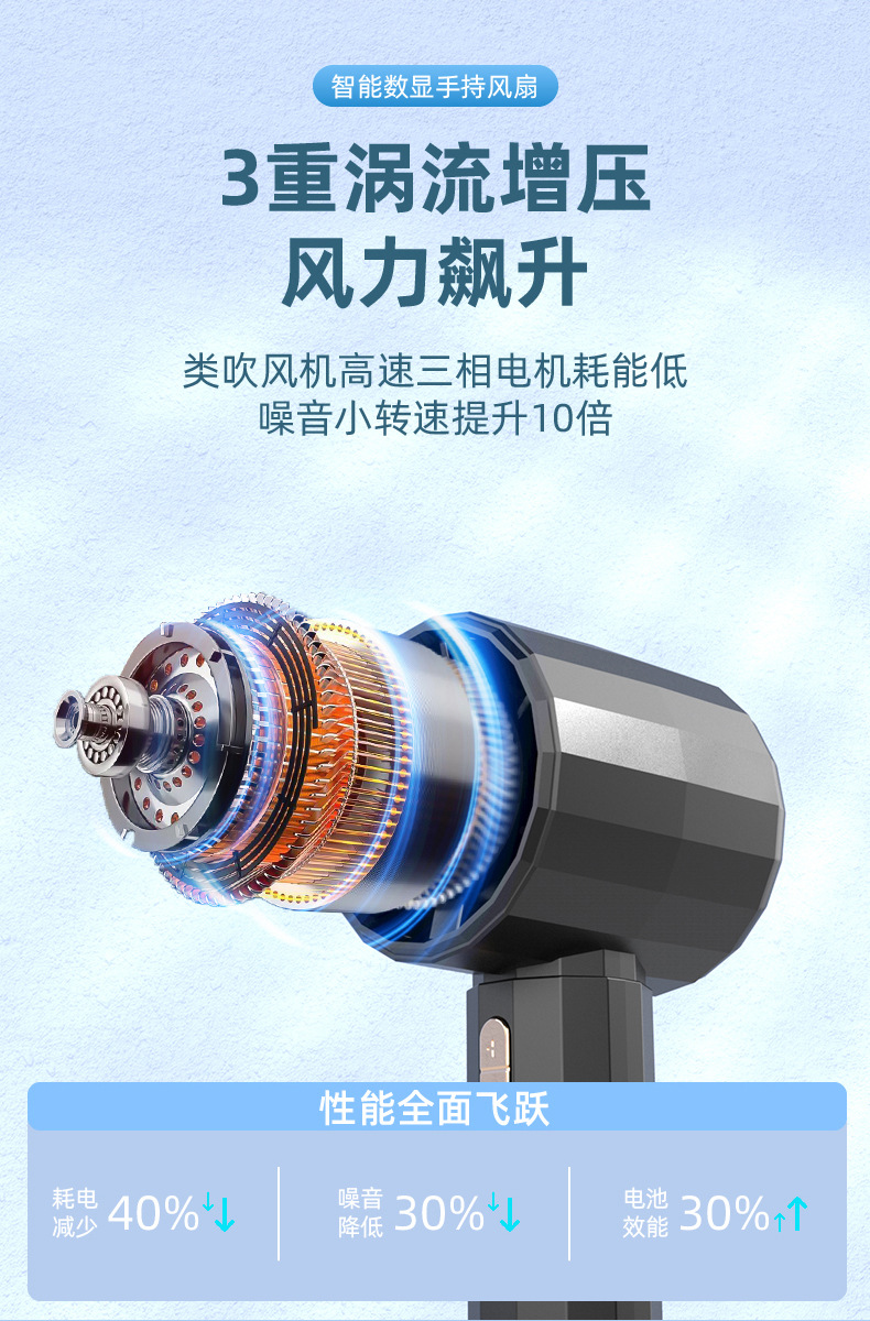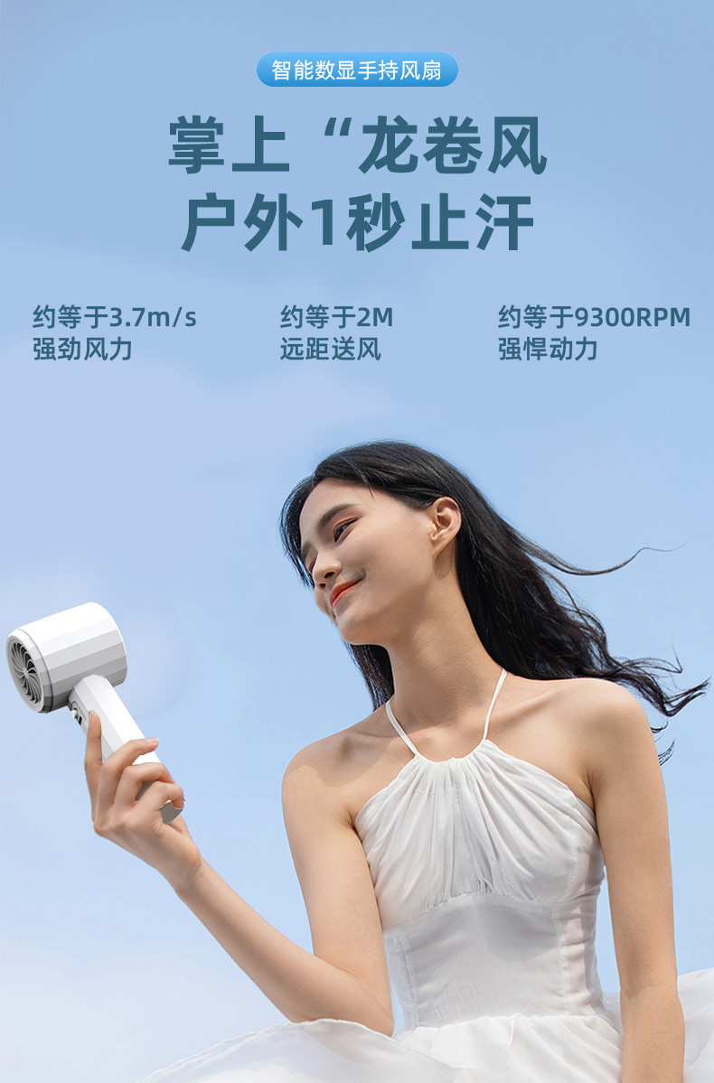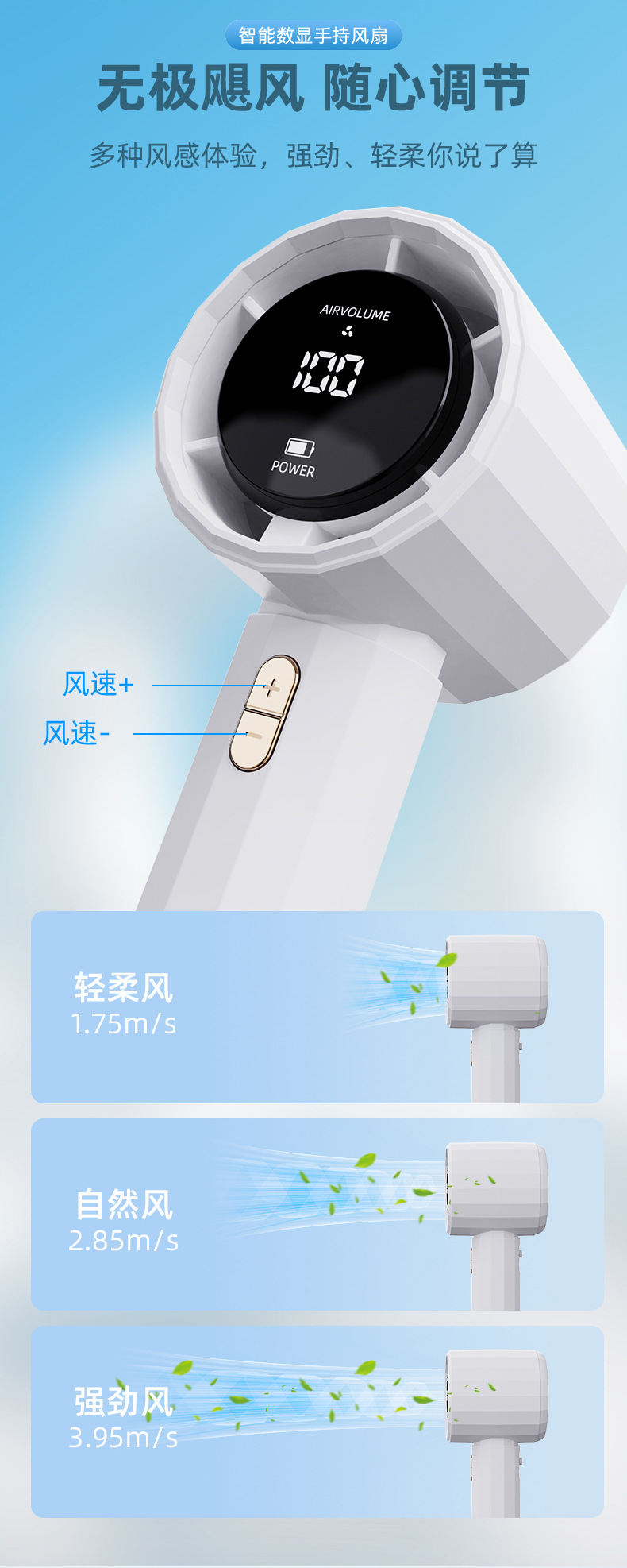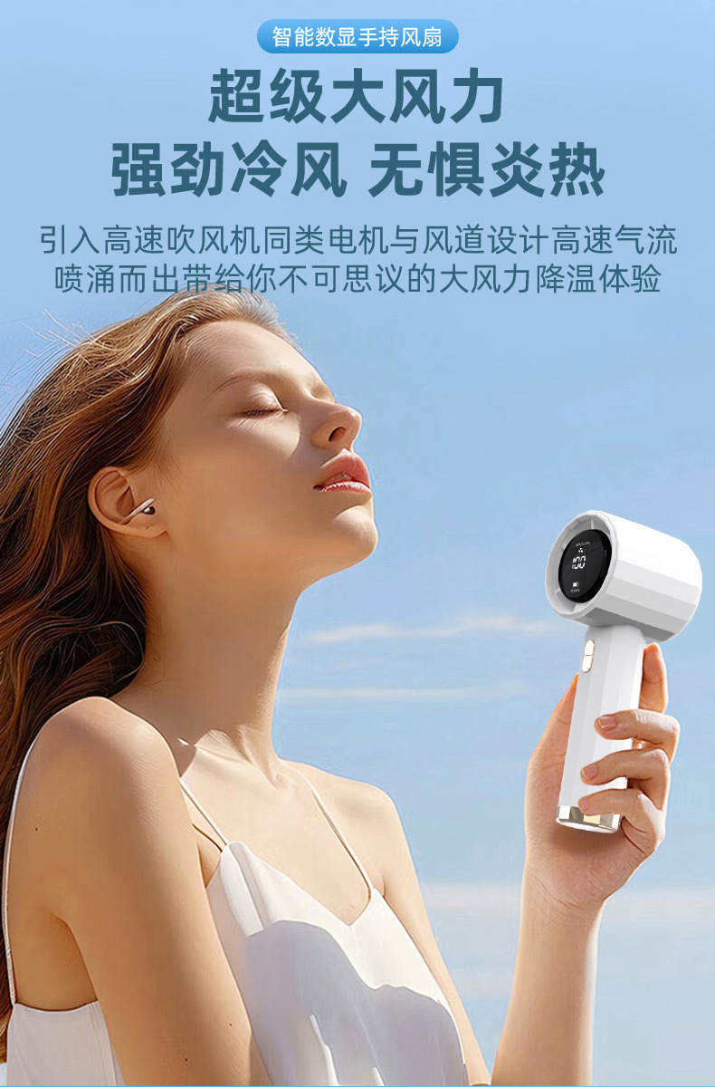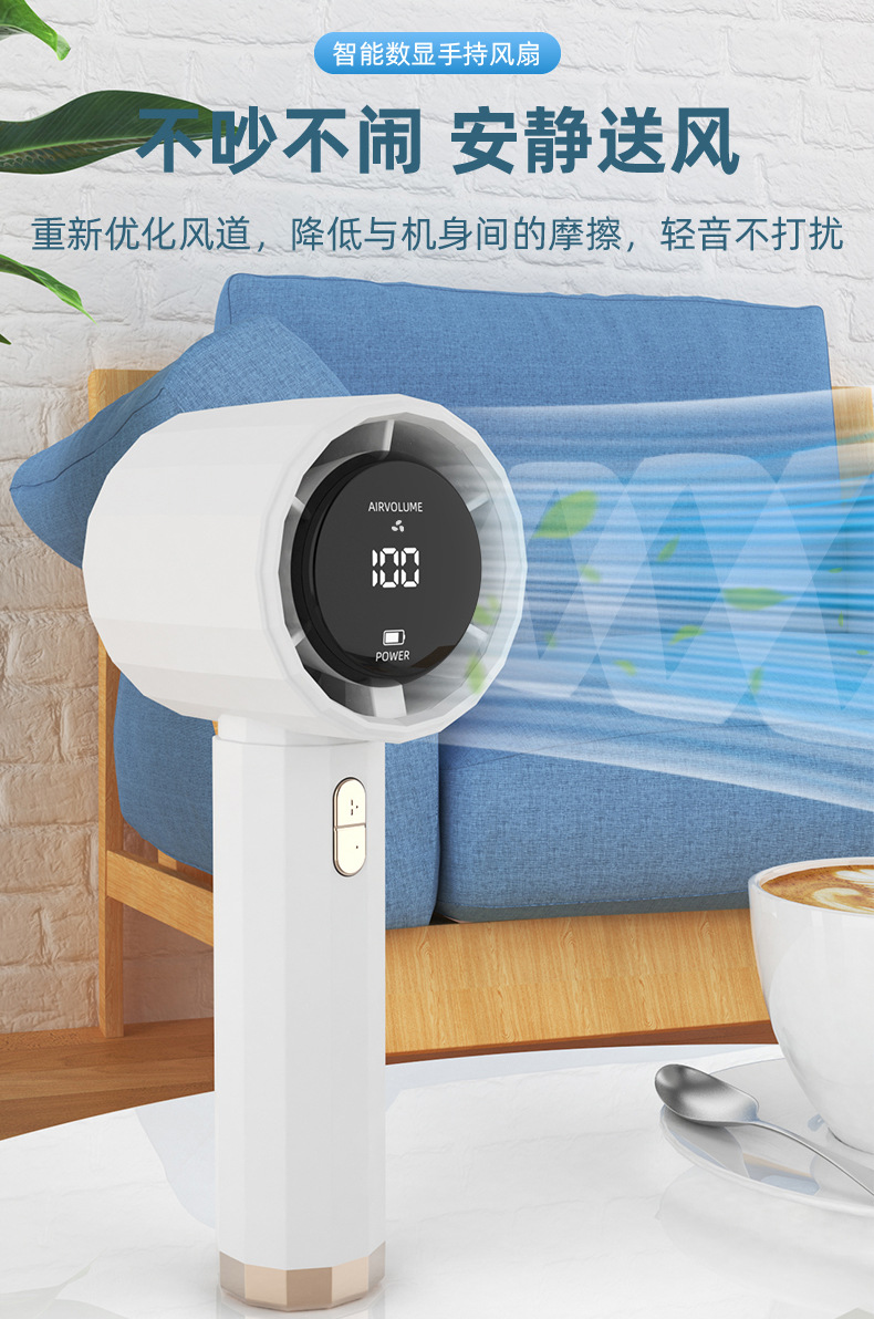 跨境数显手持100档大风力usb充电户外型高速风扇涡轮手持风扇