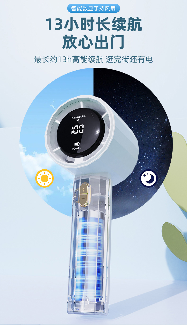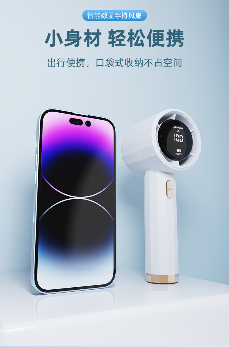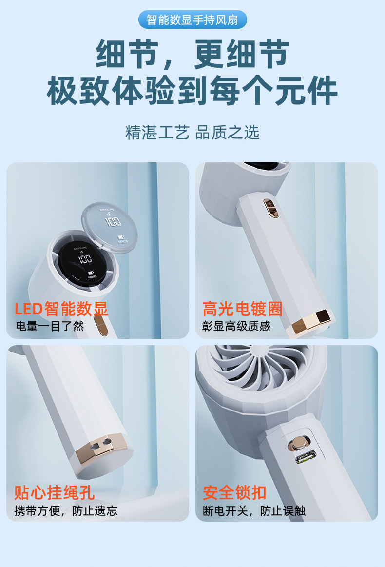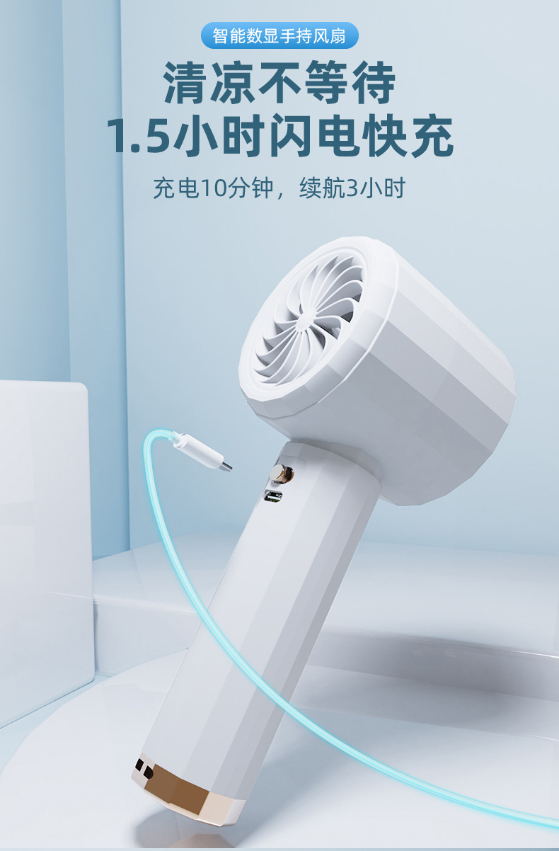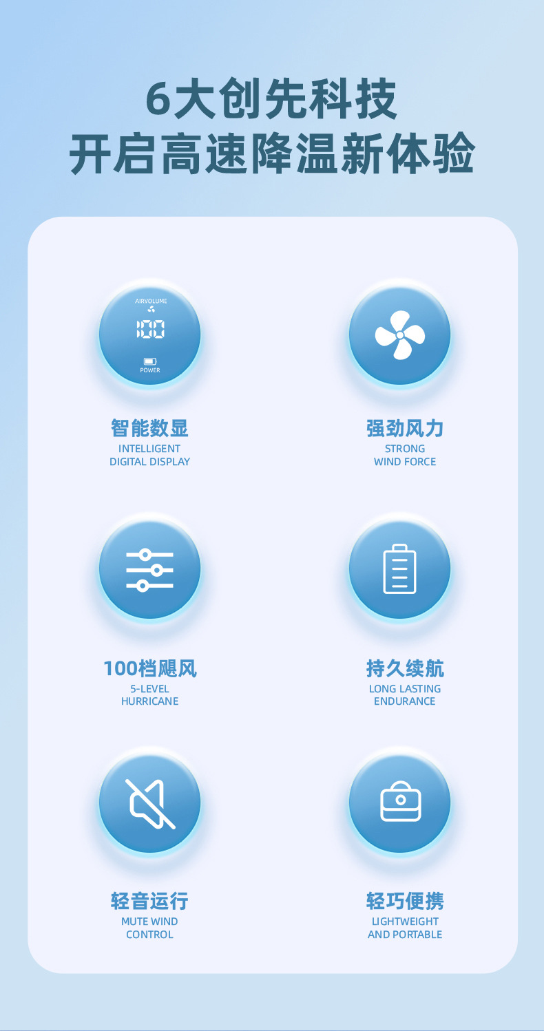 跨境数显手持100档大风力usb充电户外型高速风扇涡轮手持风扇