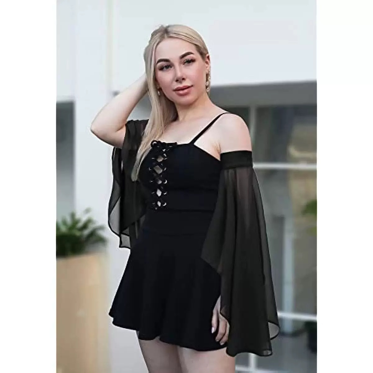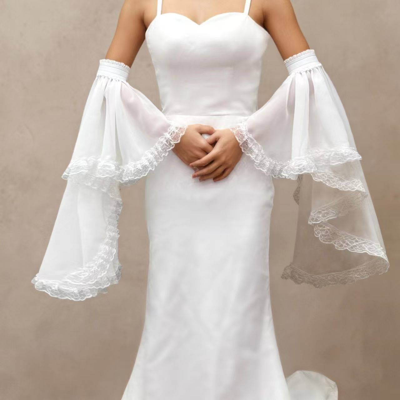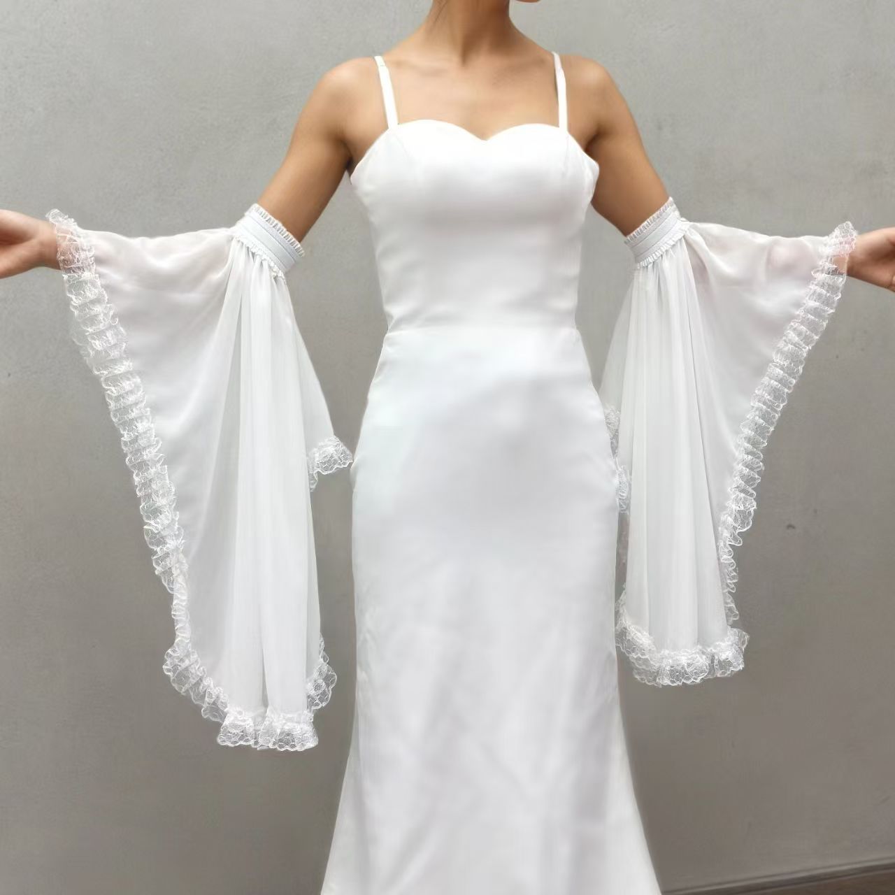 欧美跨境新娘防晒单层袖套薄款雪纺系带松紧透气走秀可拆卸喇叭袖