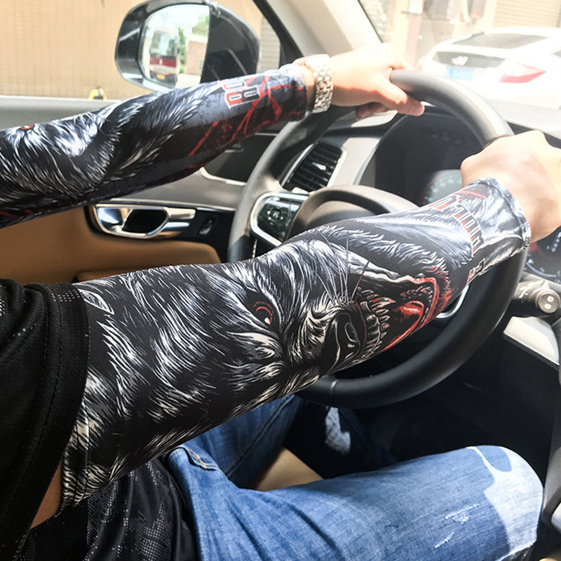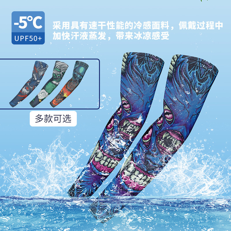 哈雷机车夏季防晒袖套骑行户外登山纹身护臂男女钓鱼运动冰丝套袖