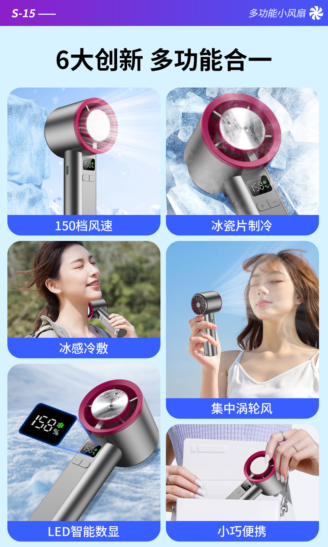 新款风扇冰敷制冷风扇冷气超静音无线吹风机充电式大风力夹子宿舍