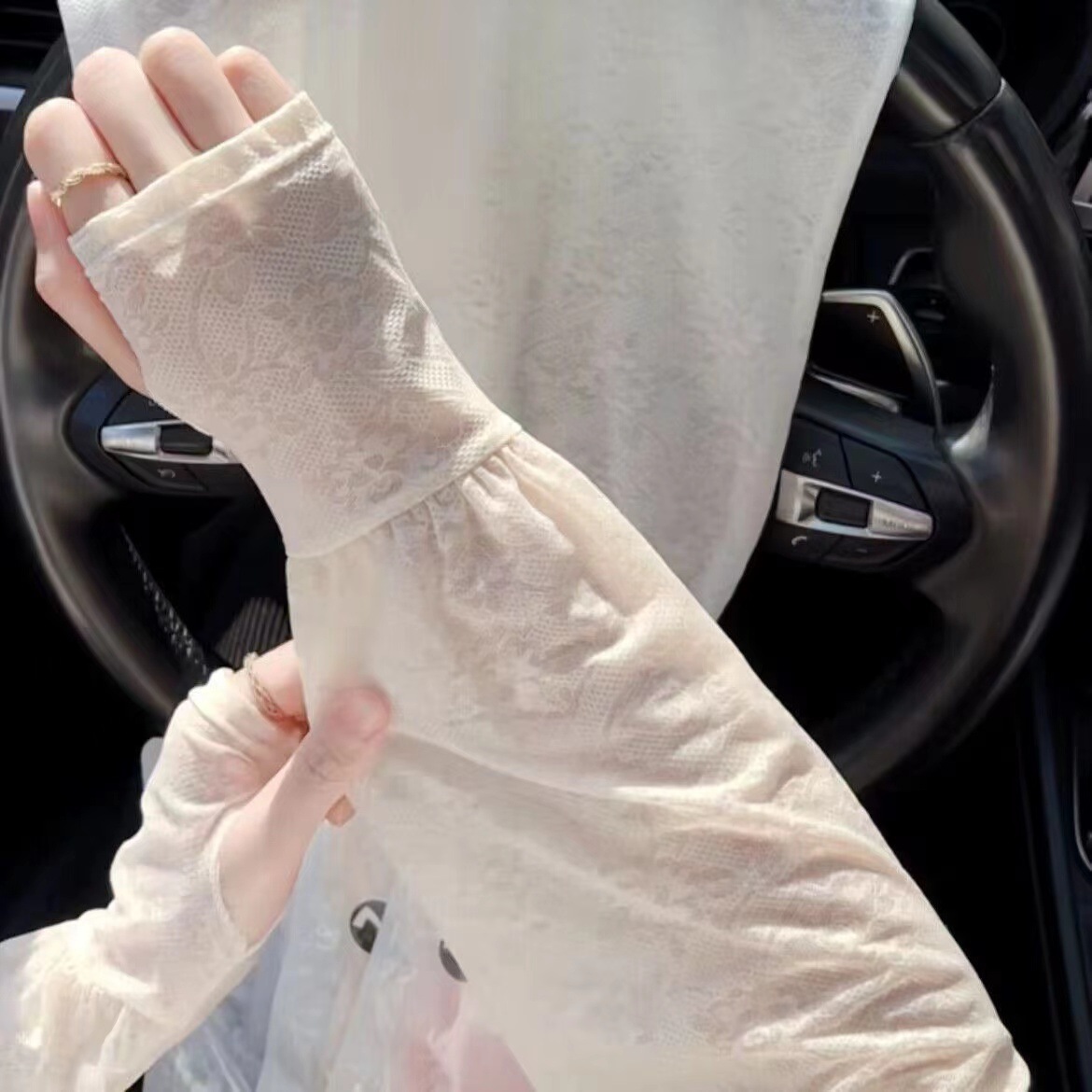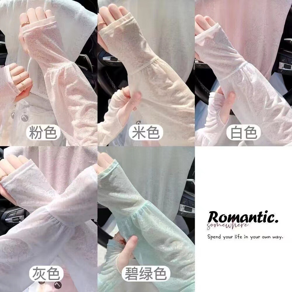 夏季蕾丝温柔仙女风防晒冰袖薄款户外开车防晒宽松护袖女冰丝袖套